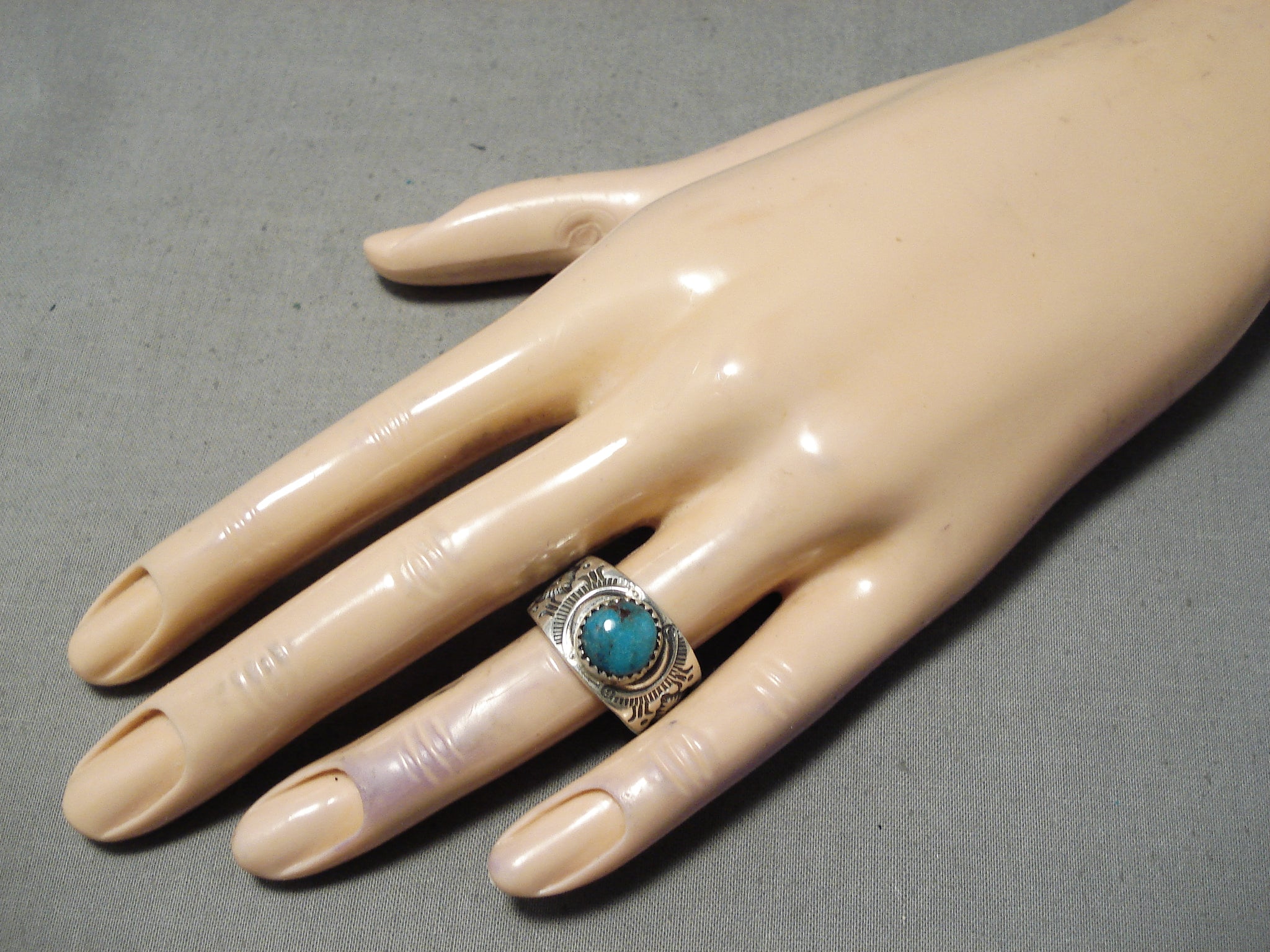 Expressive Vintage Kingman Turquoise Sterling Silver Ring Old Native American