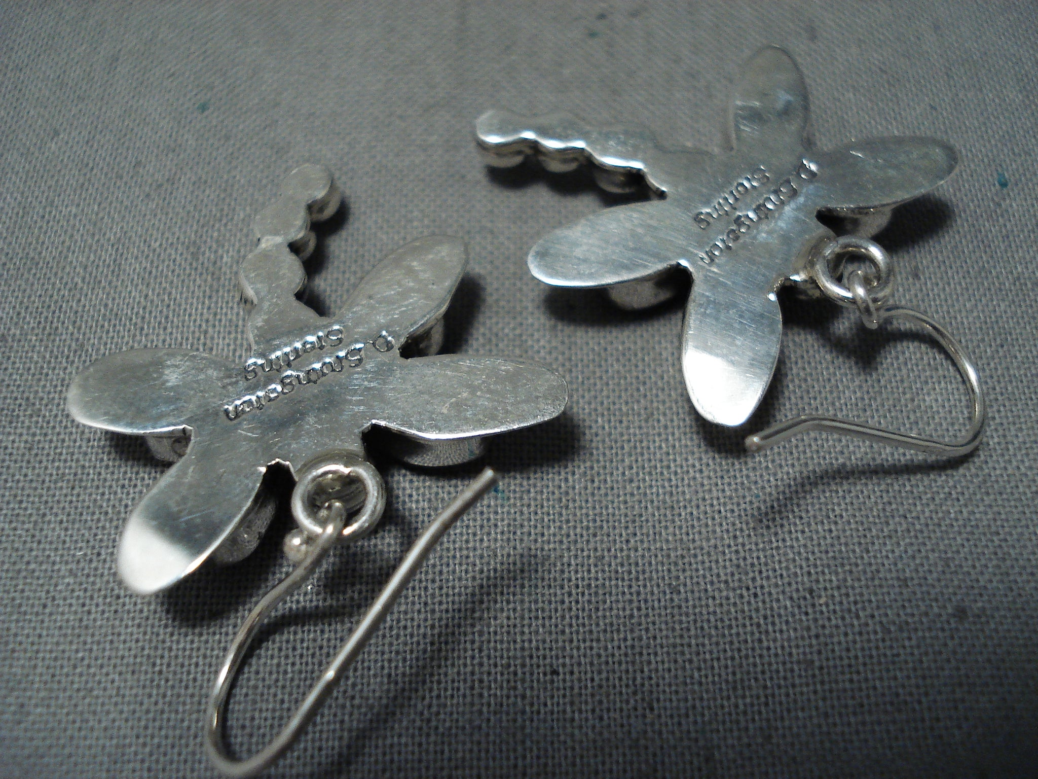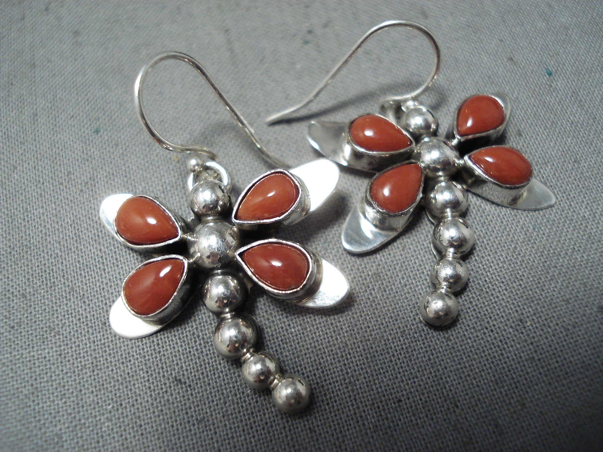 Exquisite Native American Navajo Coral Sterling Silver Dragonfly Earrings