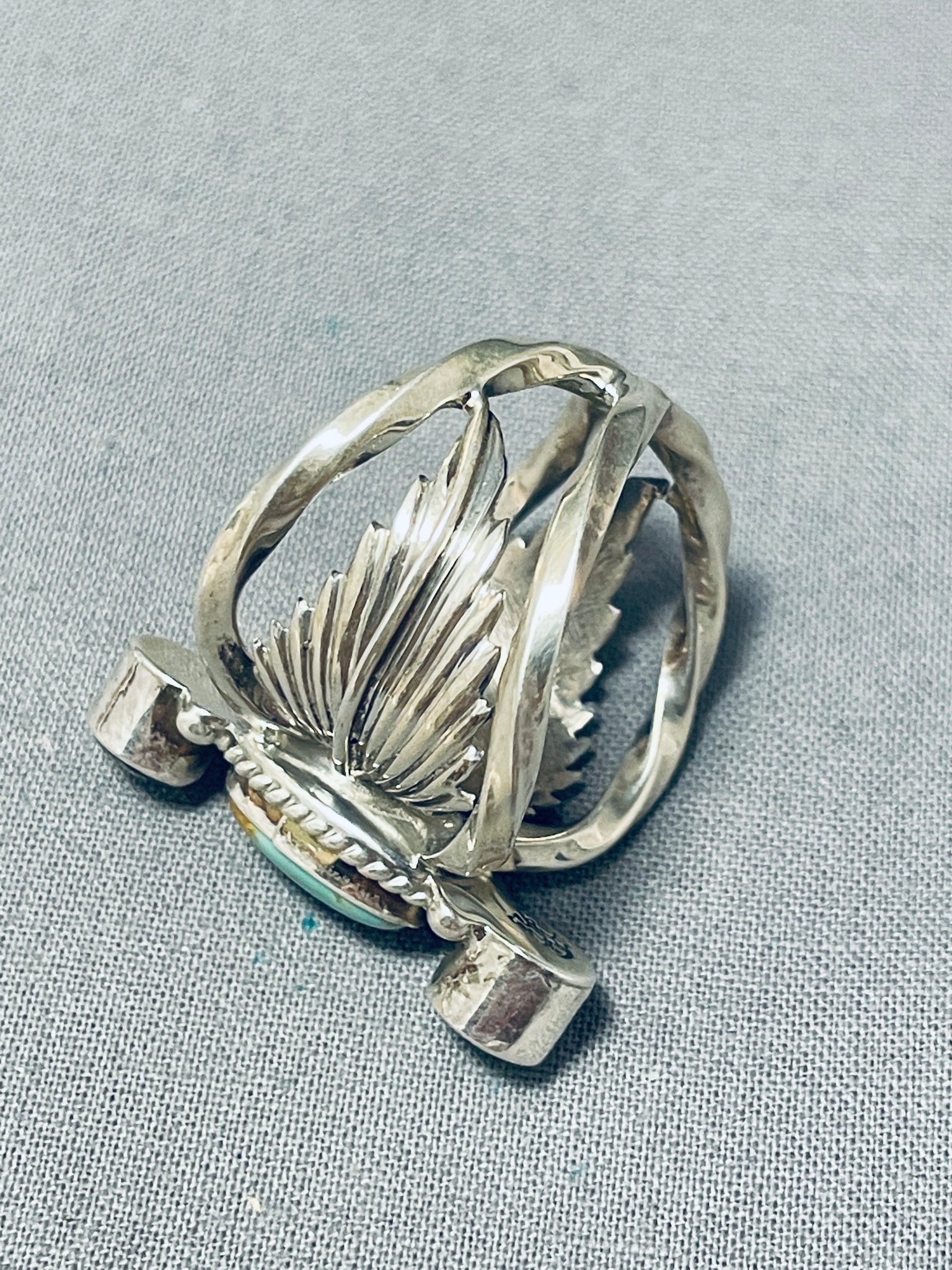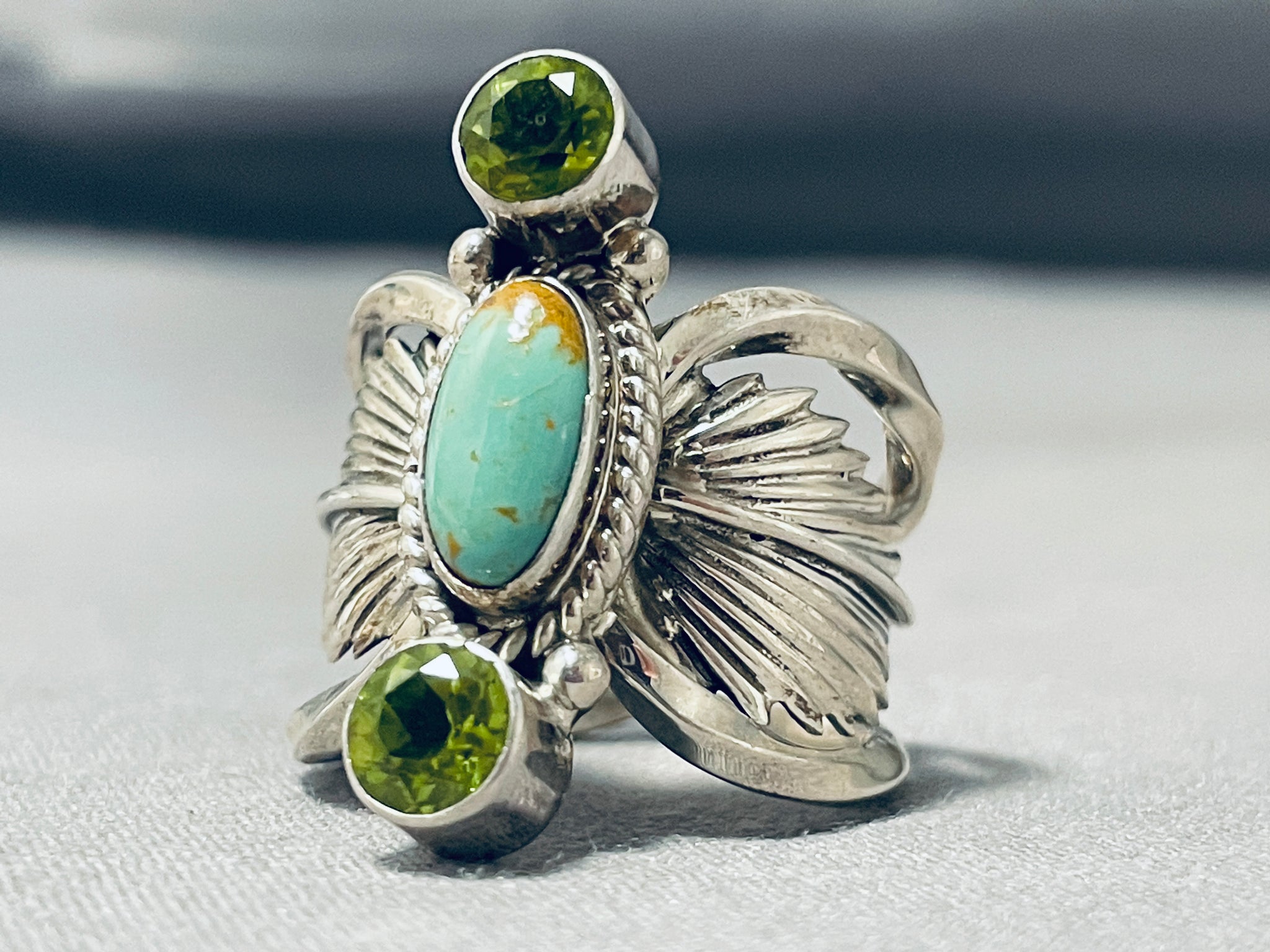 Exquisite Native American Navajo Royston Turquoise Peridot Sterling Silver Gigantic Ring