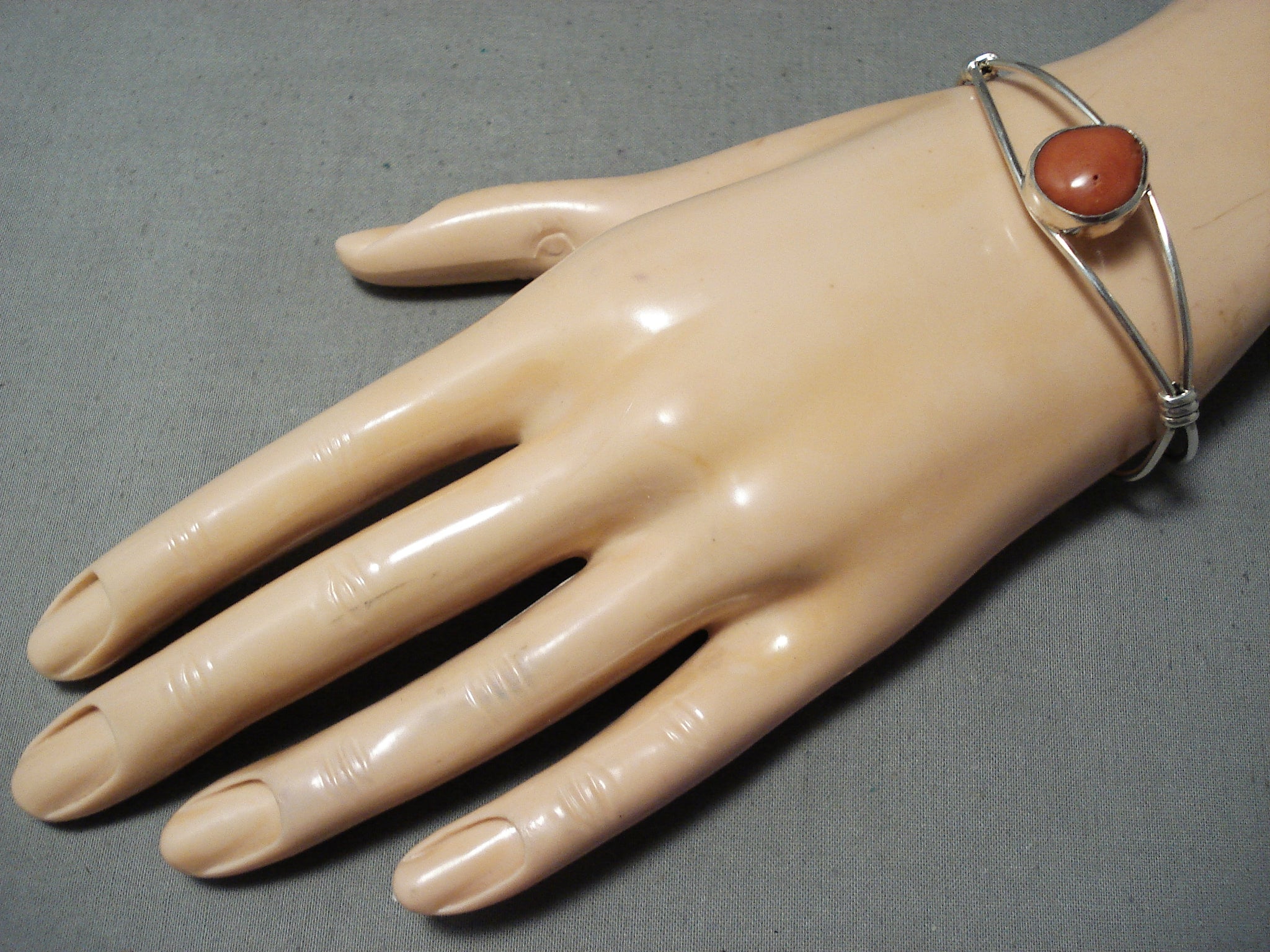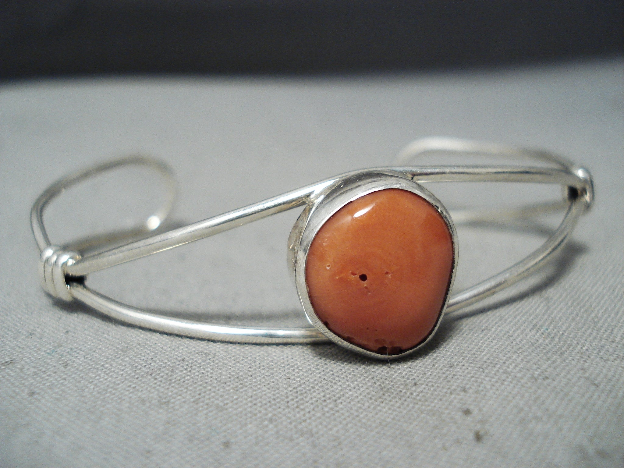 Exquisite Navajo Coral Sterling Silver Bracelet Native American