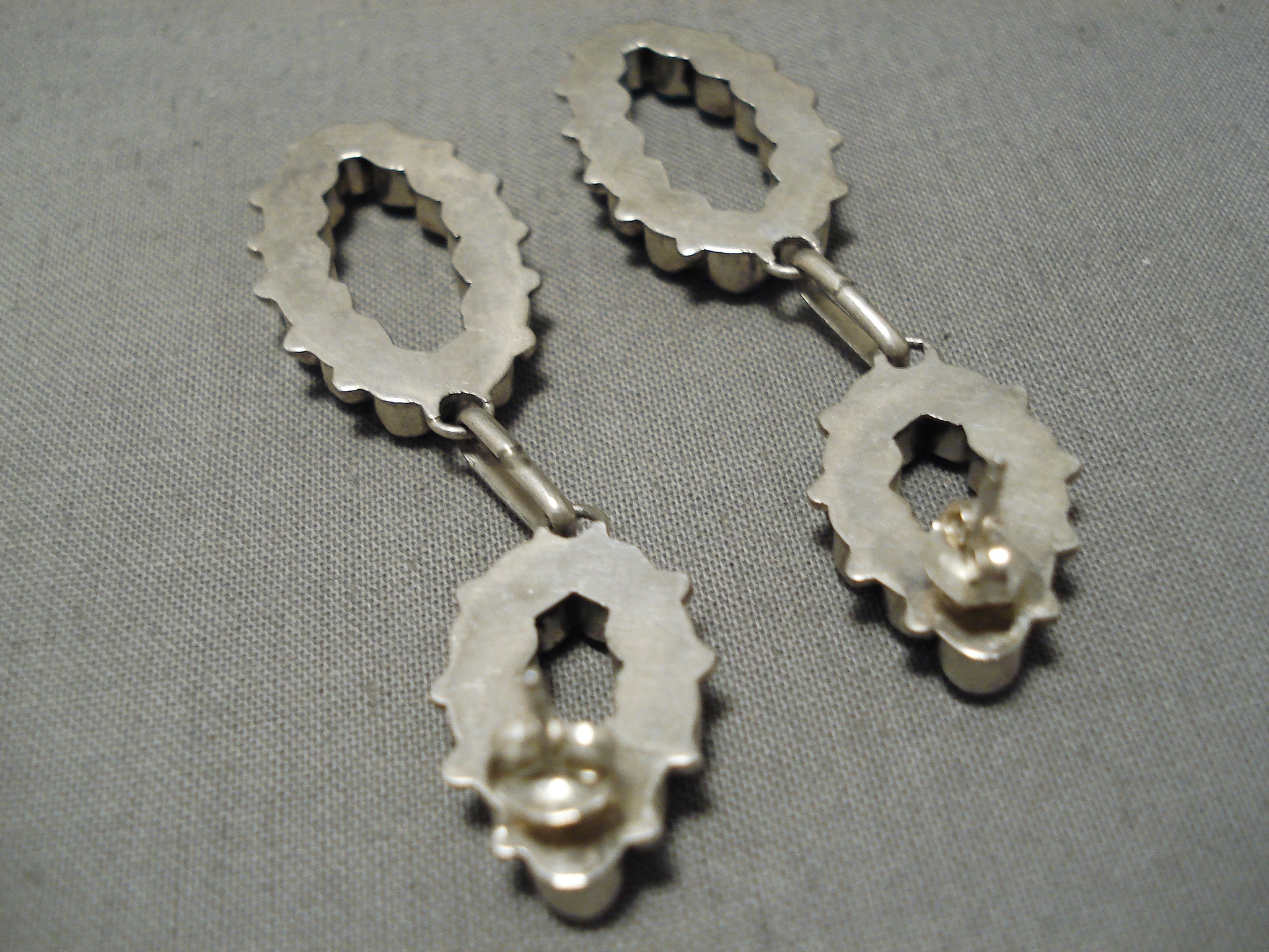 Exquisite Navajo Snake Eyes Turquoise Sterling Silver Native American Earrings
