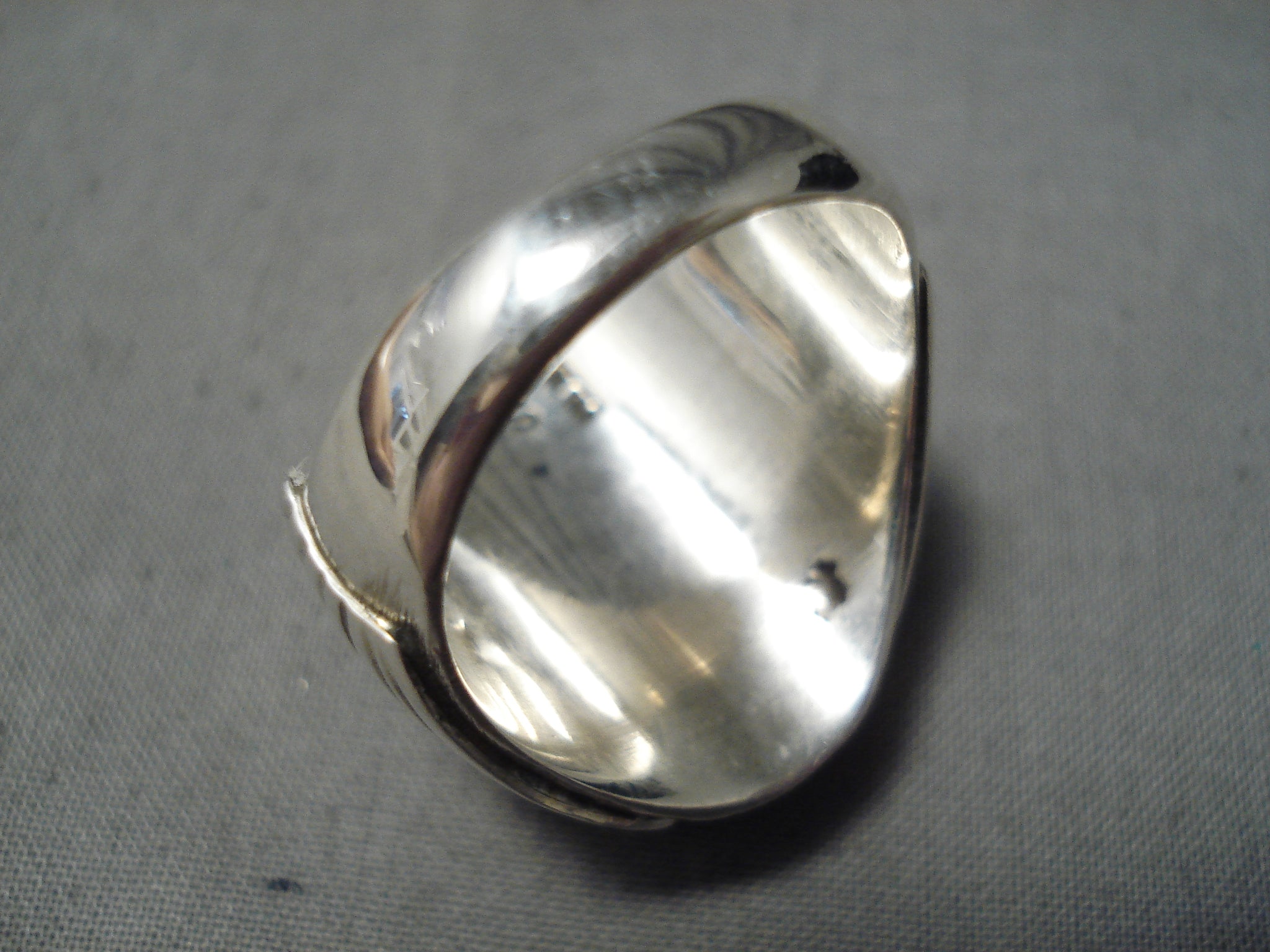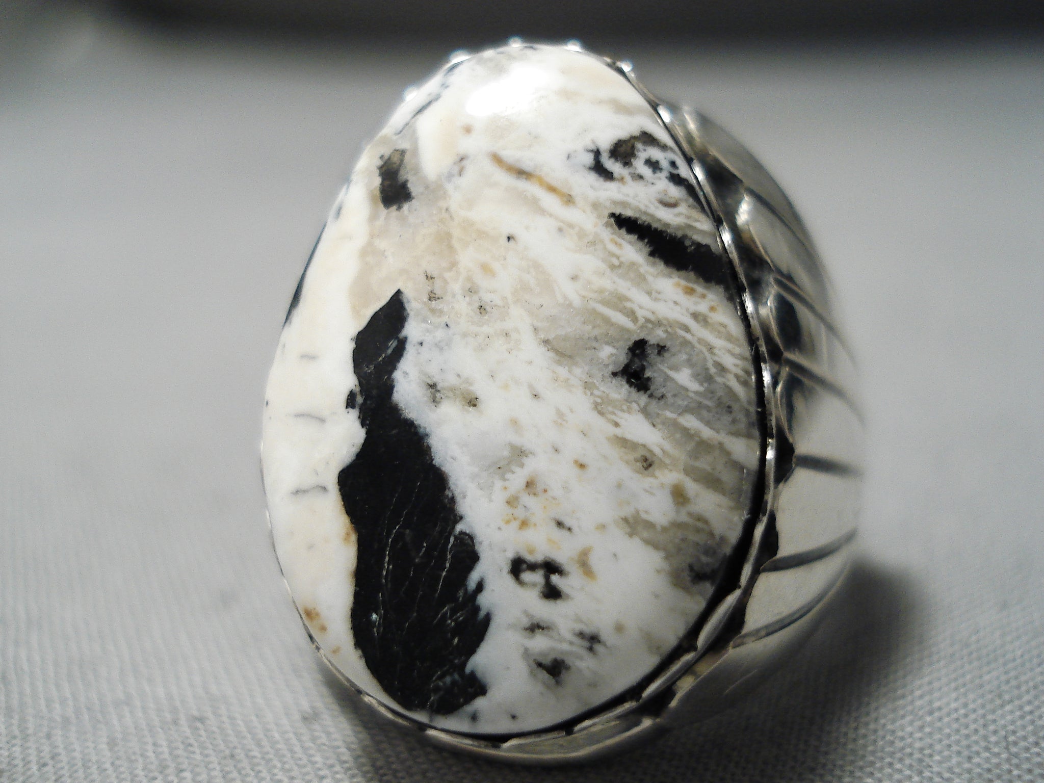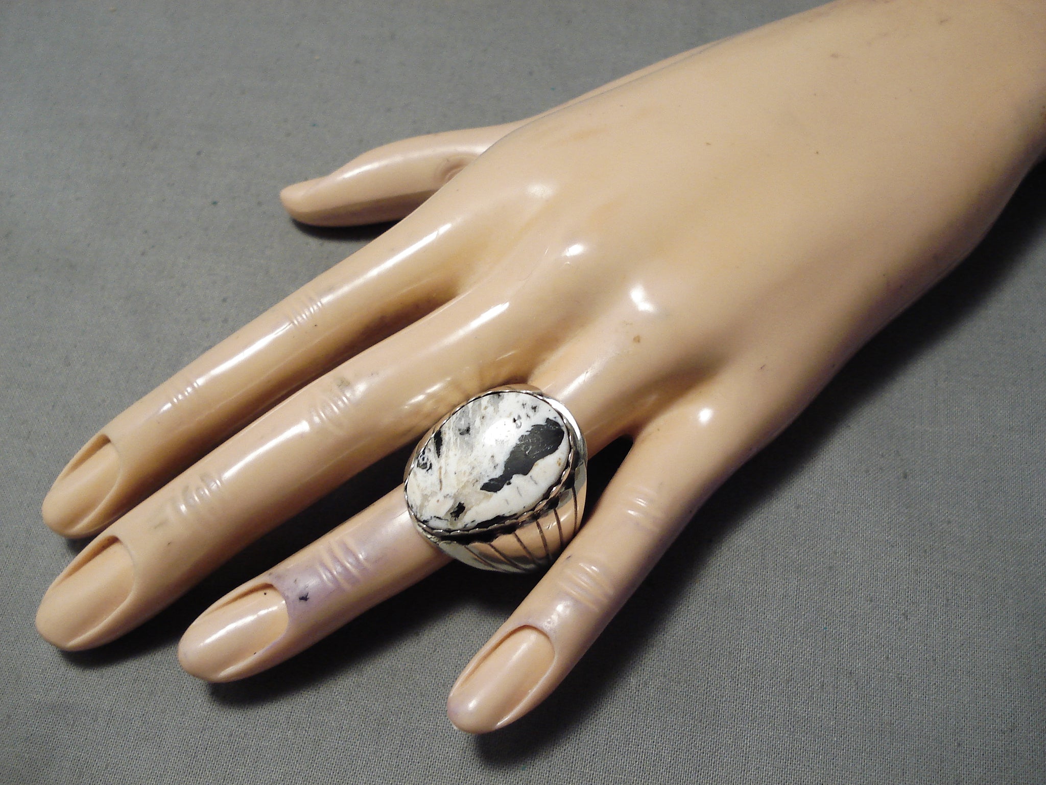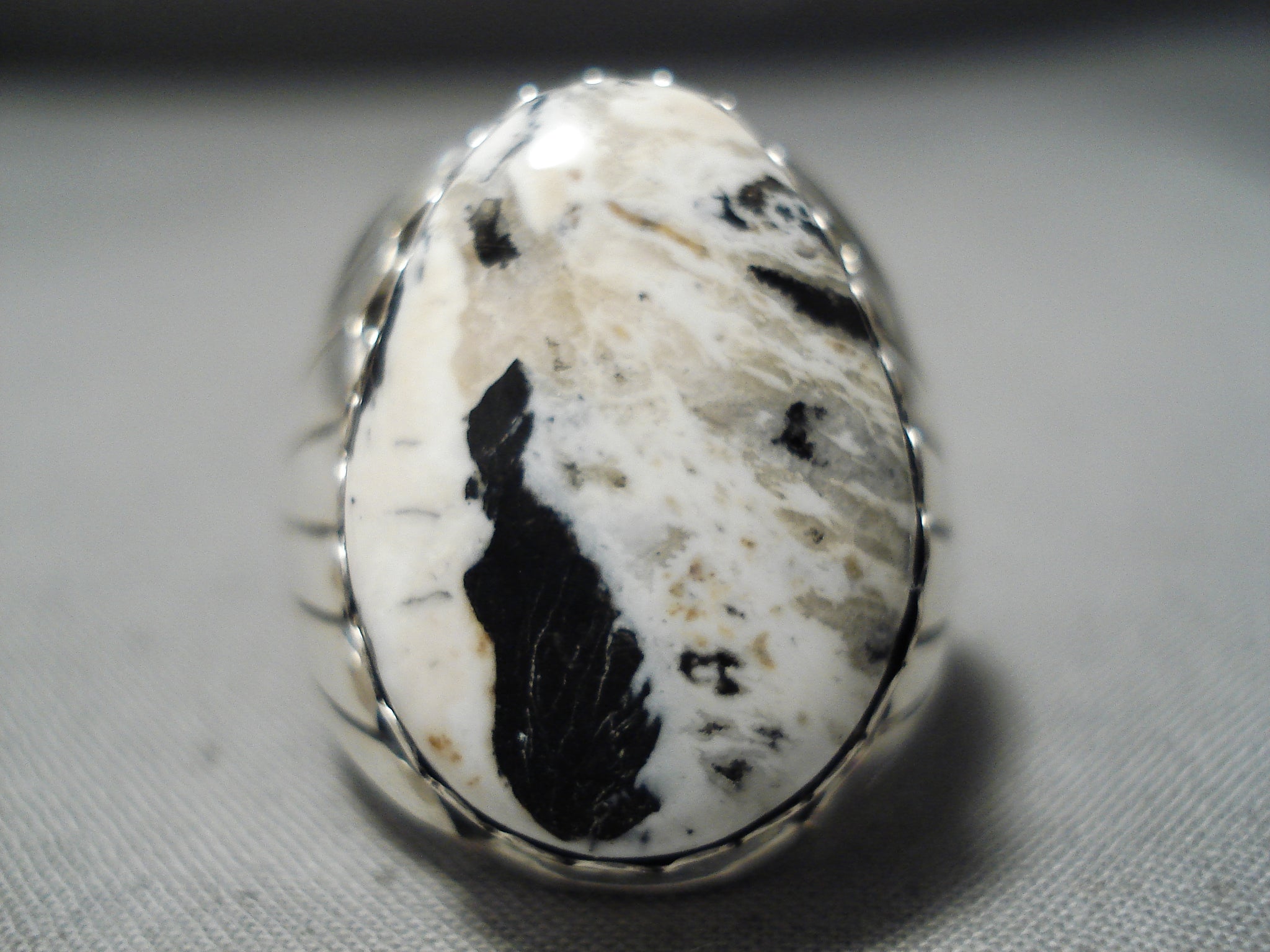 Exquisite Navajo White Buffalo Sterling Silver Ring Native American