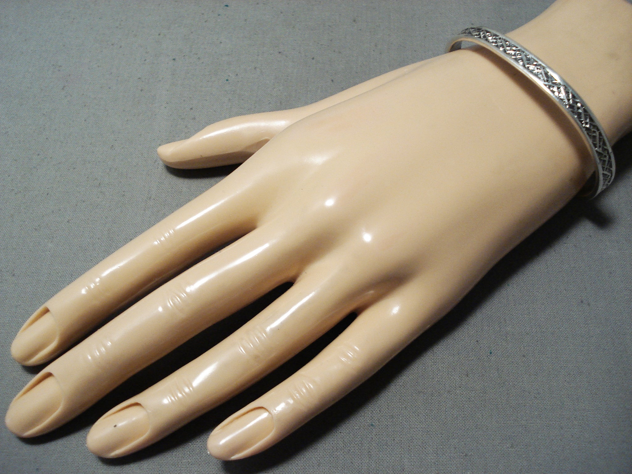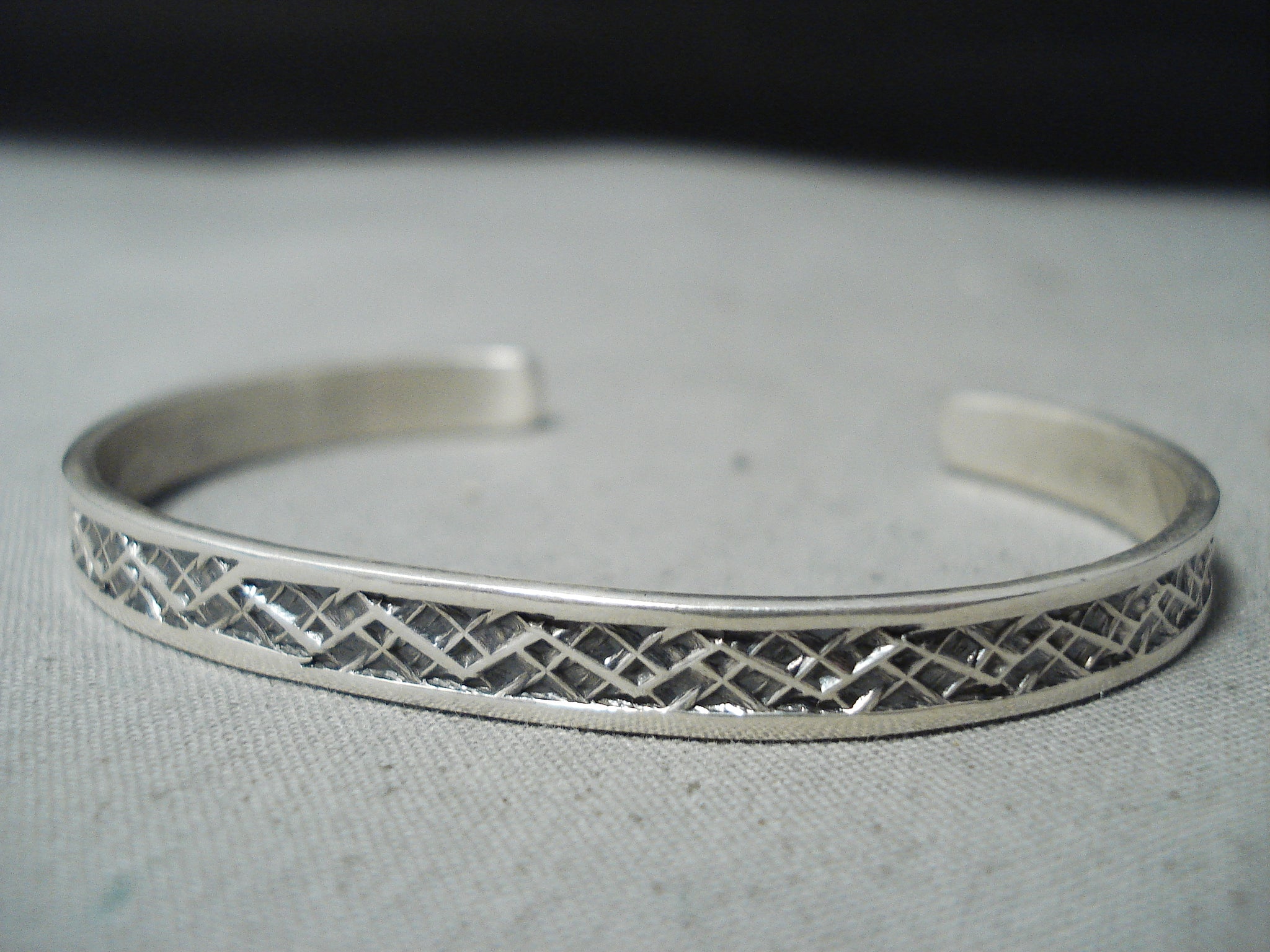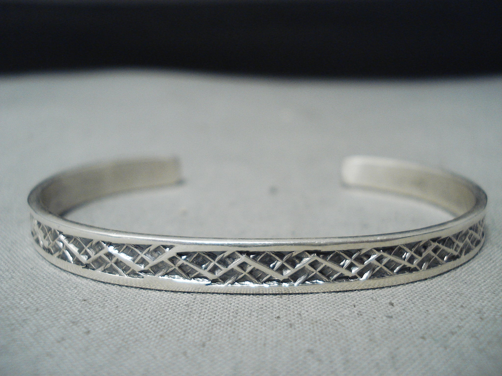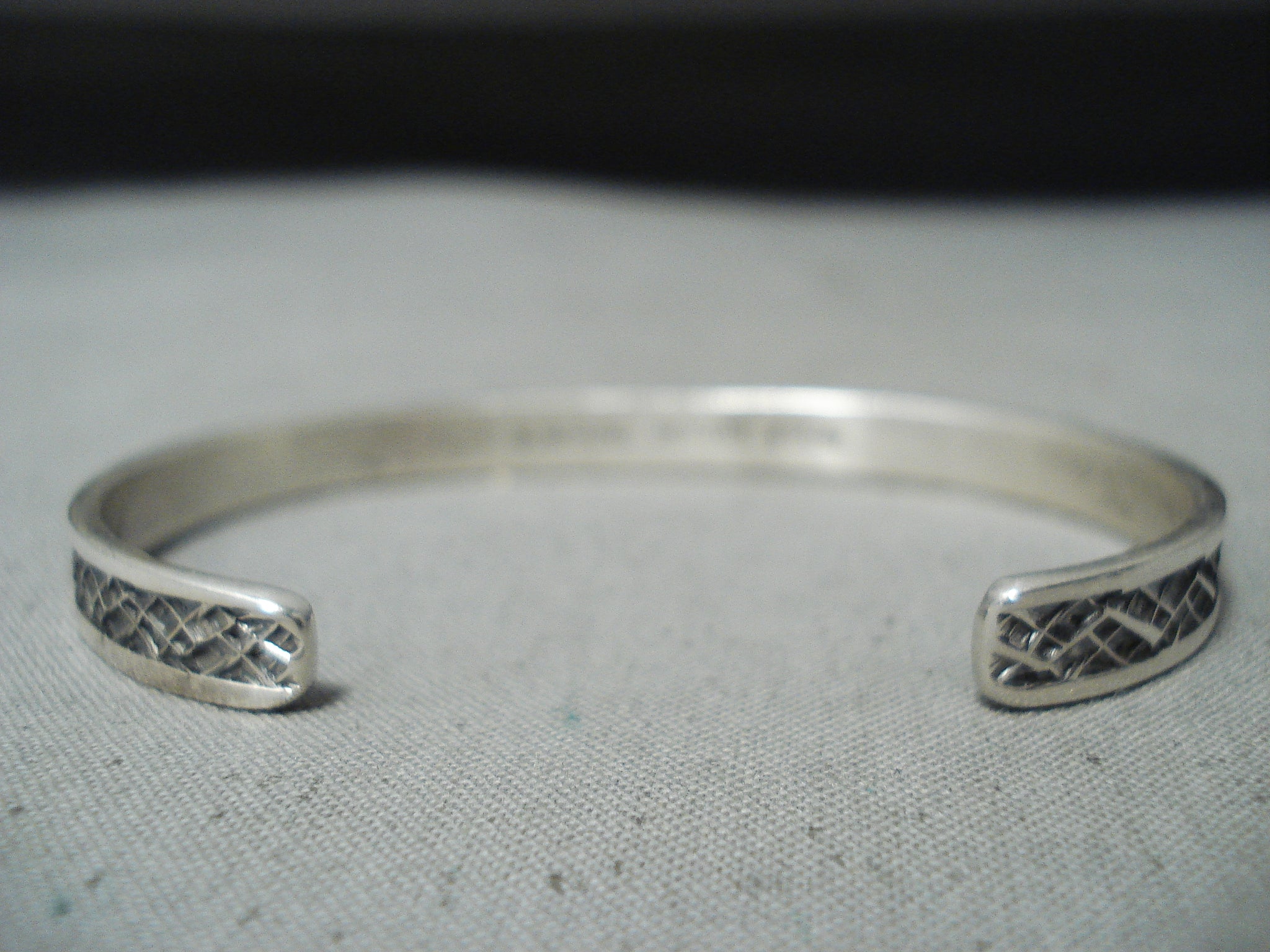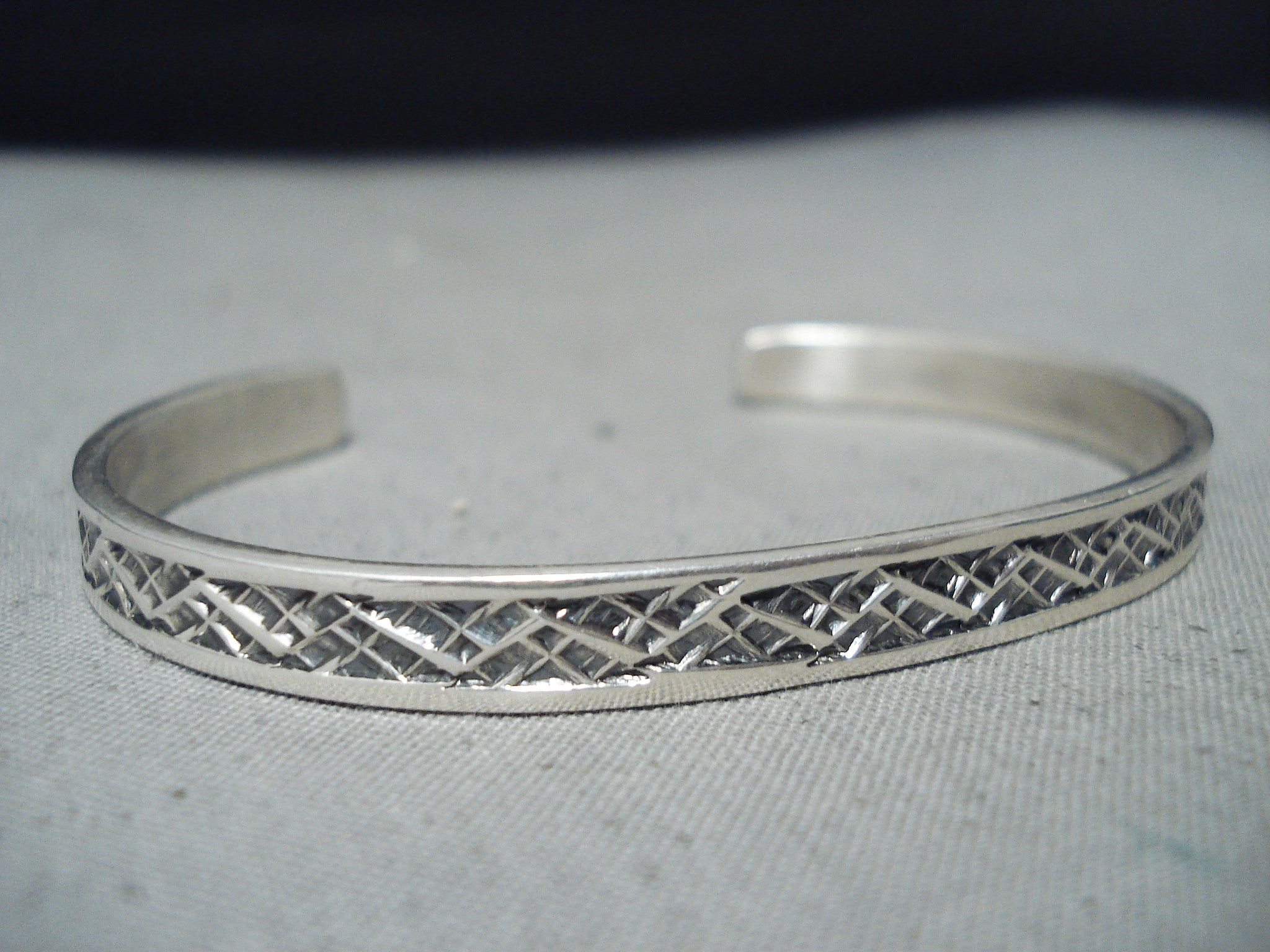 Exquisite Signed Vintage Native American Navajo Sterling Silver Bracelet