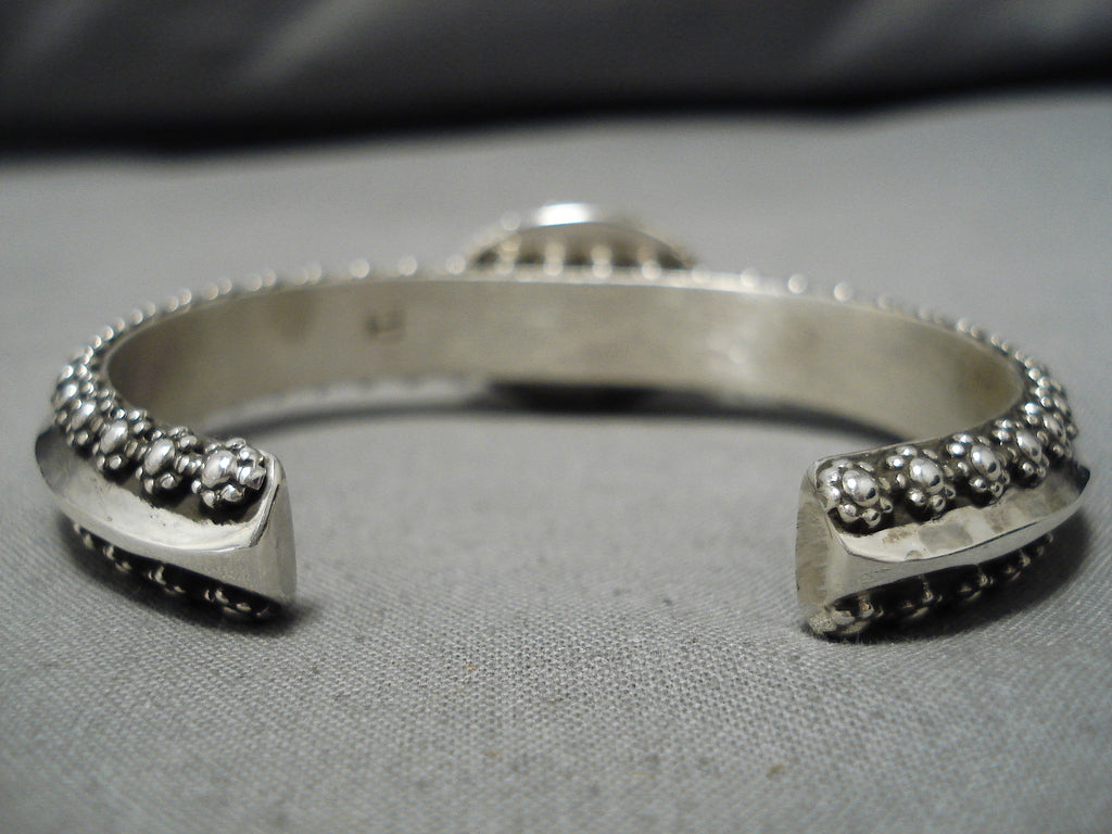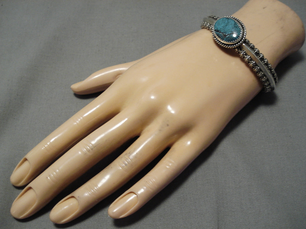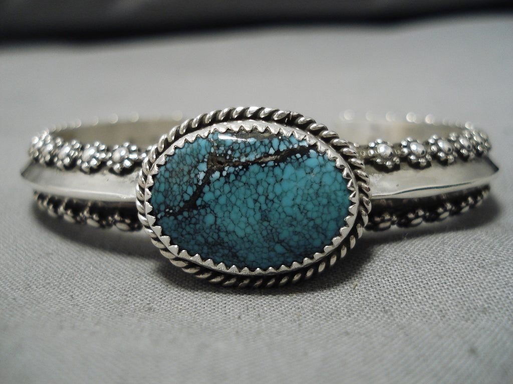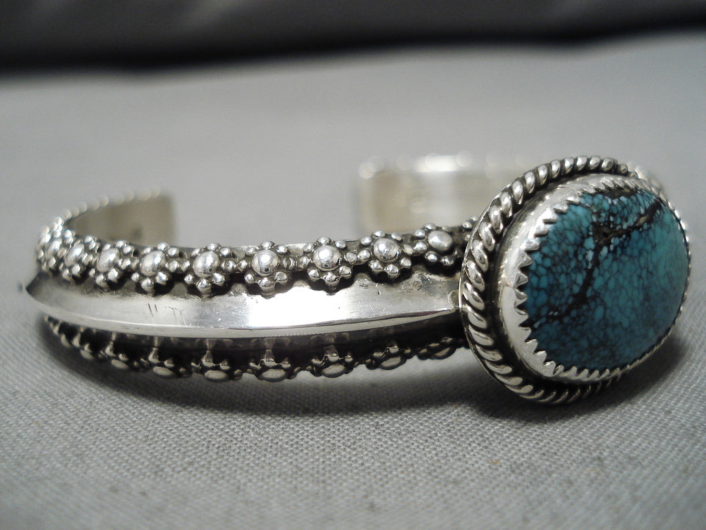Exquisite Tahe Spiderweb Turquoise Vintage Native American Navajo Sterling Silver Bracelet