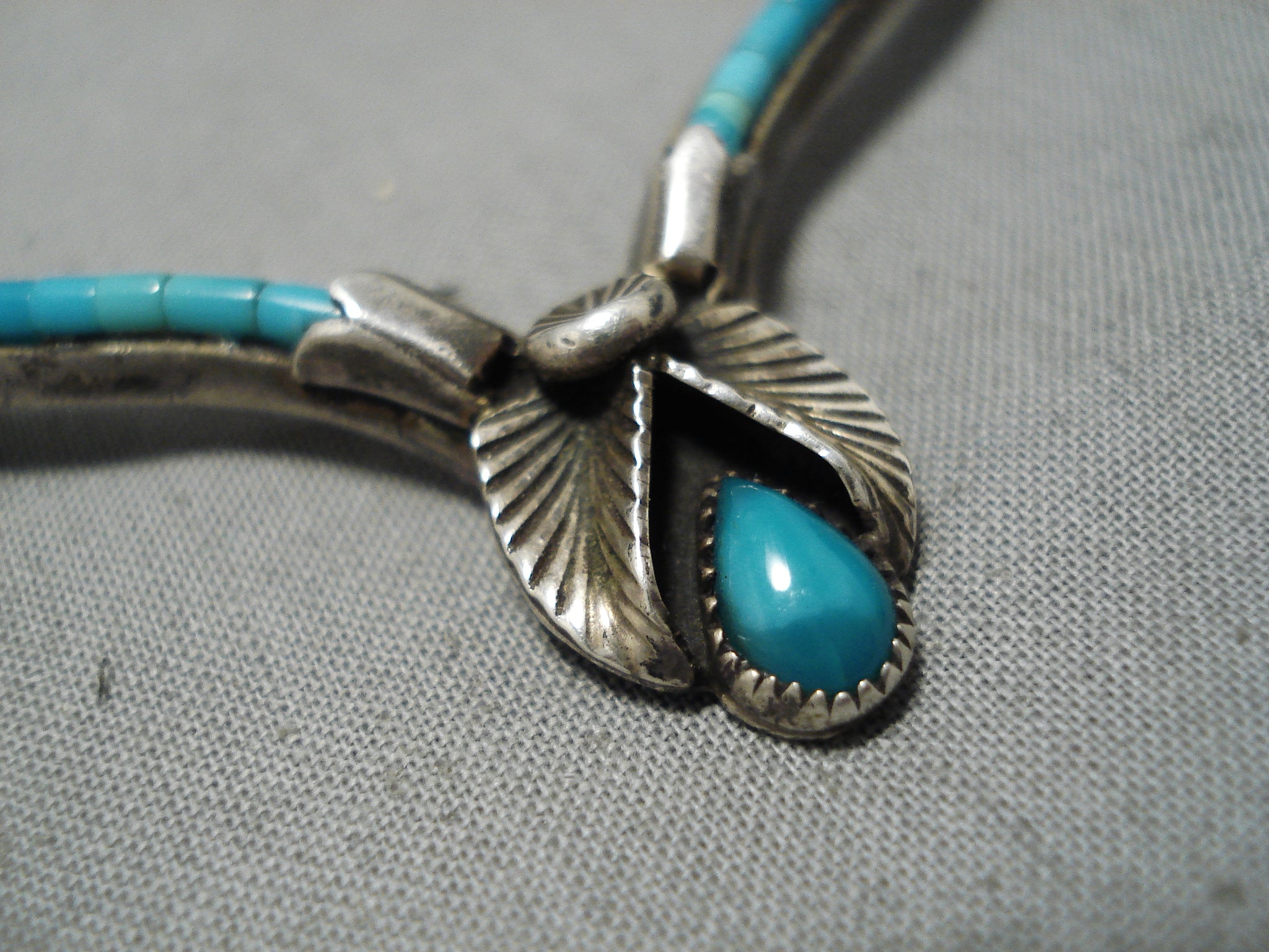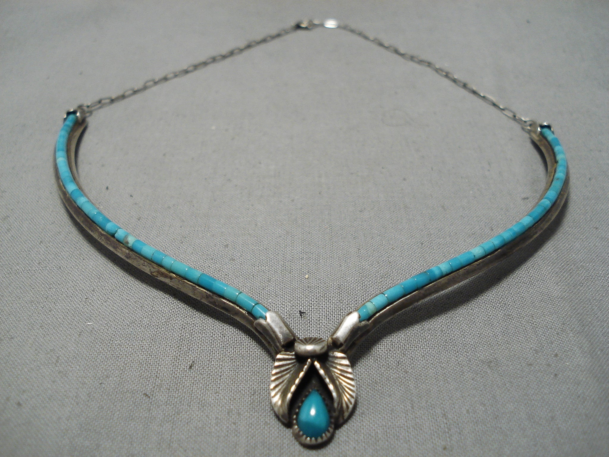 Exquisite Vintage Native American Navajo Choker Style Sterling Silver Turquoise Necklace