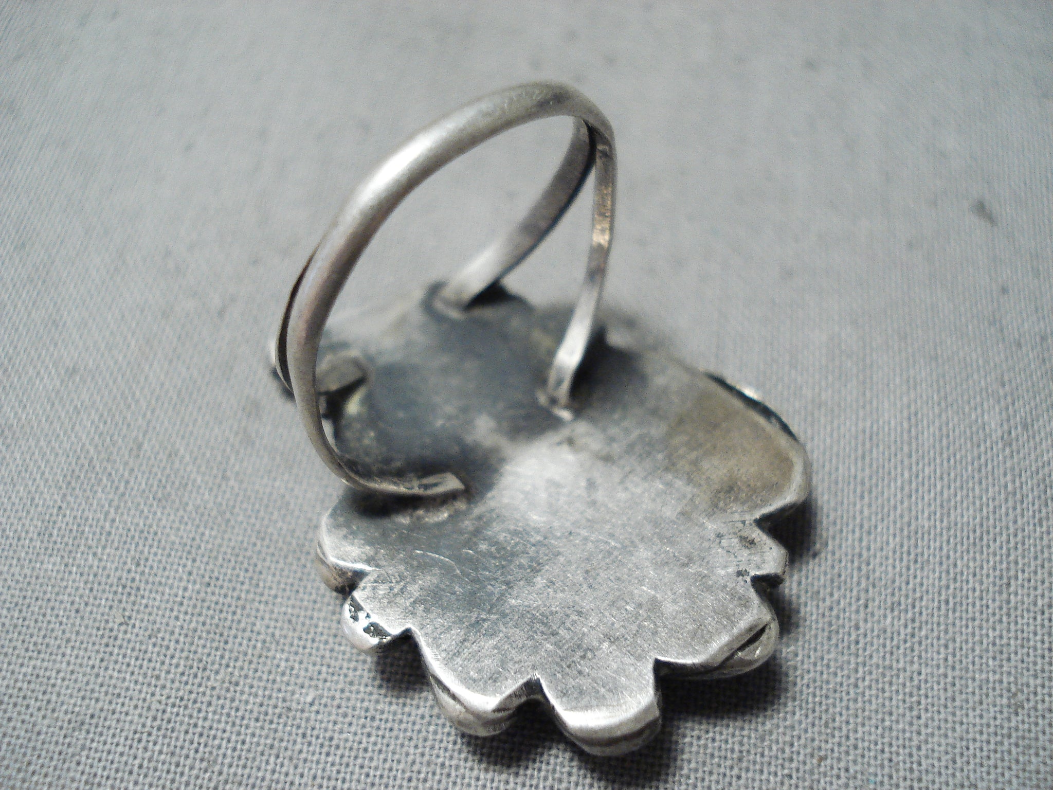 Exquisite Vintage Native American Navajo Pilot Mountain Turquoise Sterling Silver Ring Old