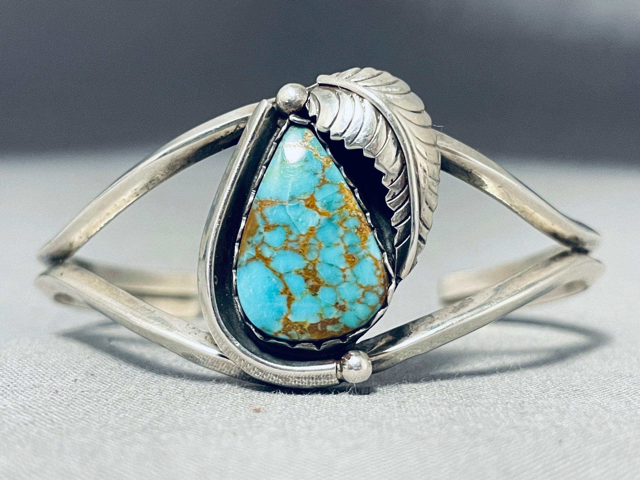 Exquisite Vintage Native American Navajo Spiderweb Turquoise Sterling Silver Bracelet