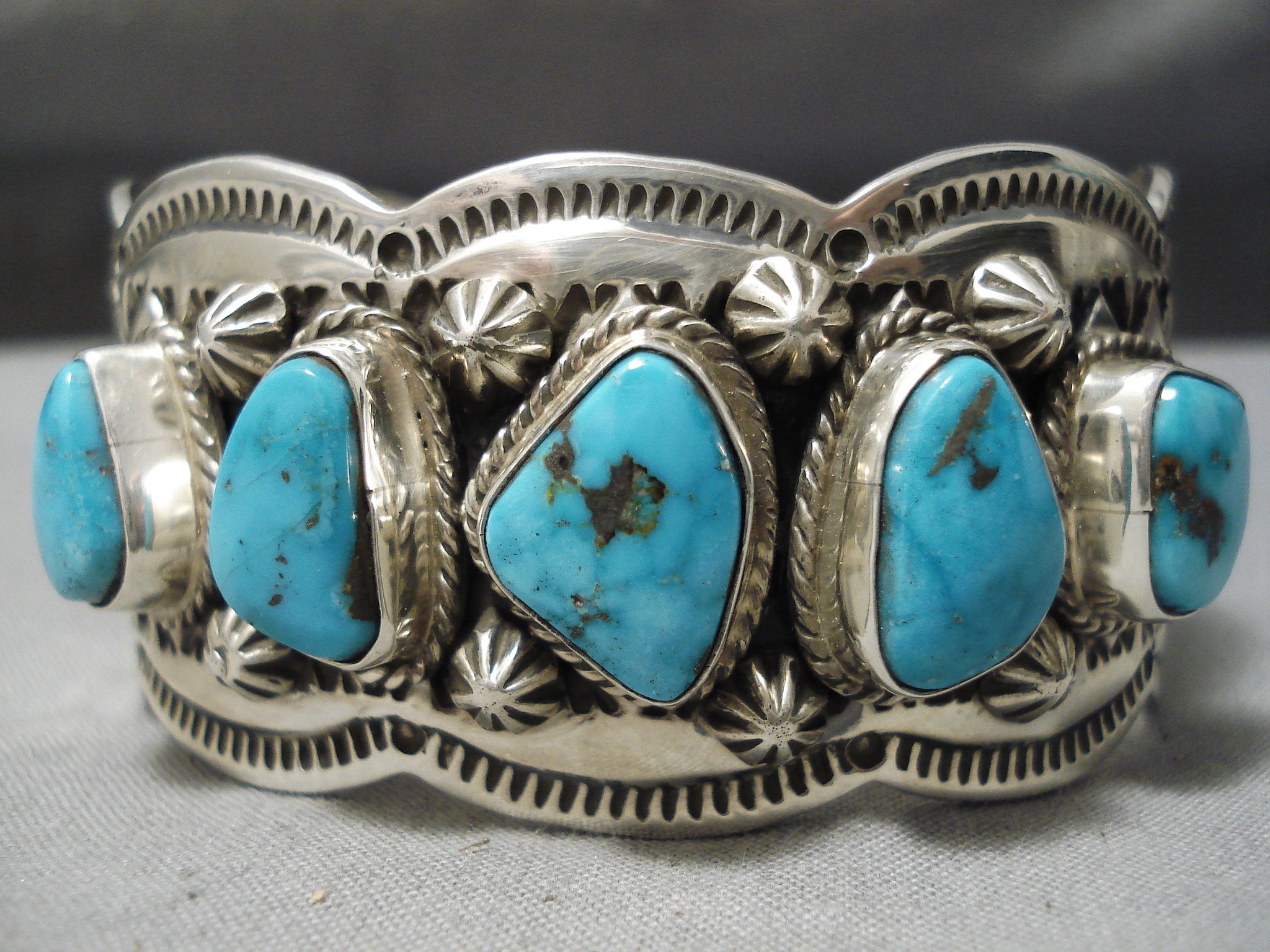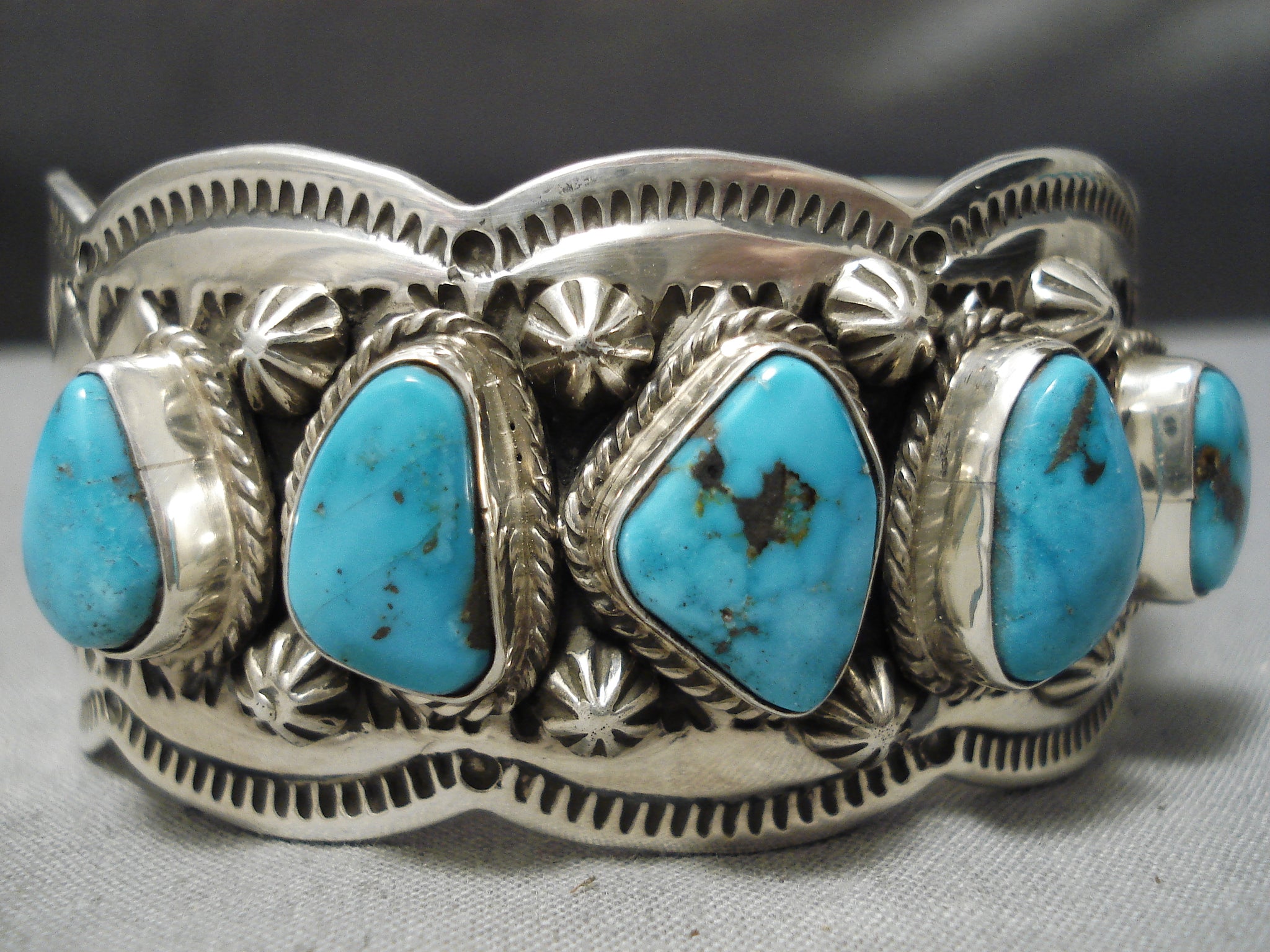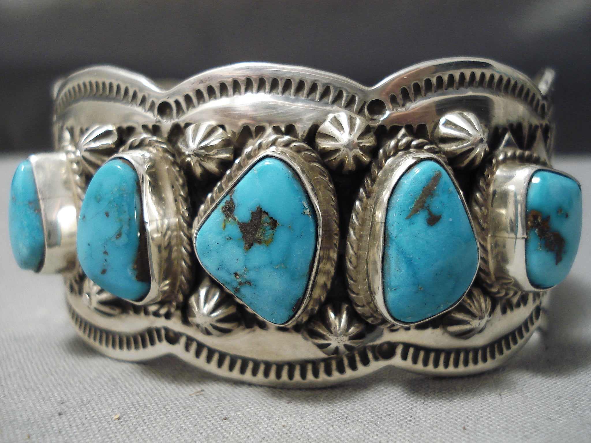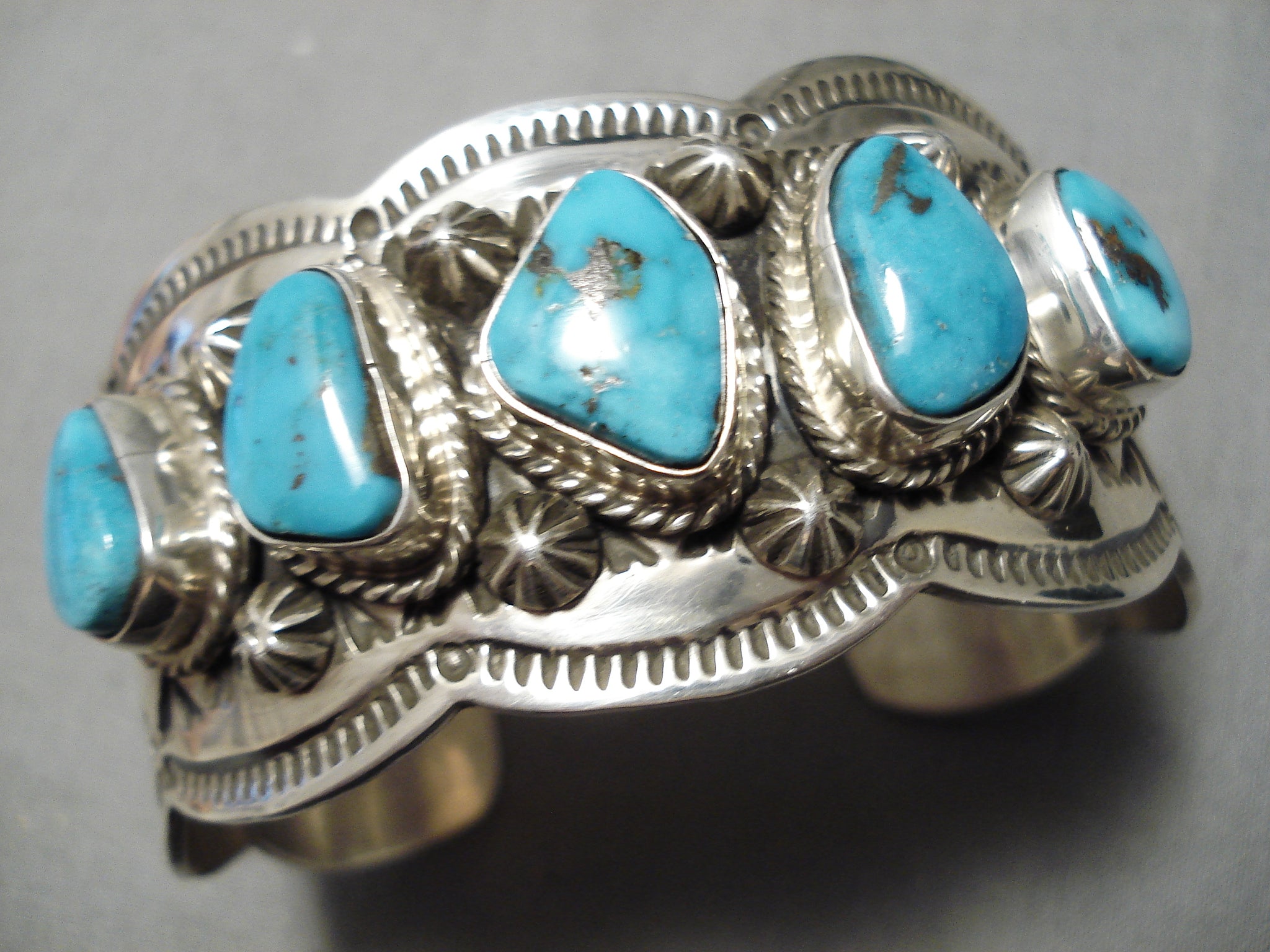 Exquisite Vintage Native American Navajo Spiderweb Turquoise Sterling Silver Shell Bracelet