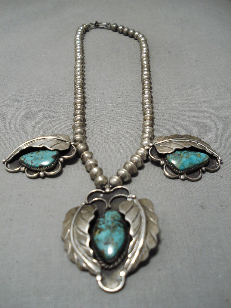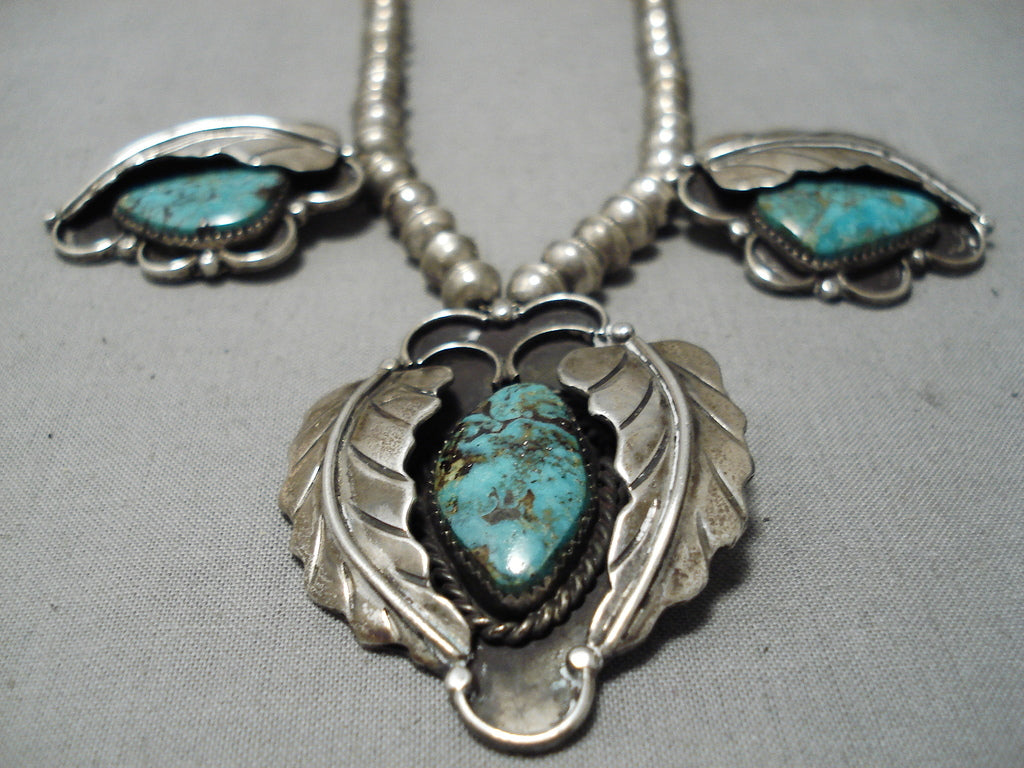 Exquisite Vintage Native American Navajo Sterling Silver Native Royston Turquoise Necklace Old
