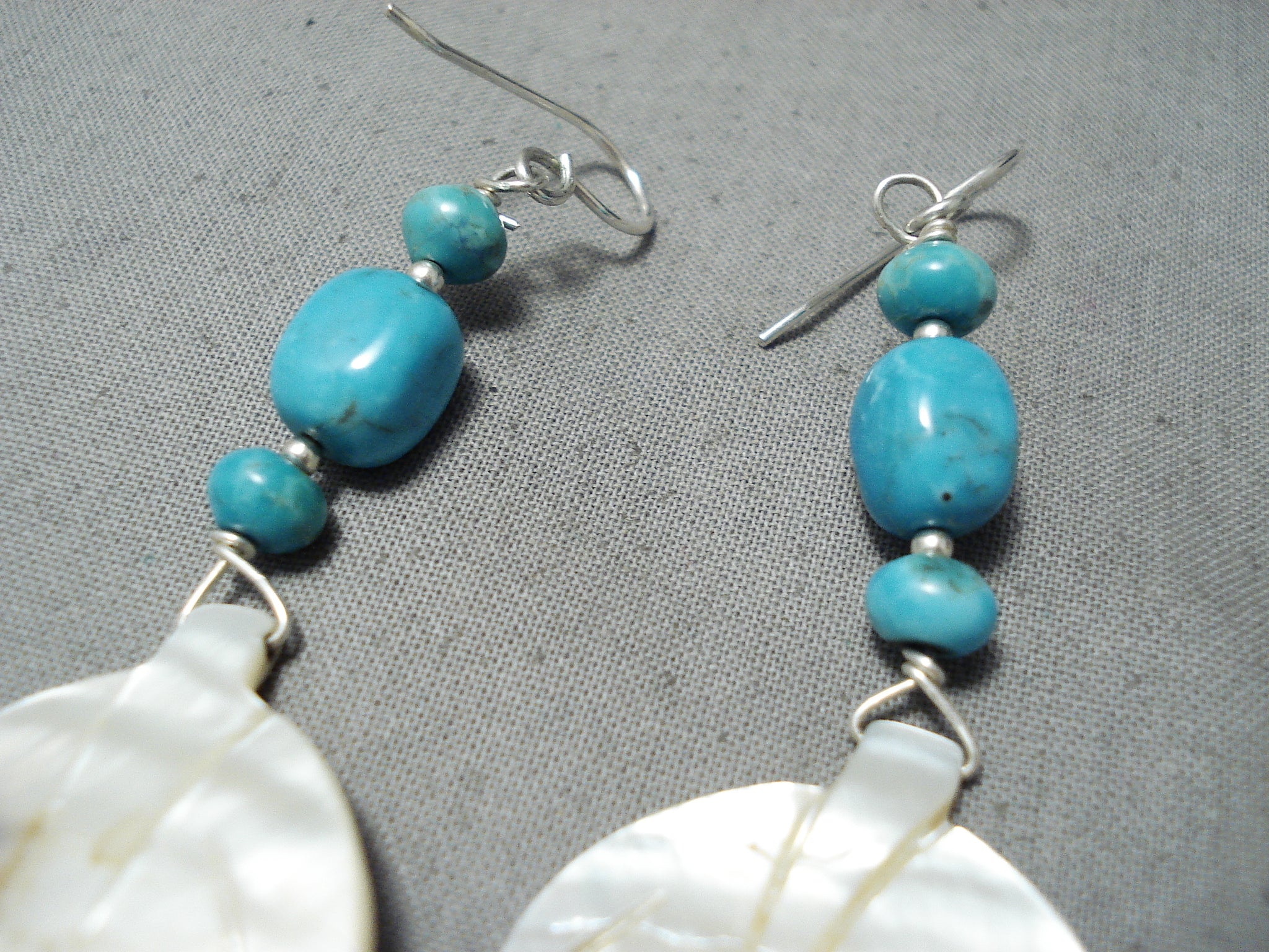 Exquisite Vintage Native American Navajo Turquoise Mother Of Pearl Sterling Silver Earrings