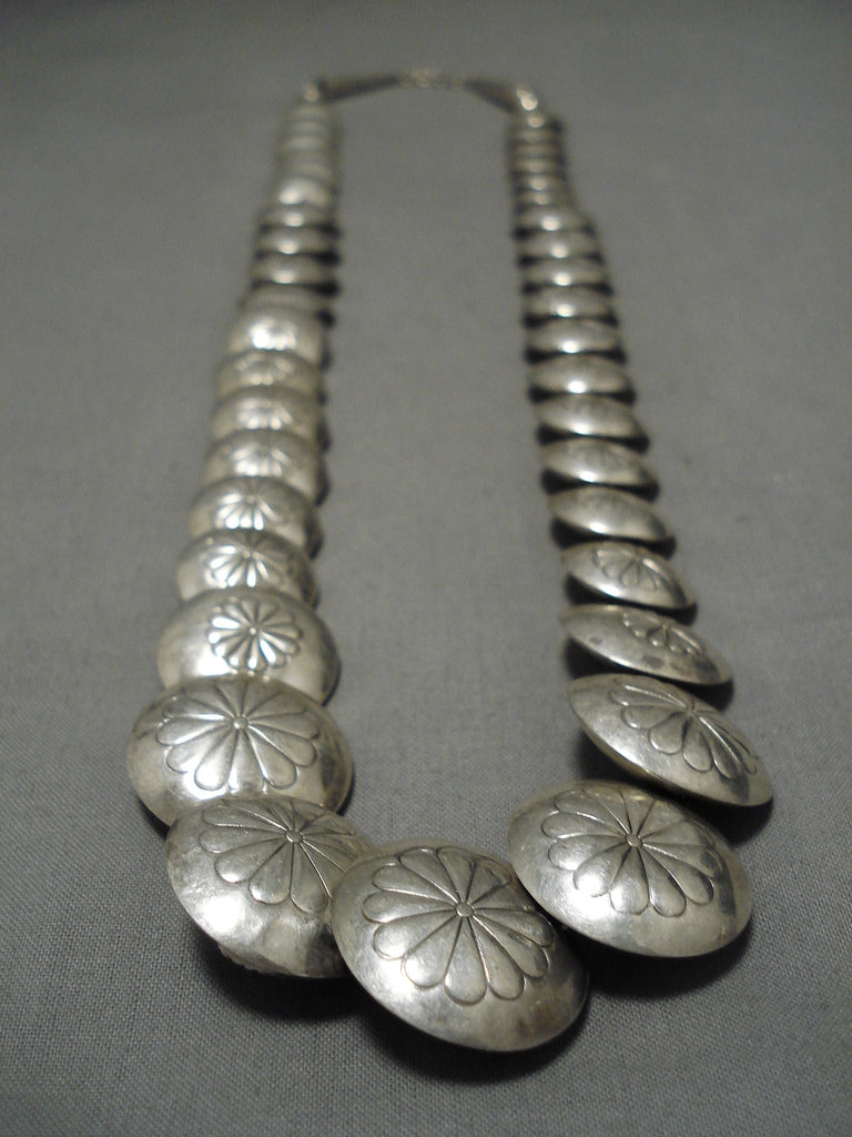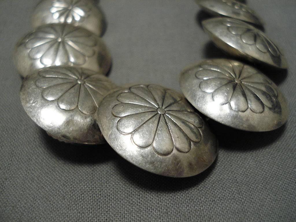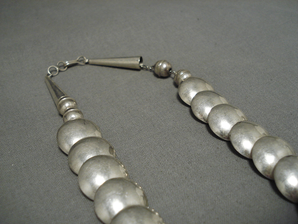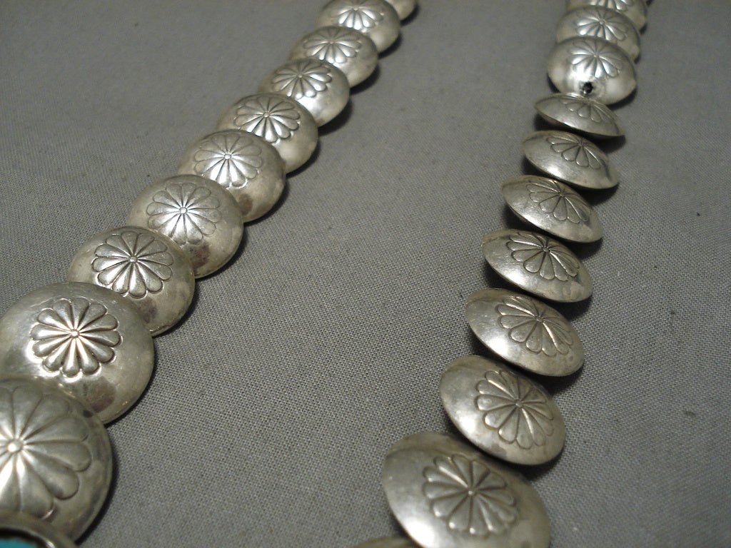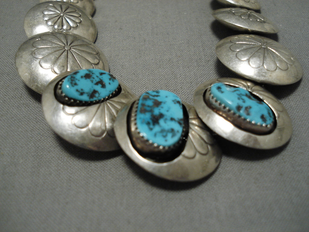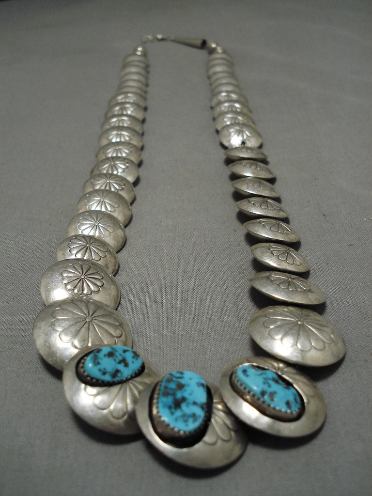 Exquisite Vintage Native American Navajo Turquoise Sterling Silver Bead Necklace Old