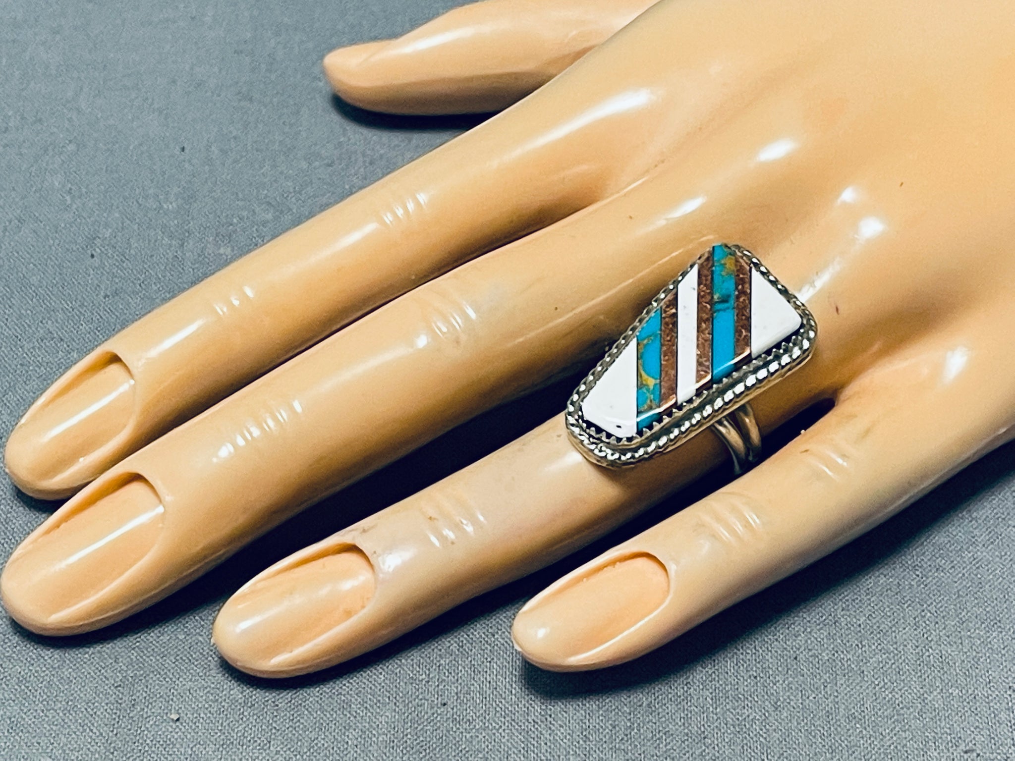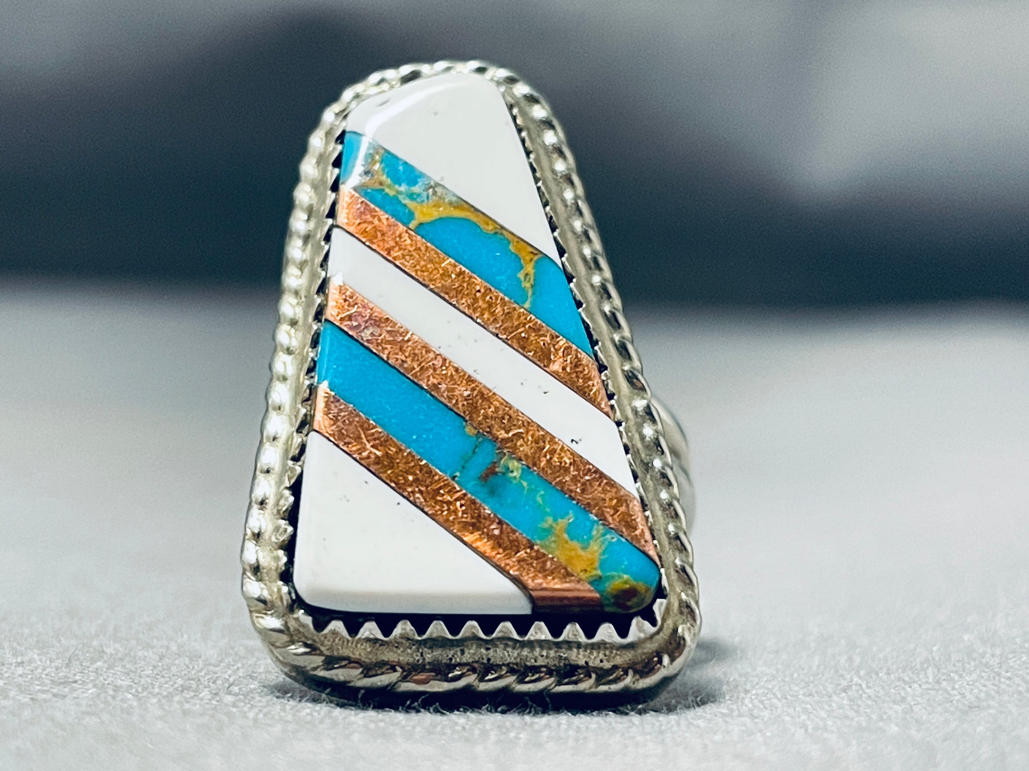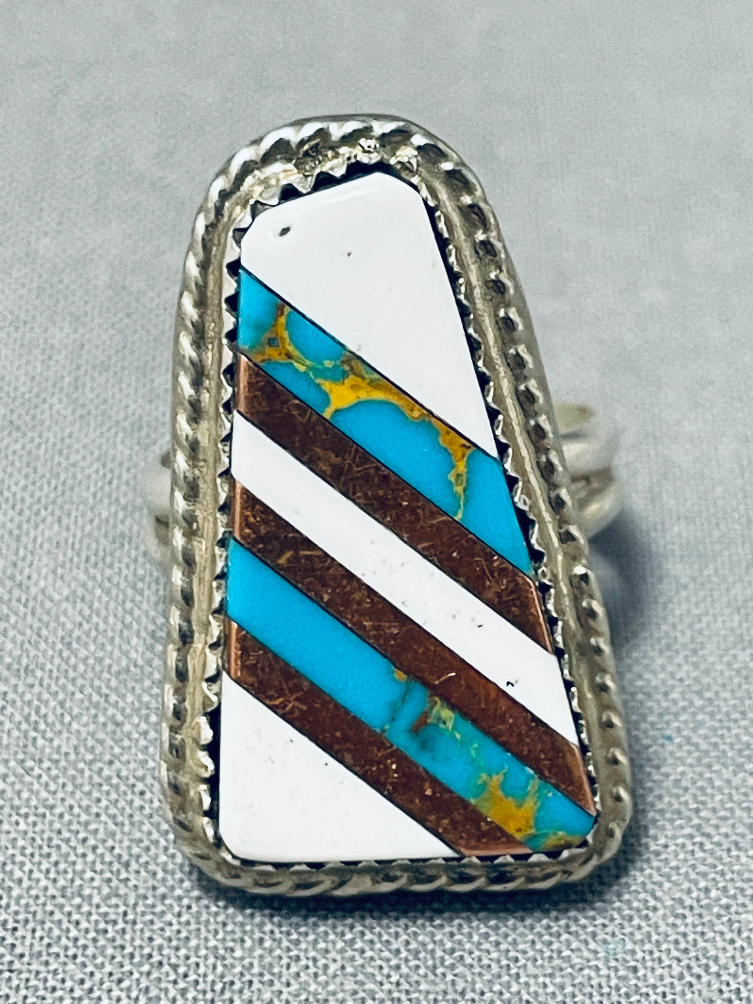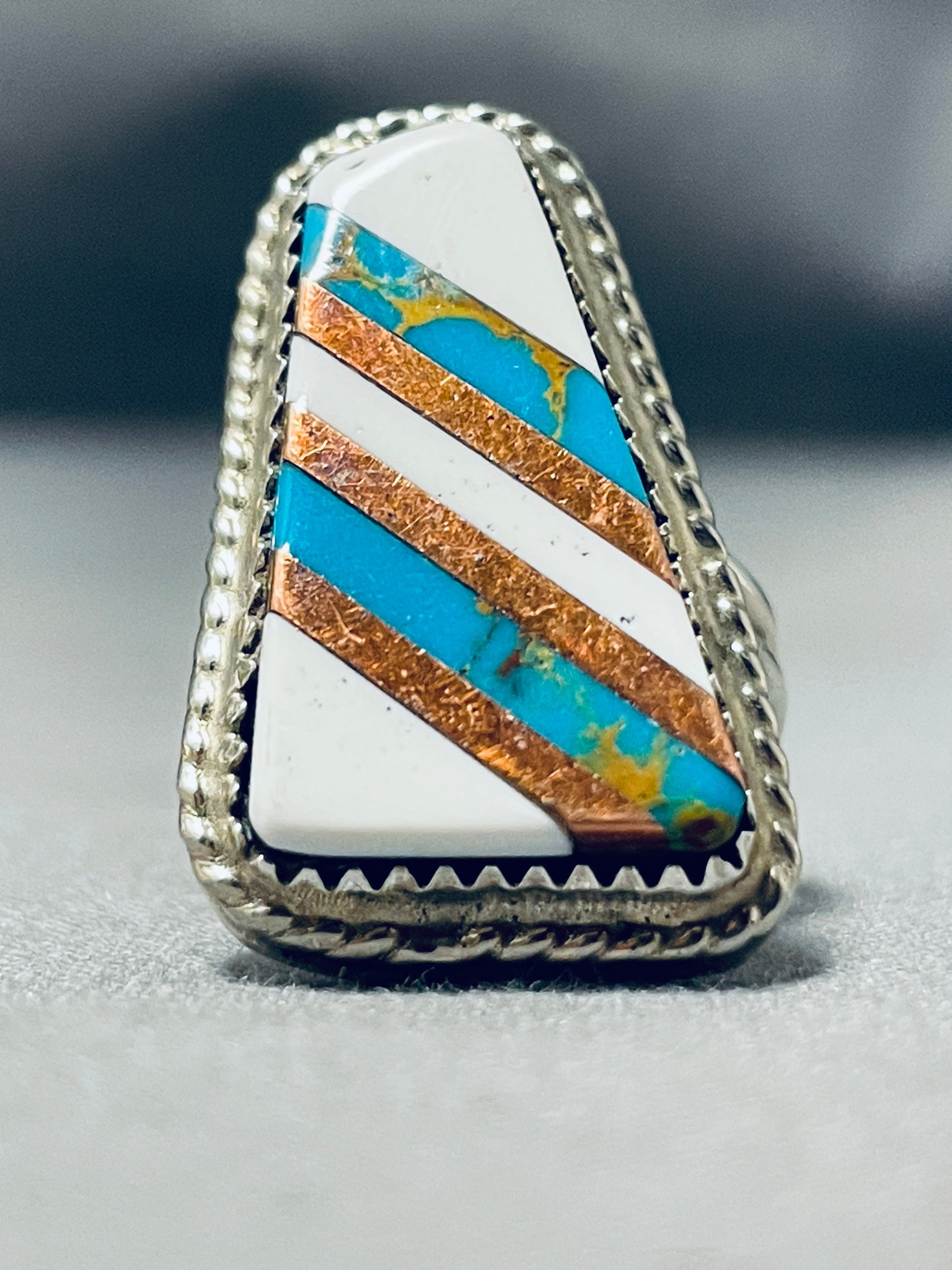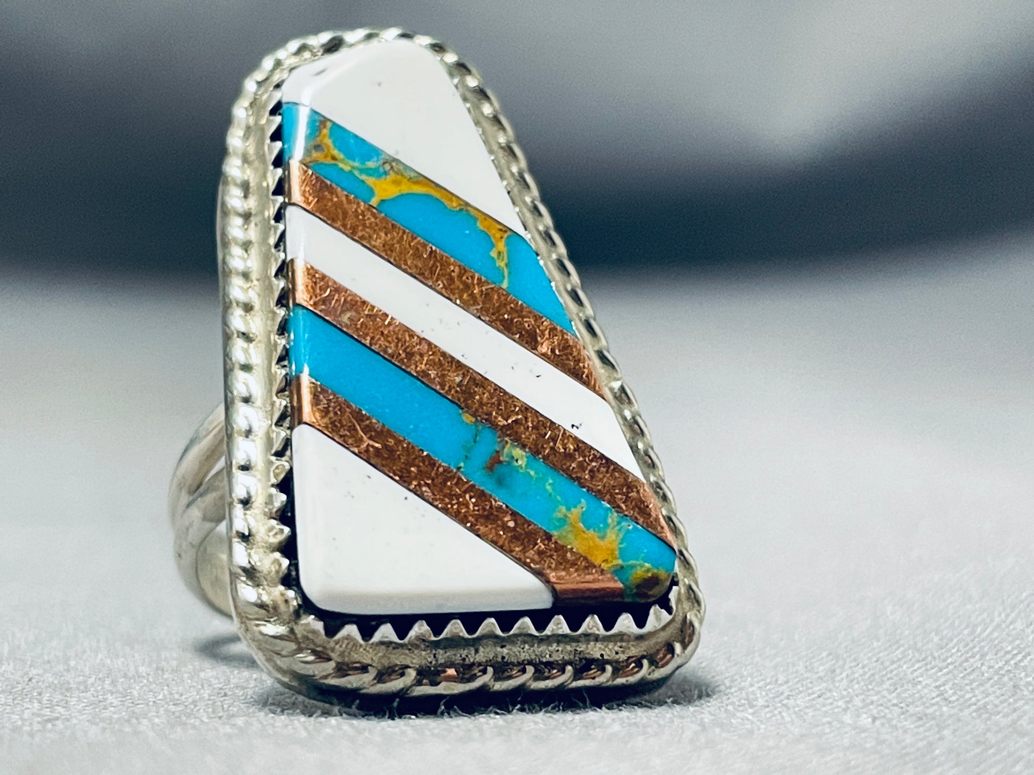 Exquisite Vintage Native American Navajo Turquoise White Buffalo Sterling Silver Ring