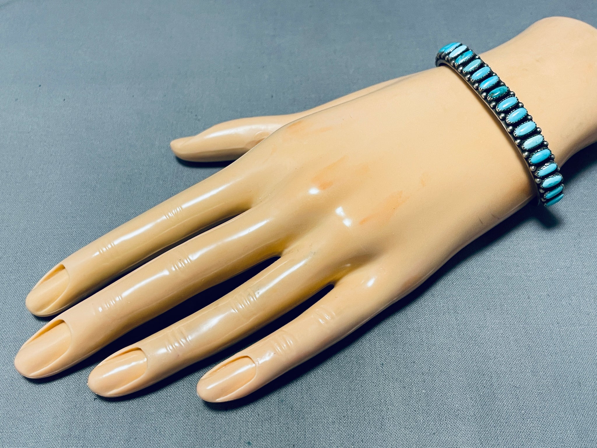 Exquisite Vintage Native American Zuni Blue Gem Turquoise Sterling Silver Bracelet