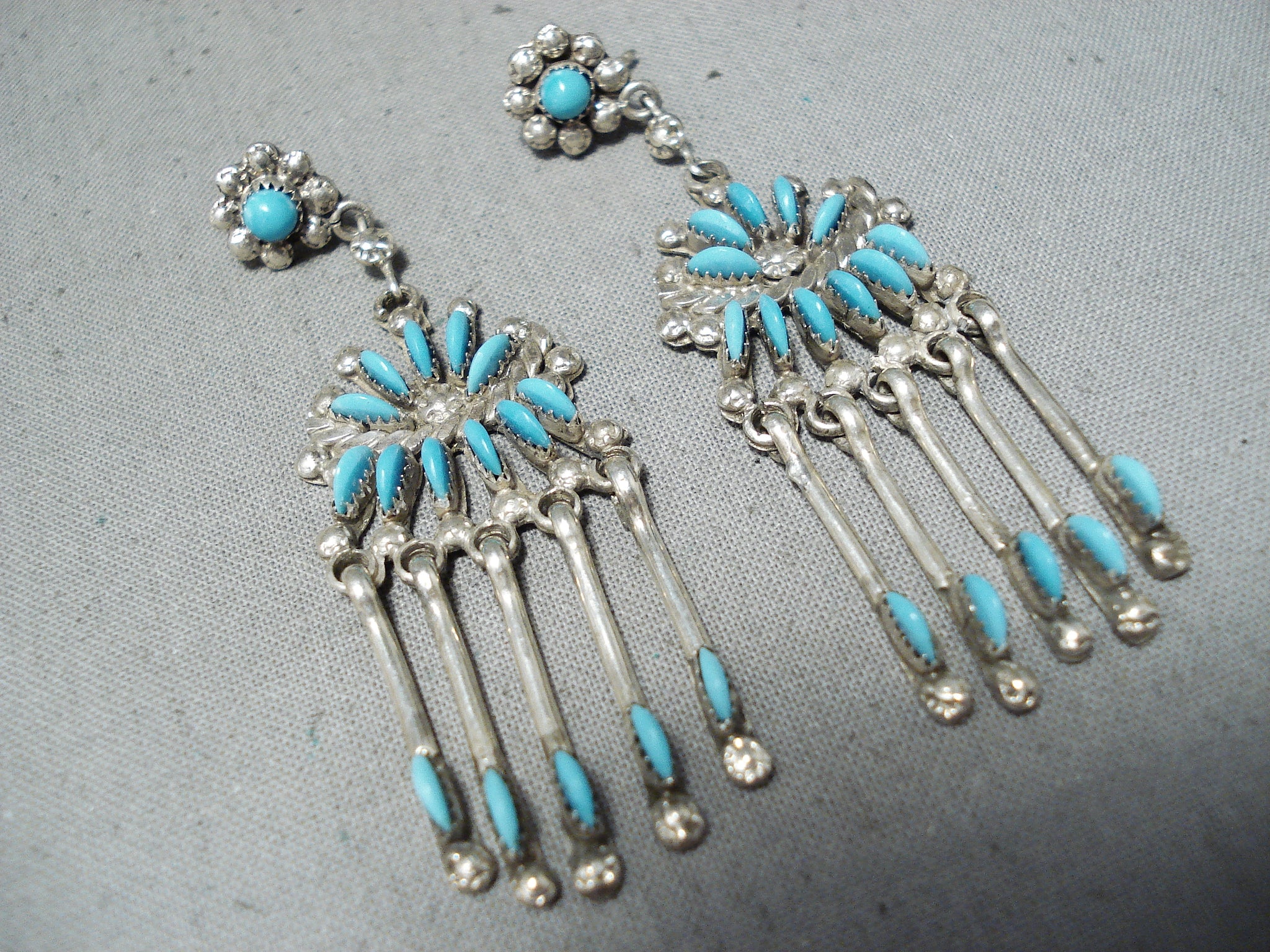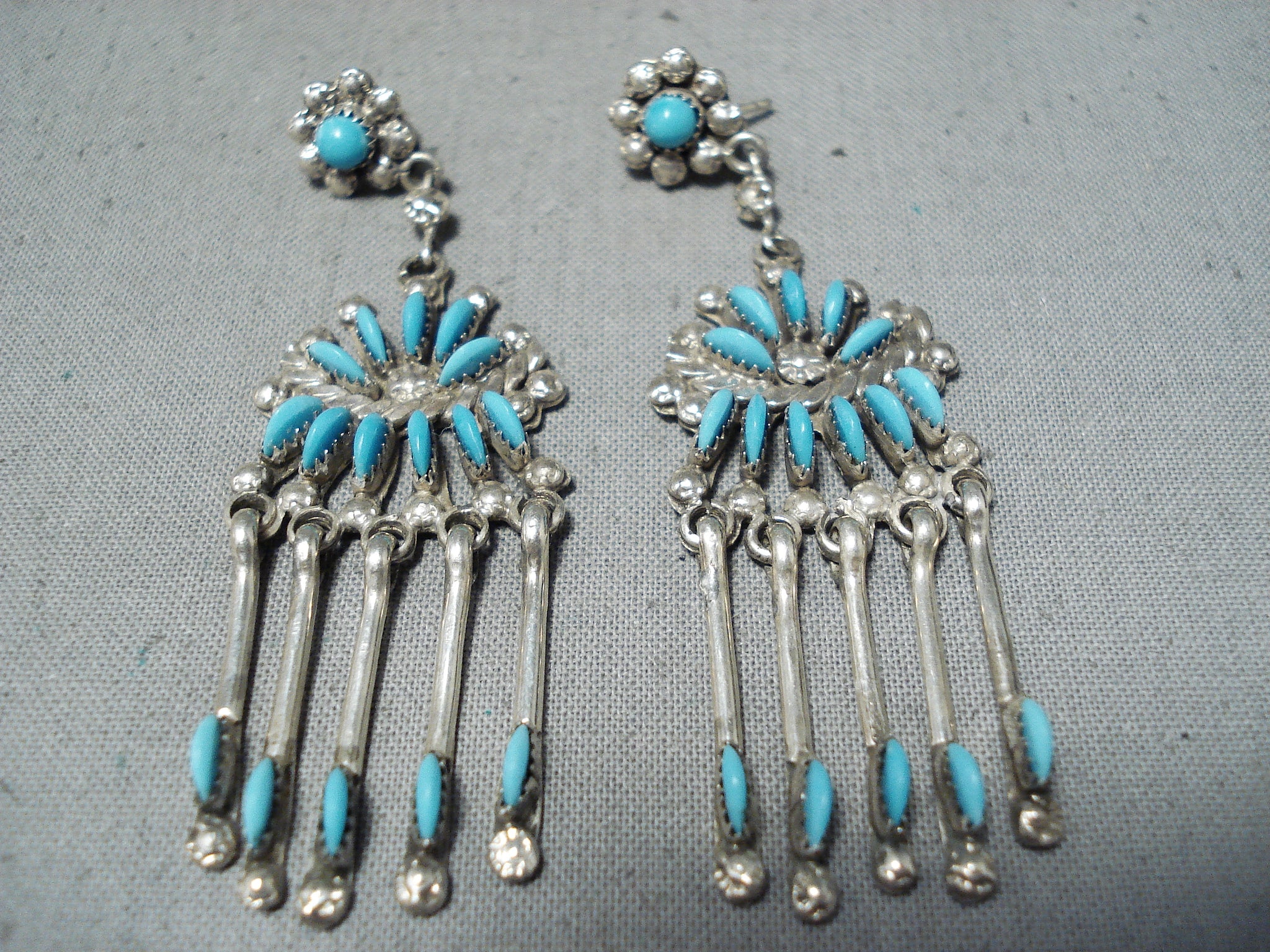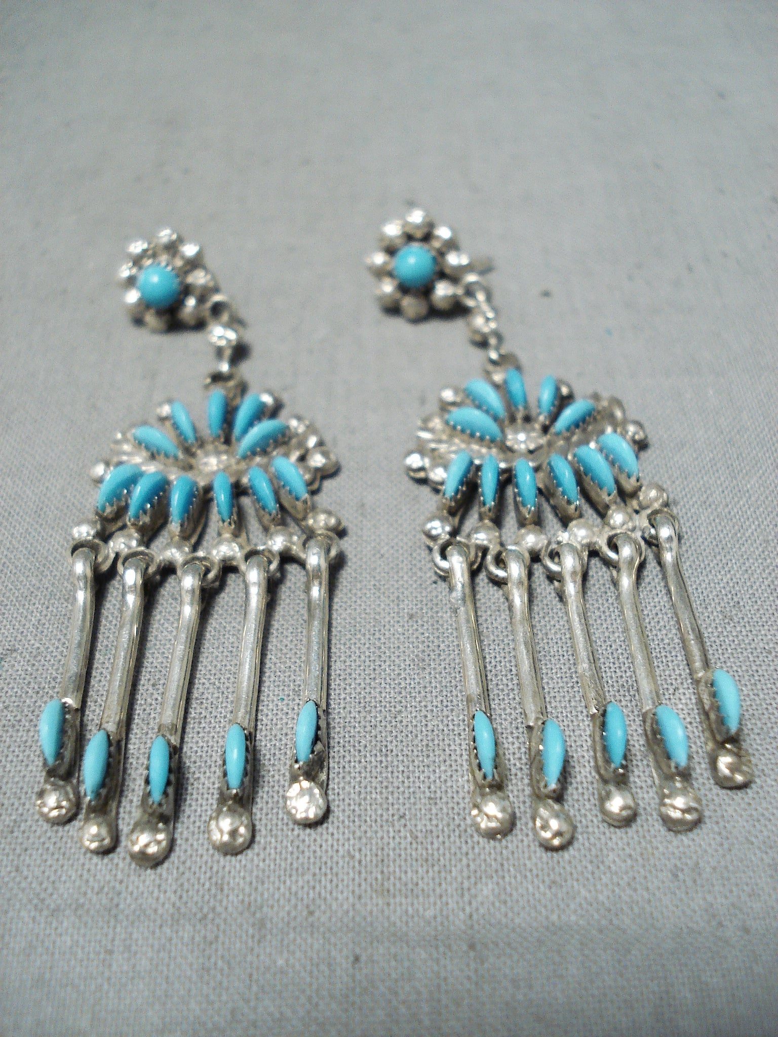 Exquisite Vintage Native American Zuni Sleeping Beauty Turquoise Sterling Silver Earrings