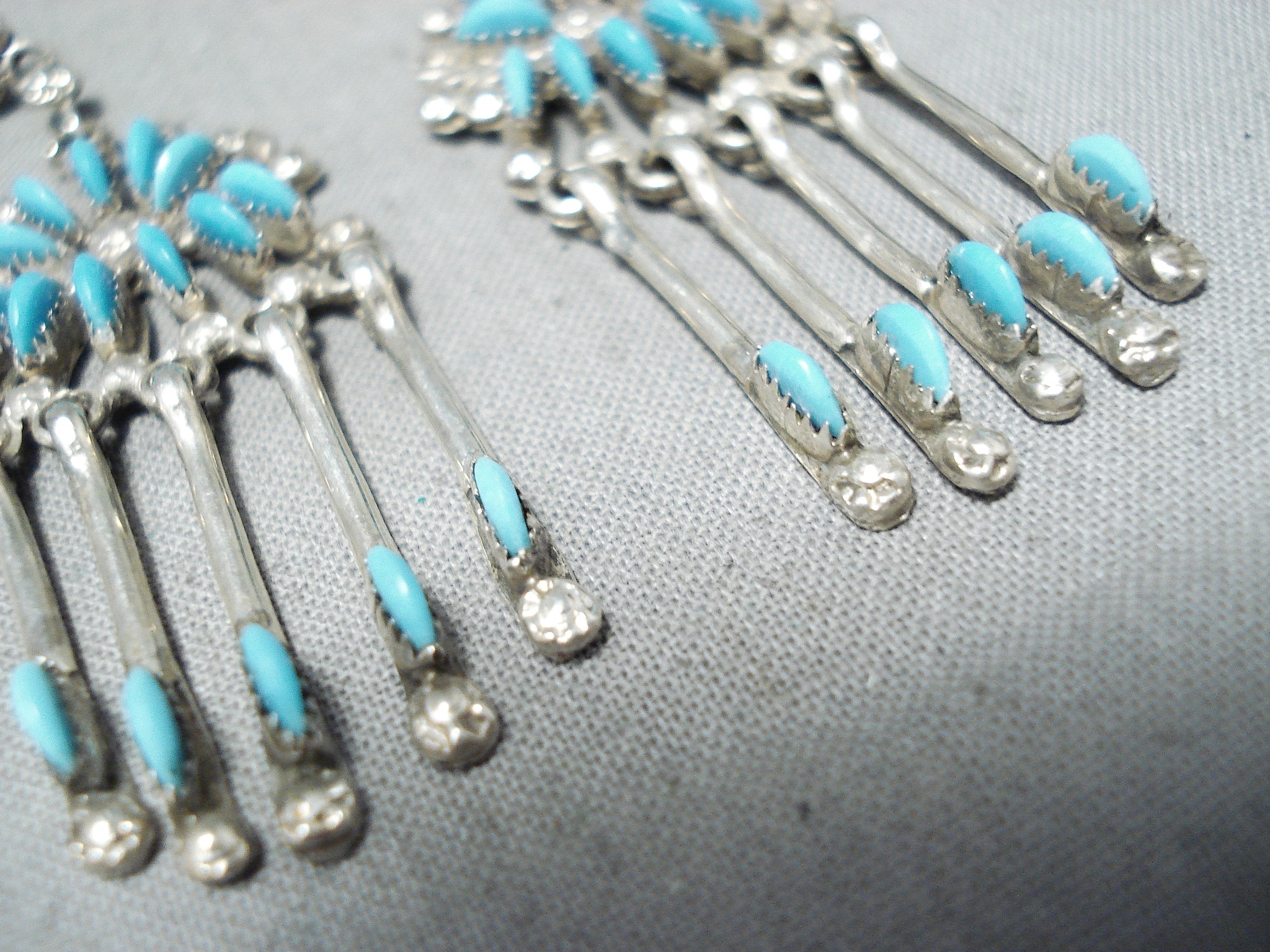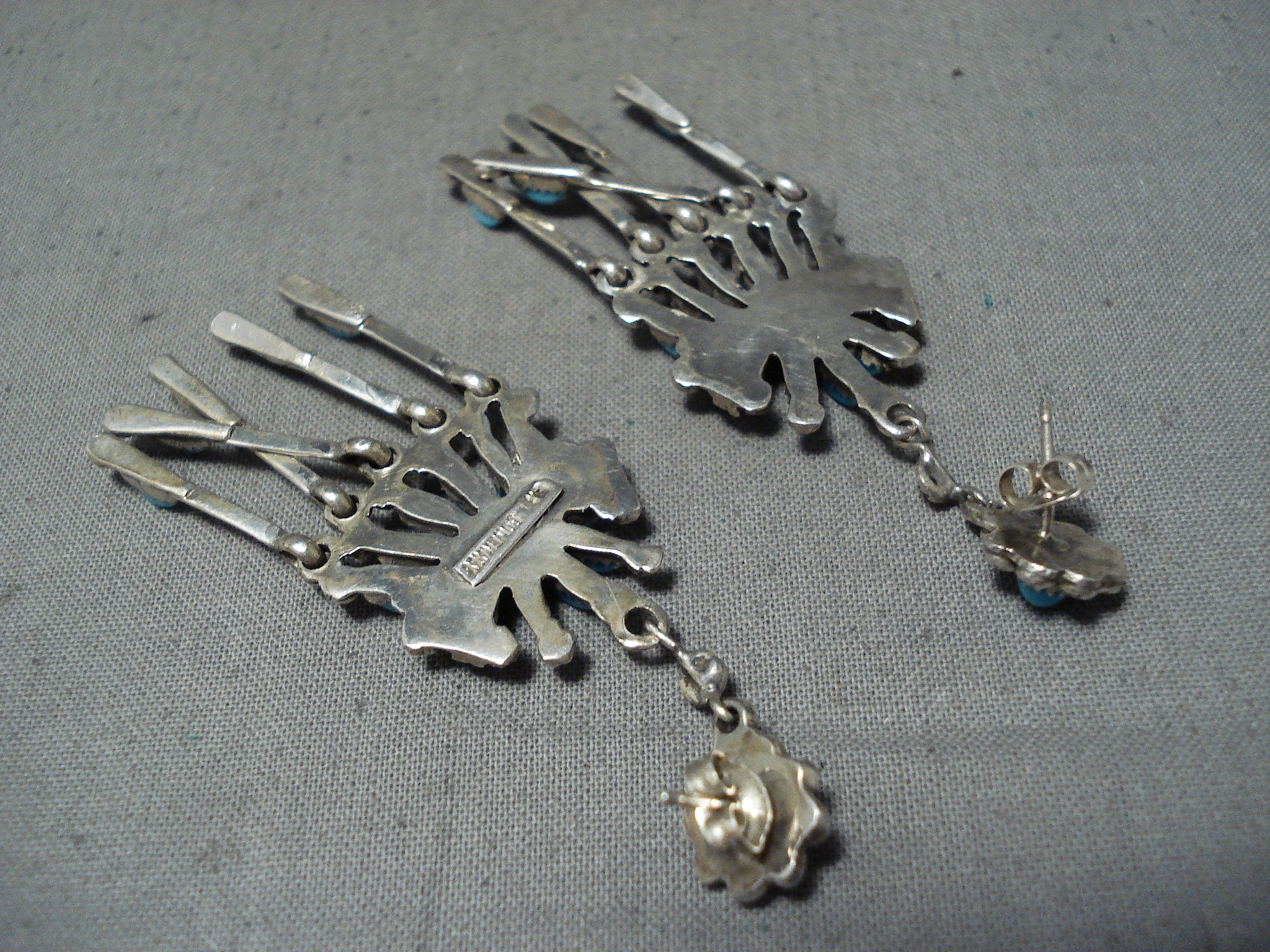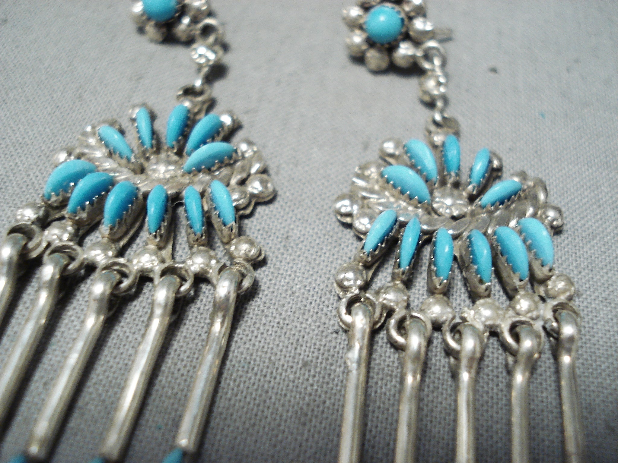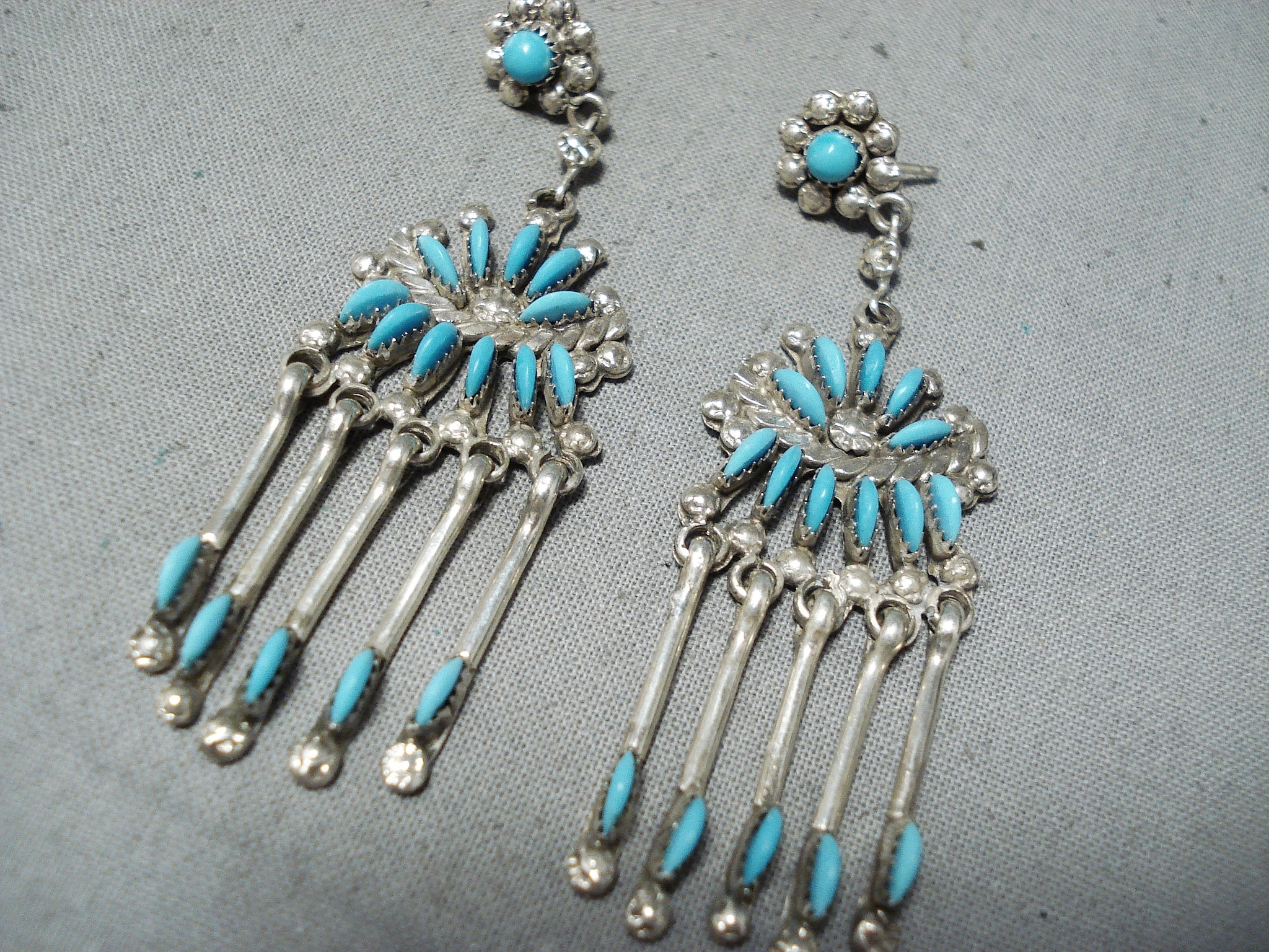 Exquisite Vintage Native American Zuni Sleeping Beauty Turquoise Sterling Silver Earrings