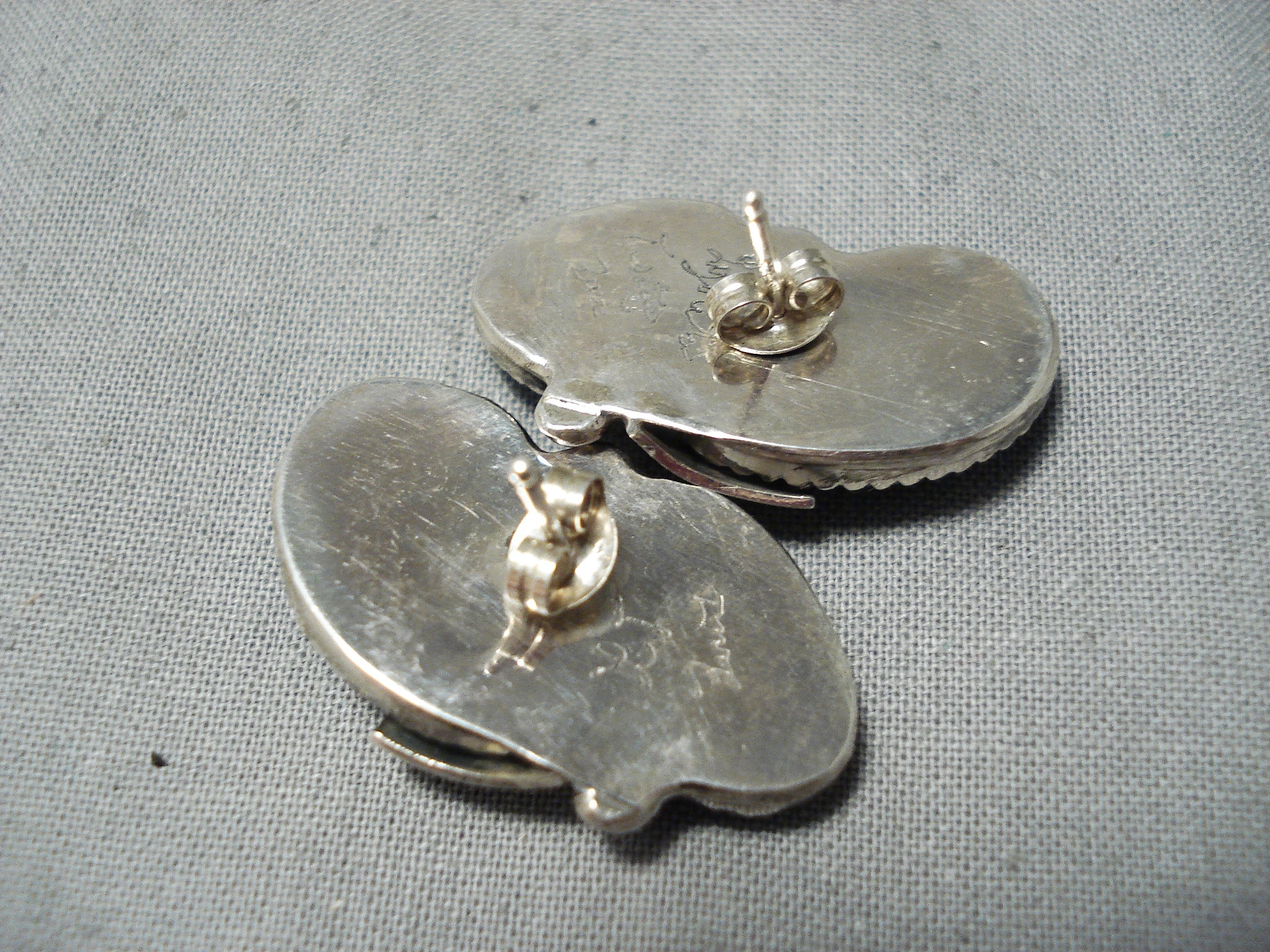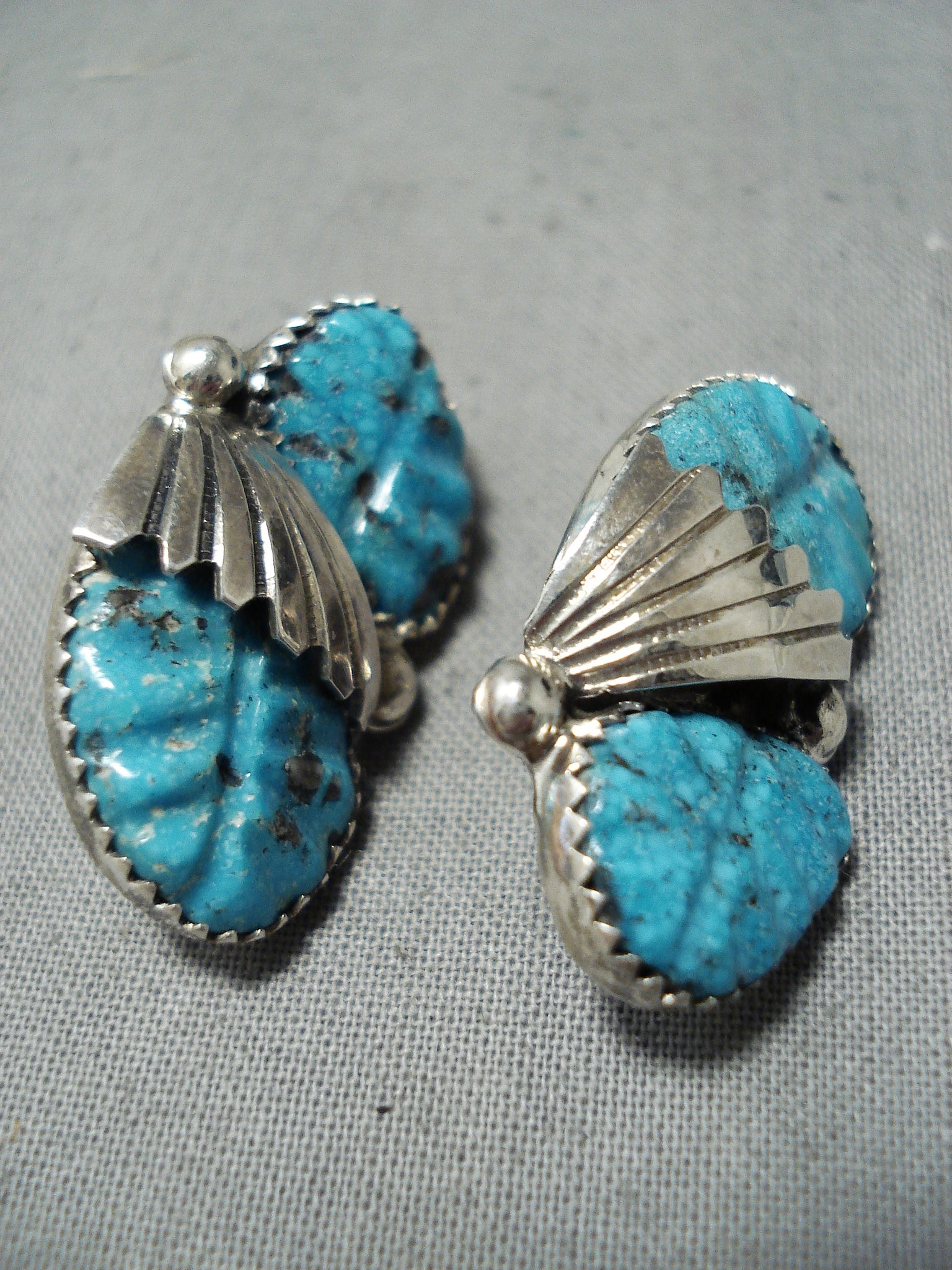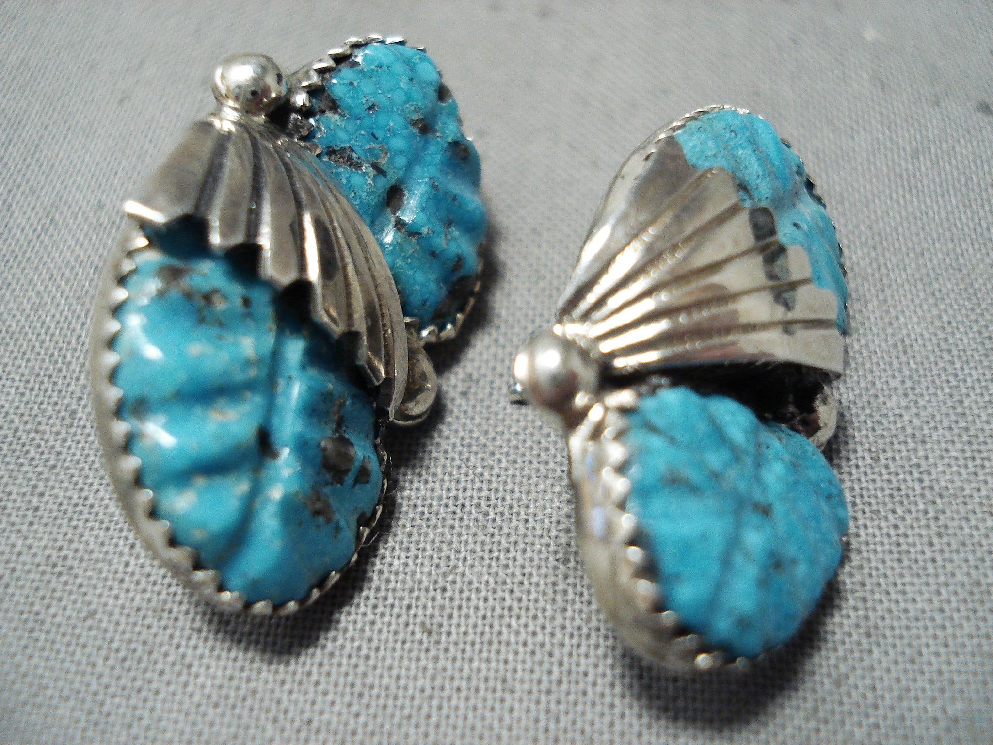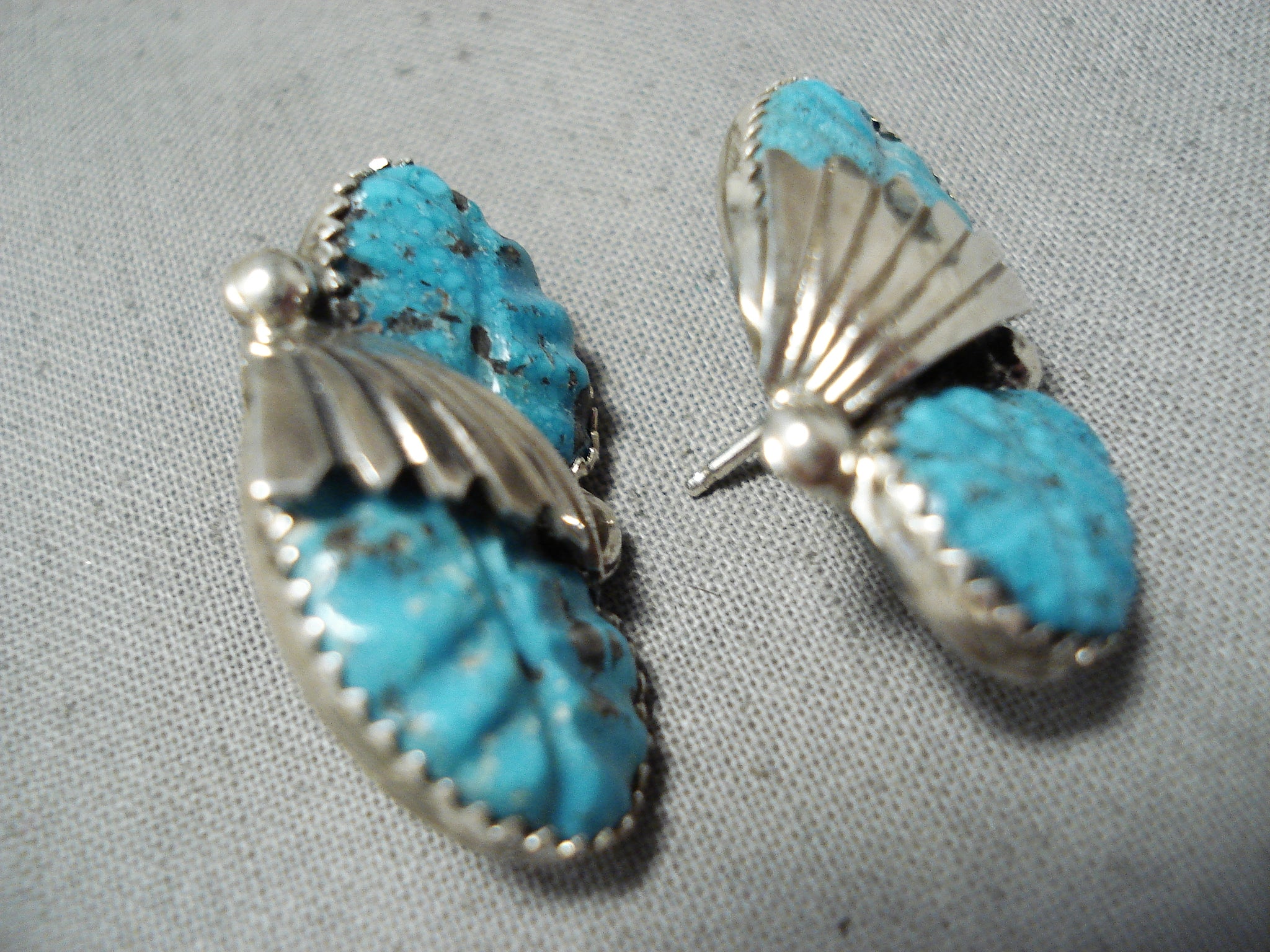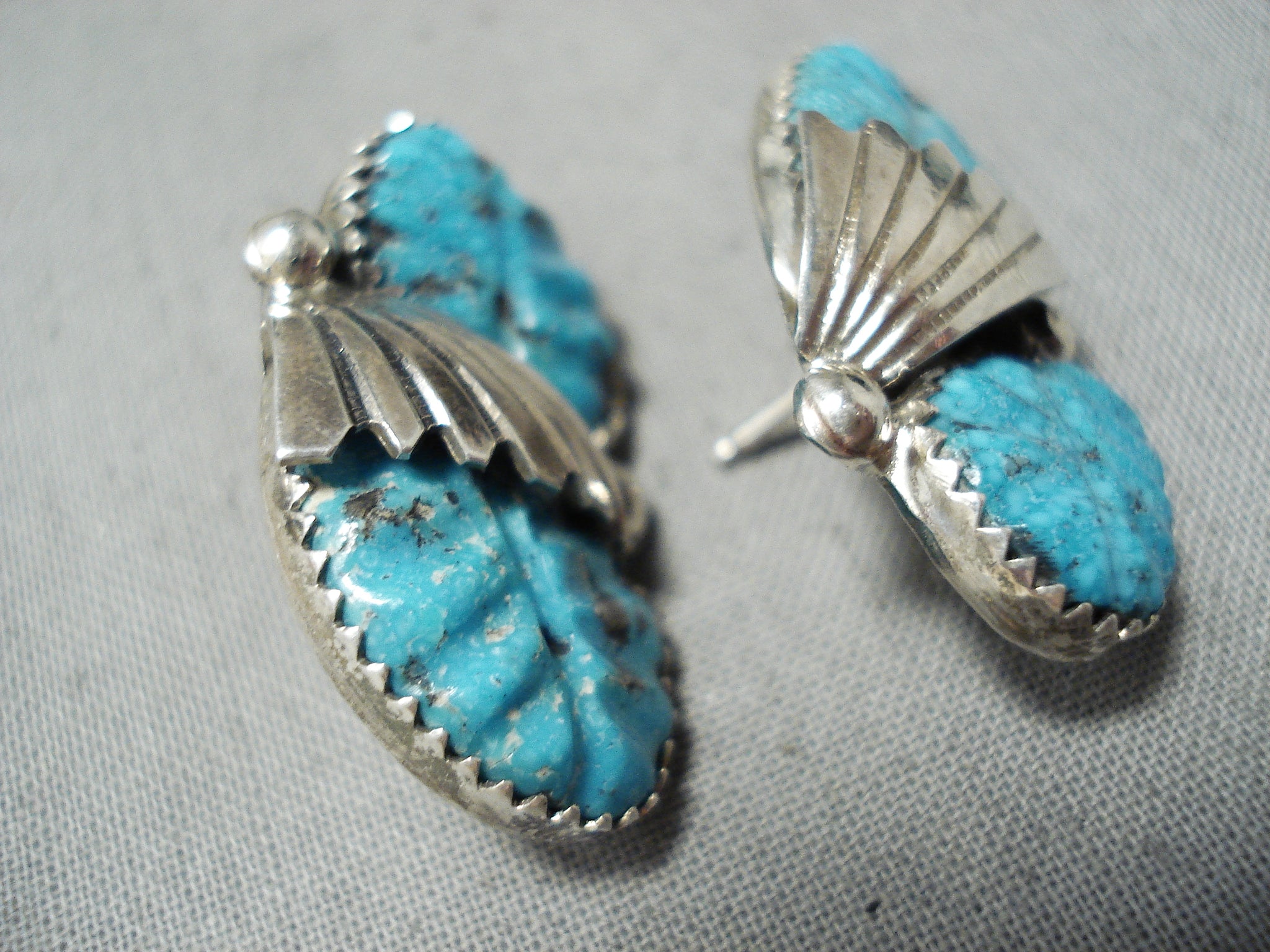 Exquisite Zuni Carved Turquoise Sterling Silver Earrings Native American