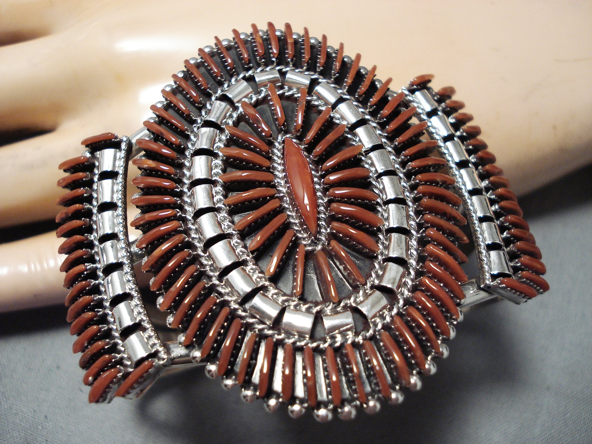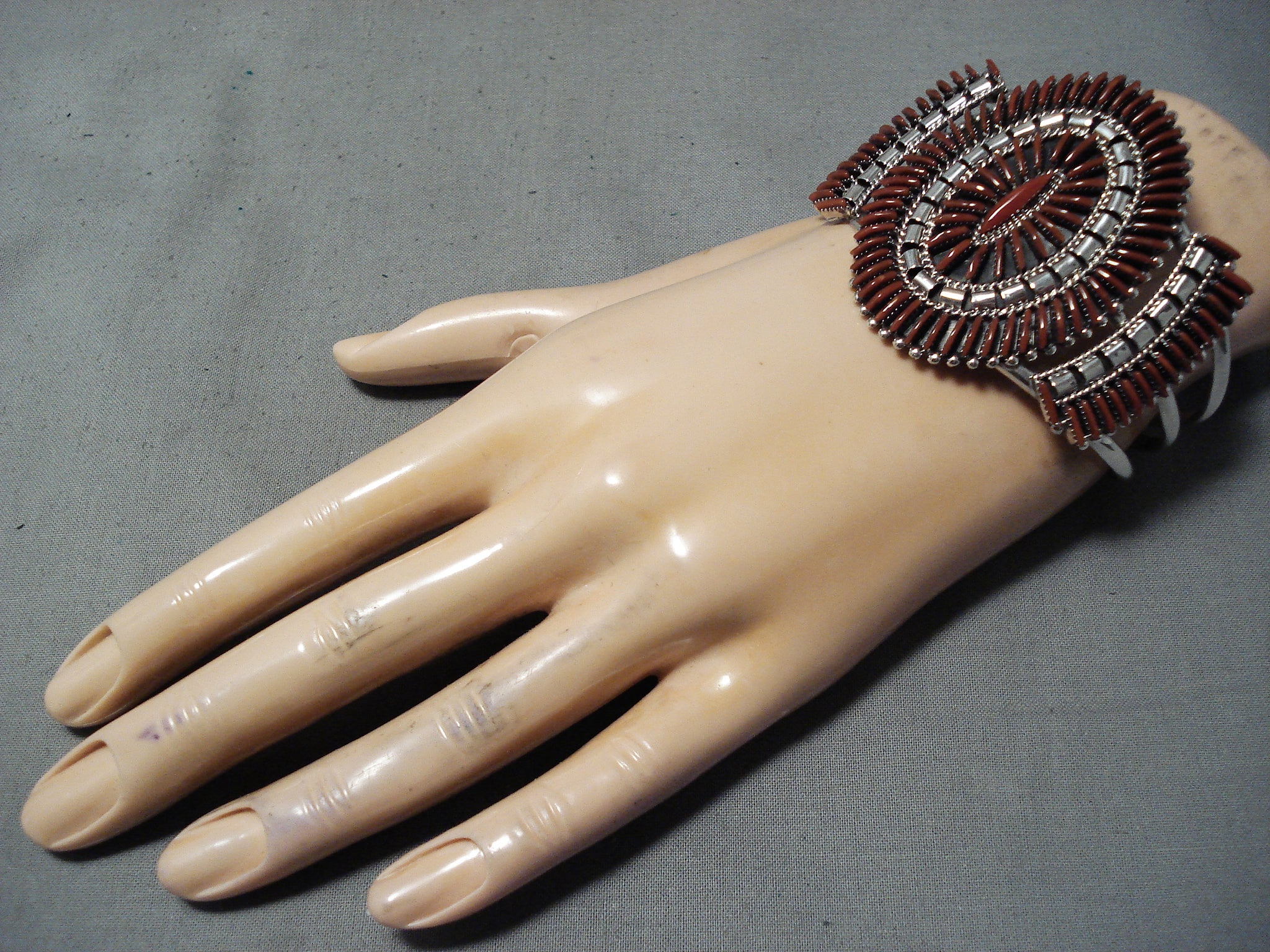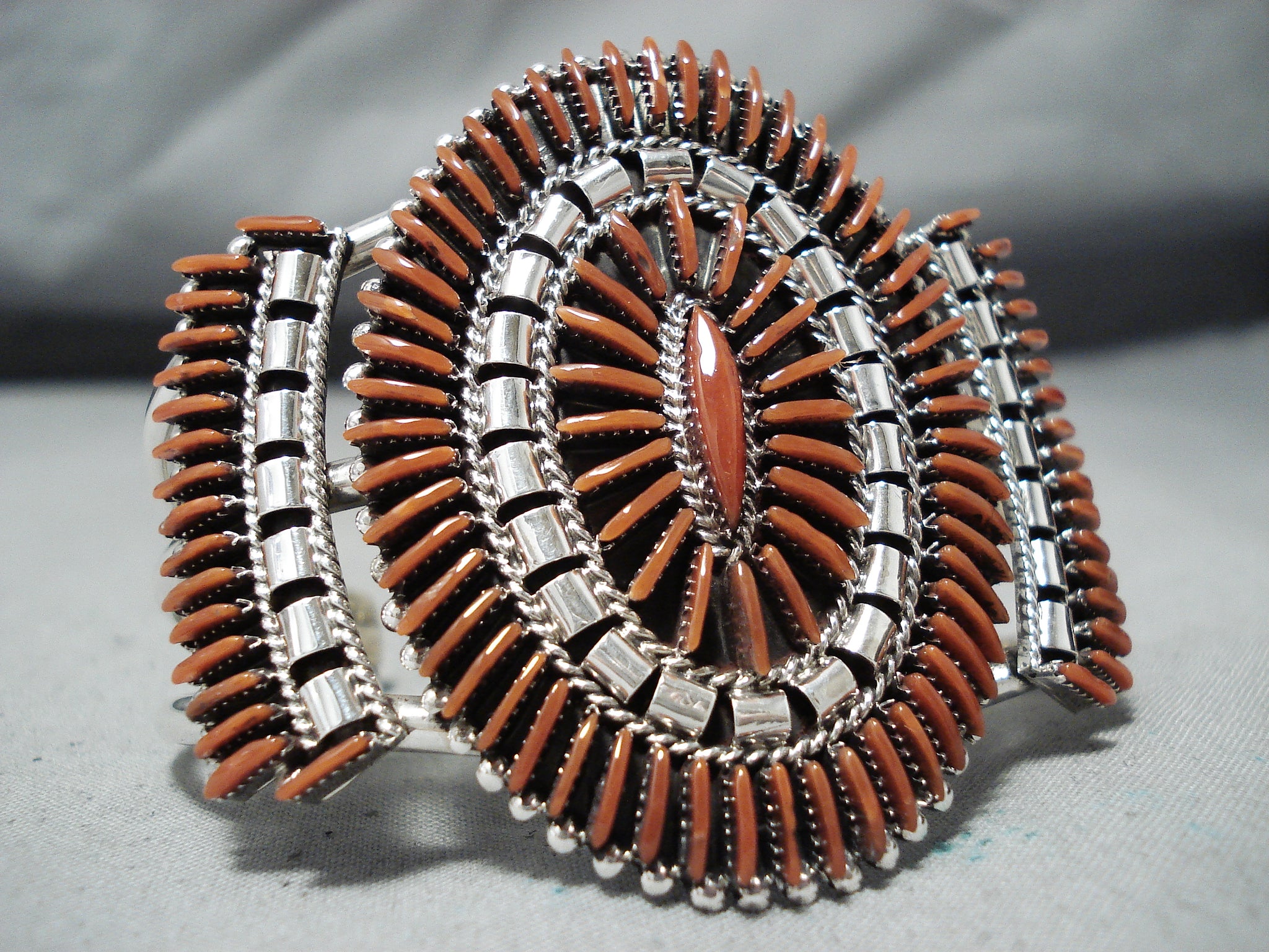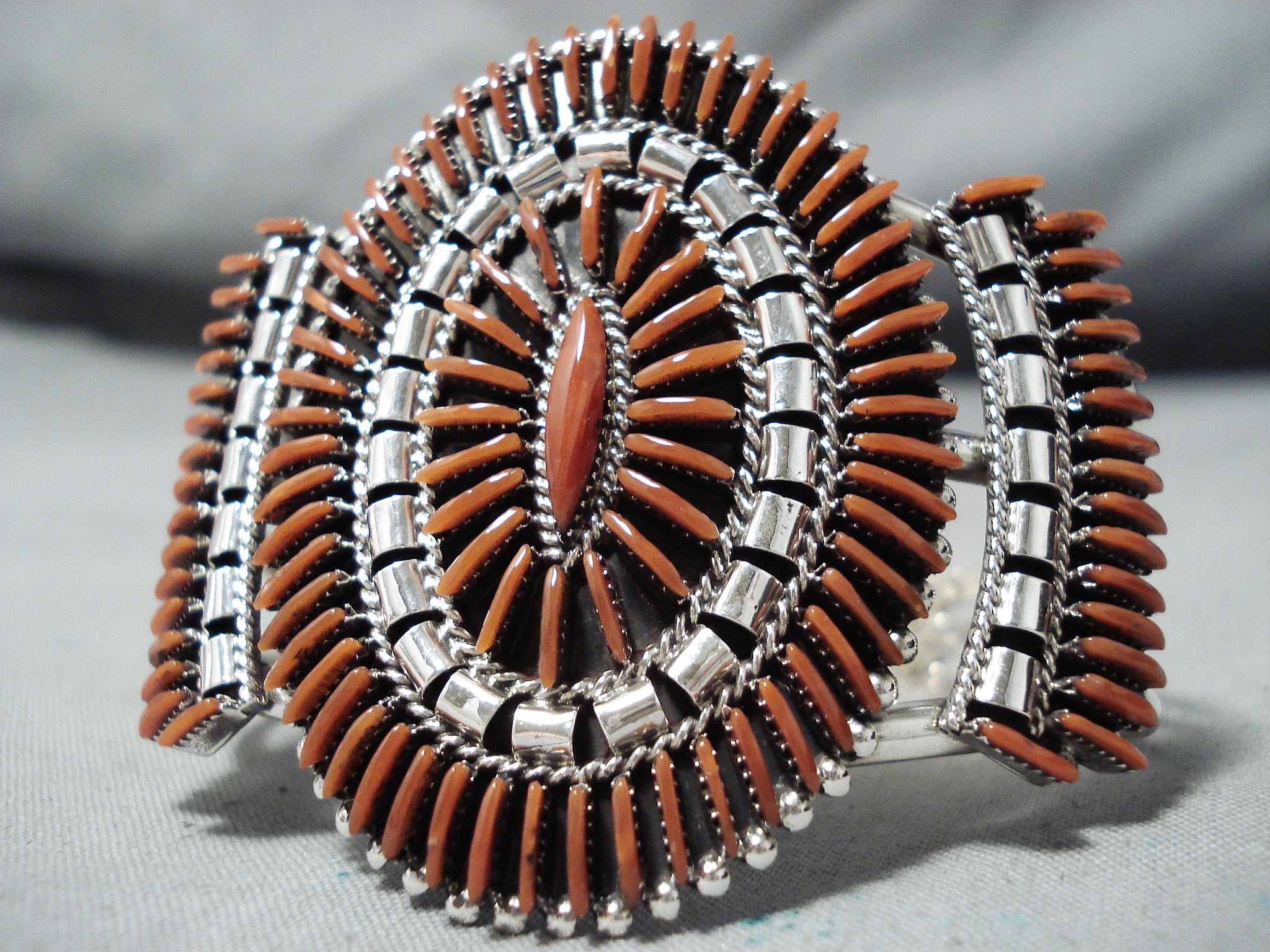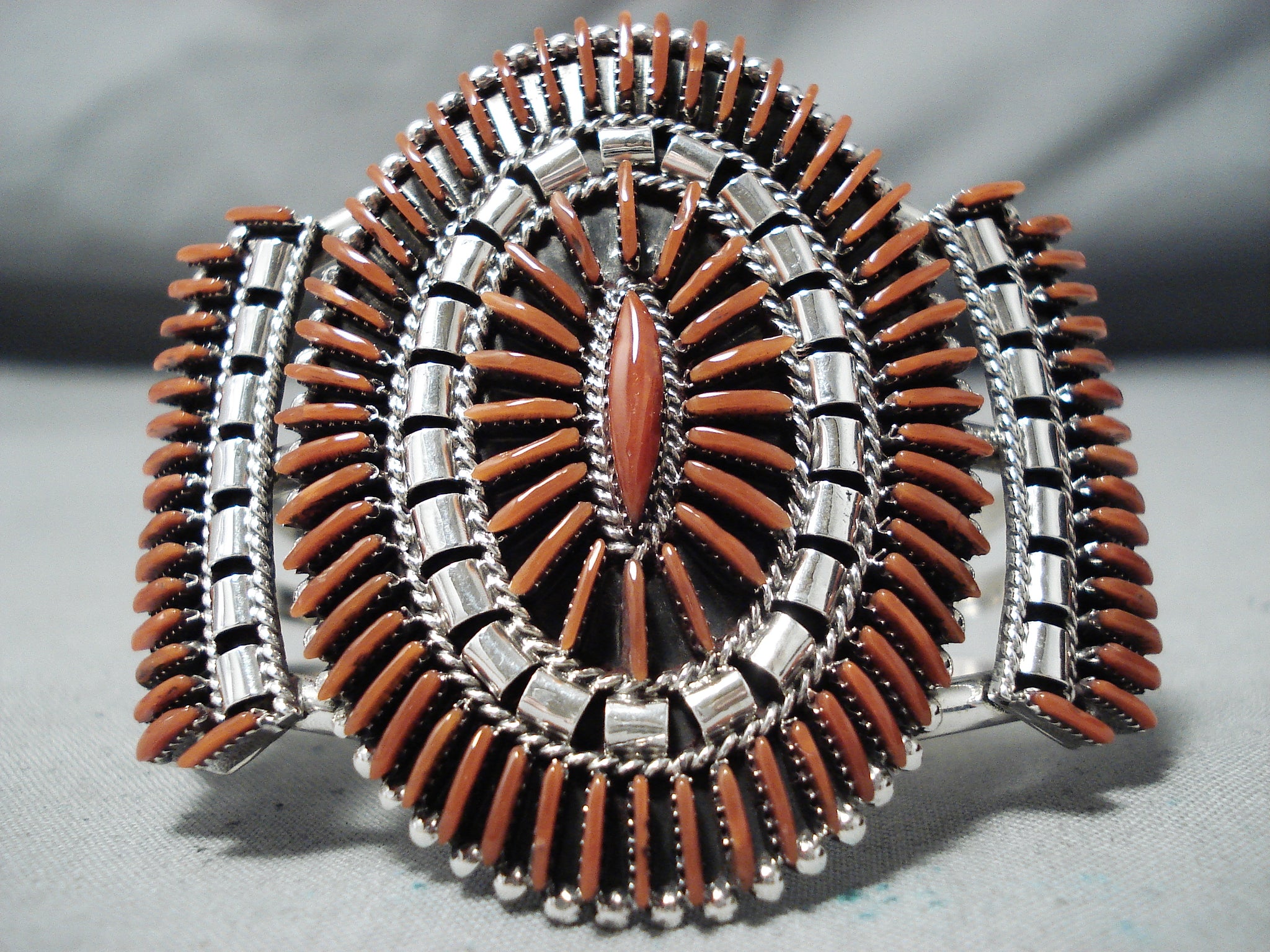 Exquisite Zuni Coral Needlepoint Sterling Silver Bracelet Native American