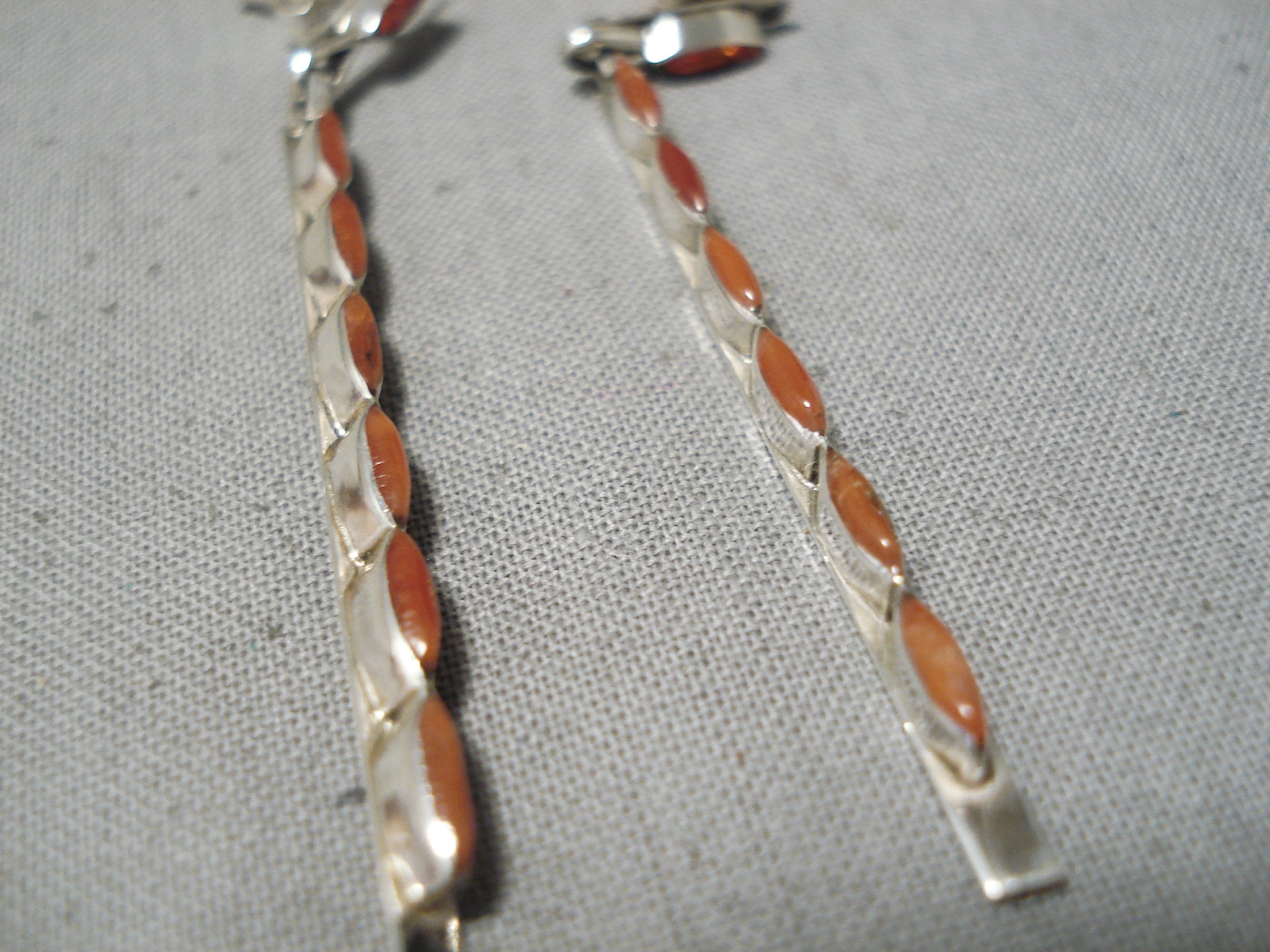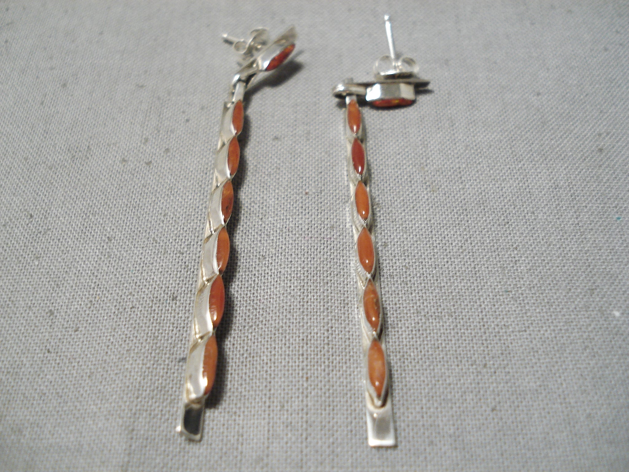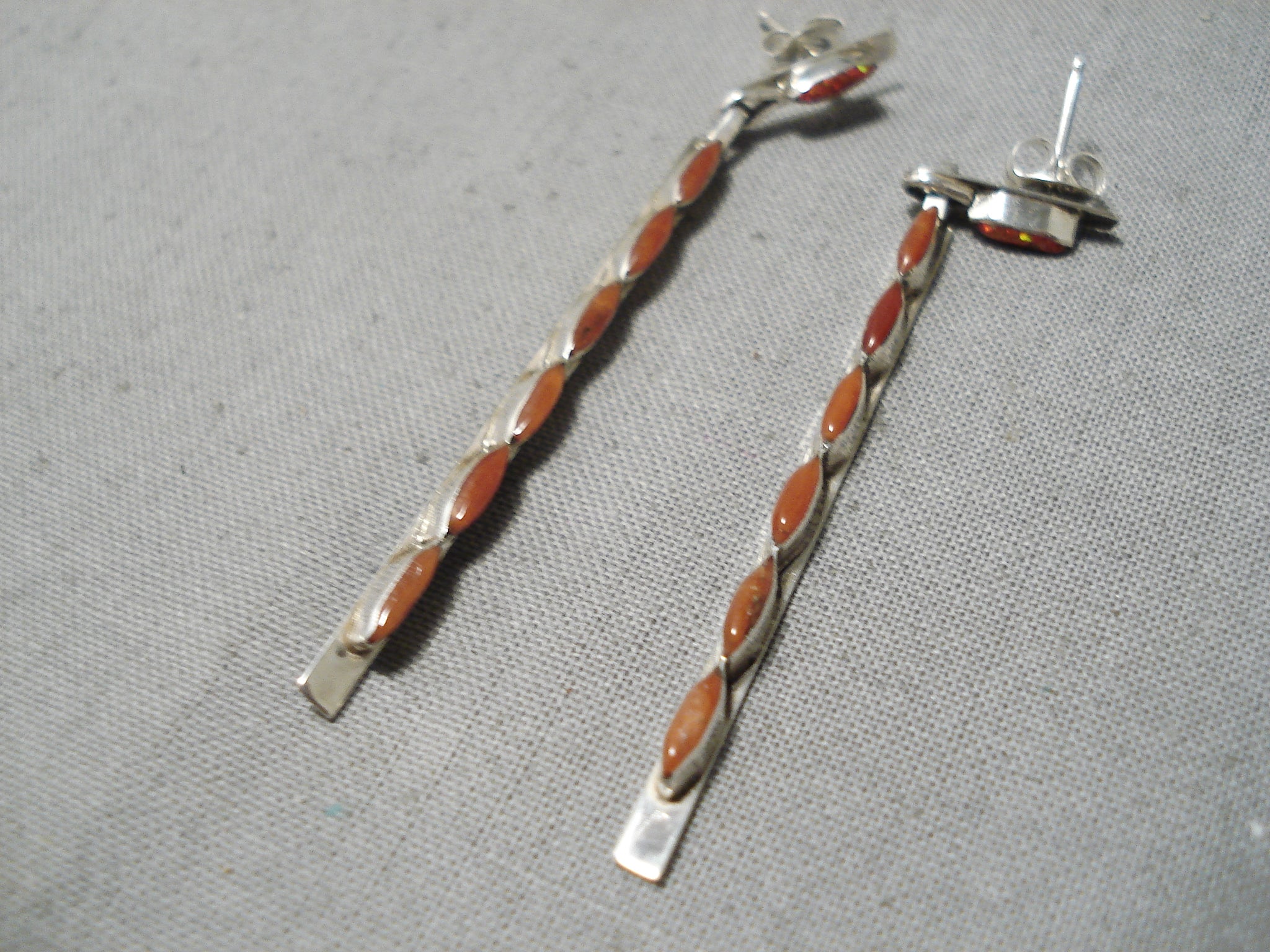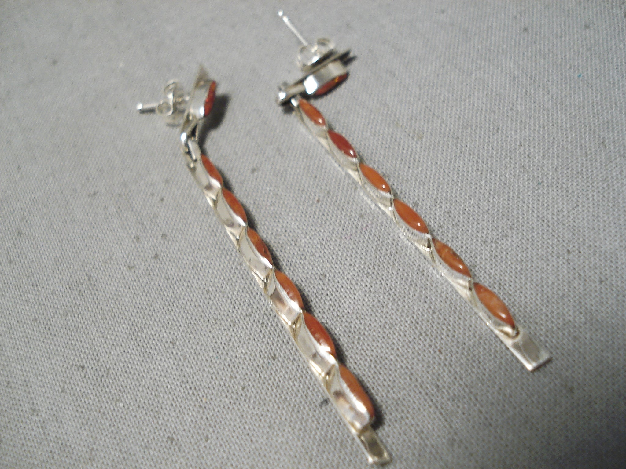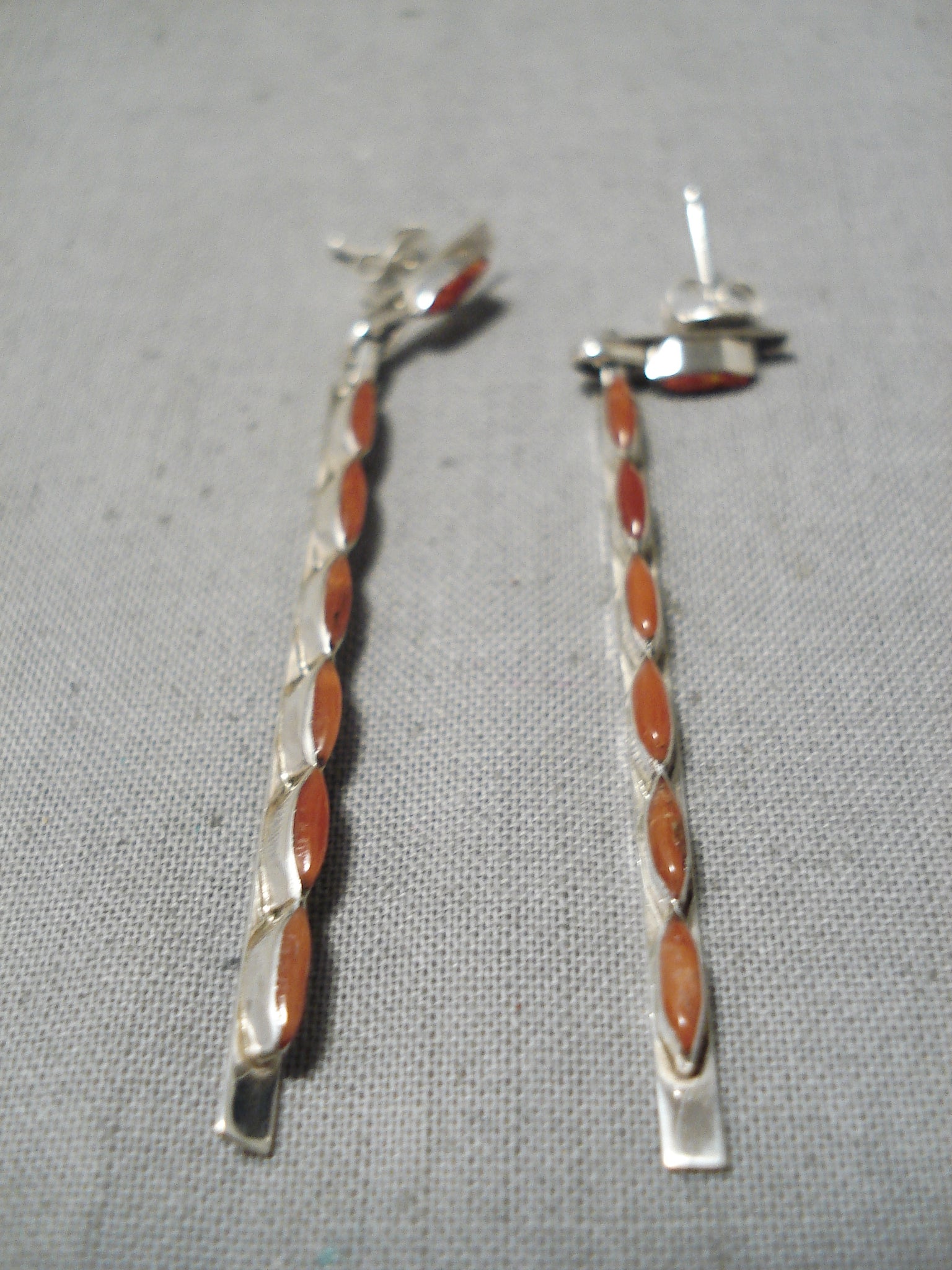 Exquisite Zuni Coral Sterling Silver Earrings Native American