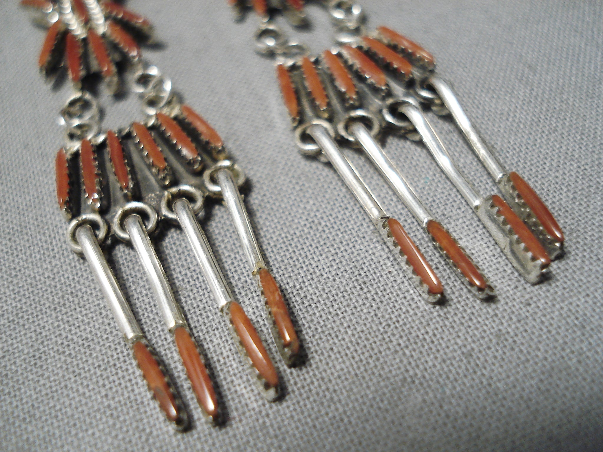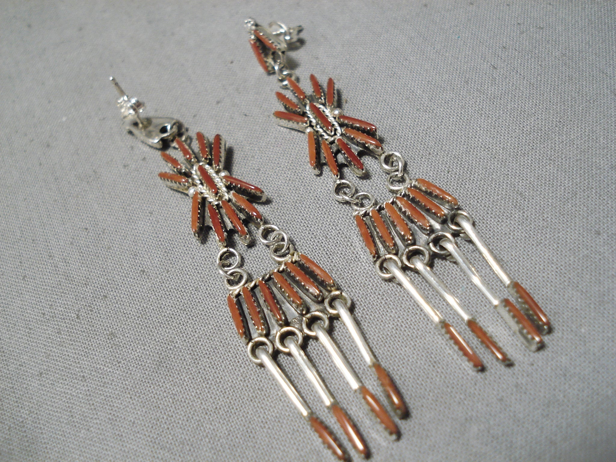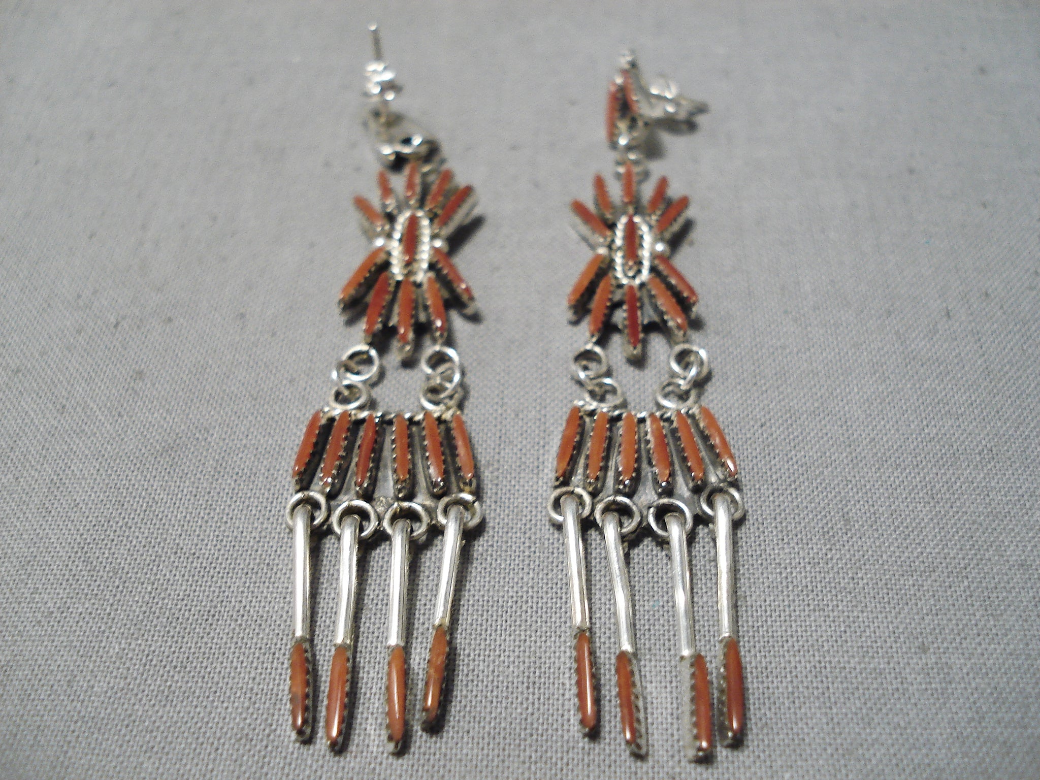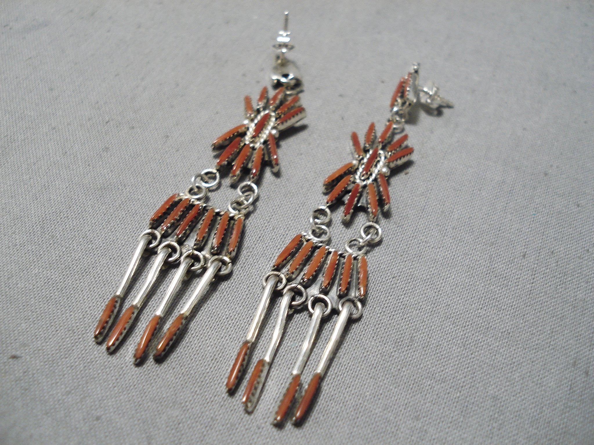 Exquisite Zuni Coral Sterling Silver Earrings Native American