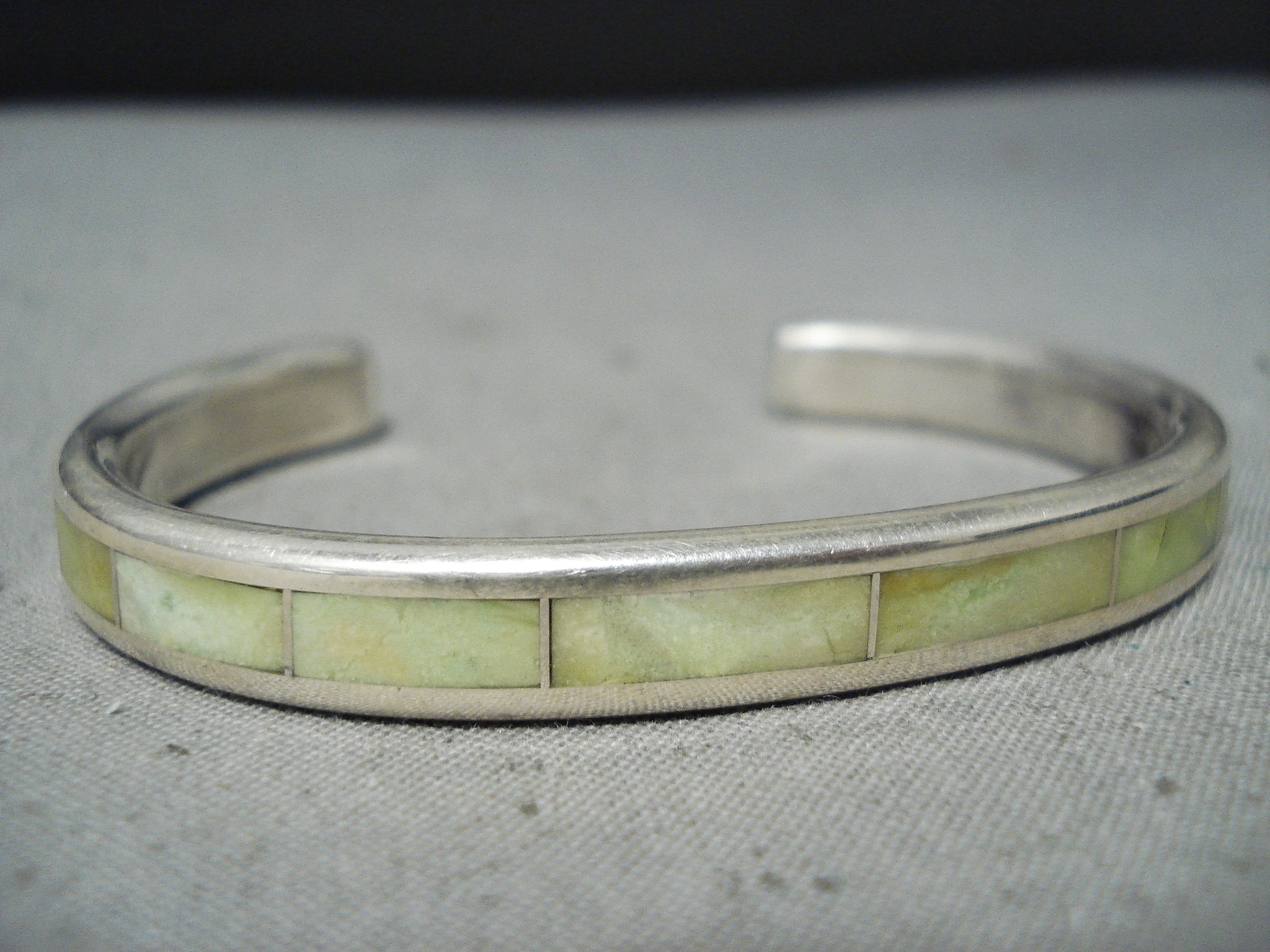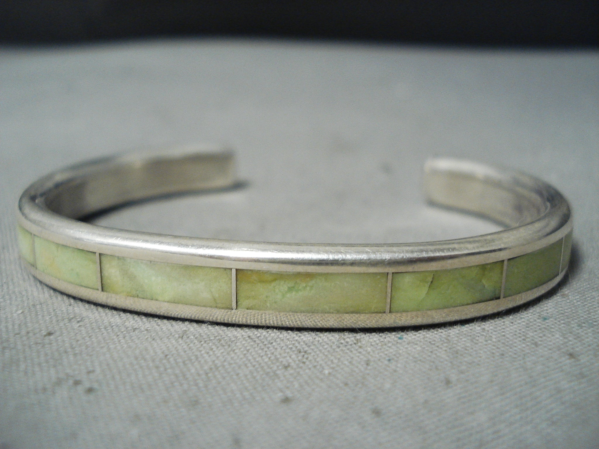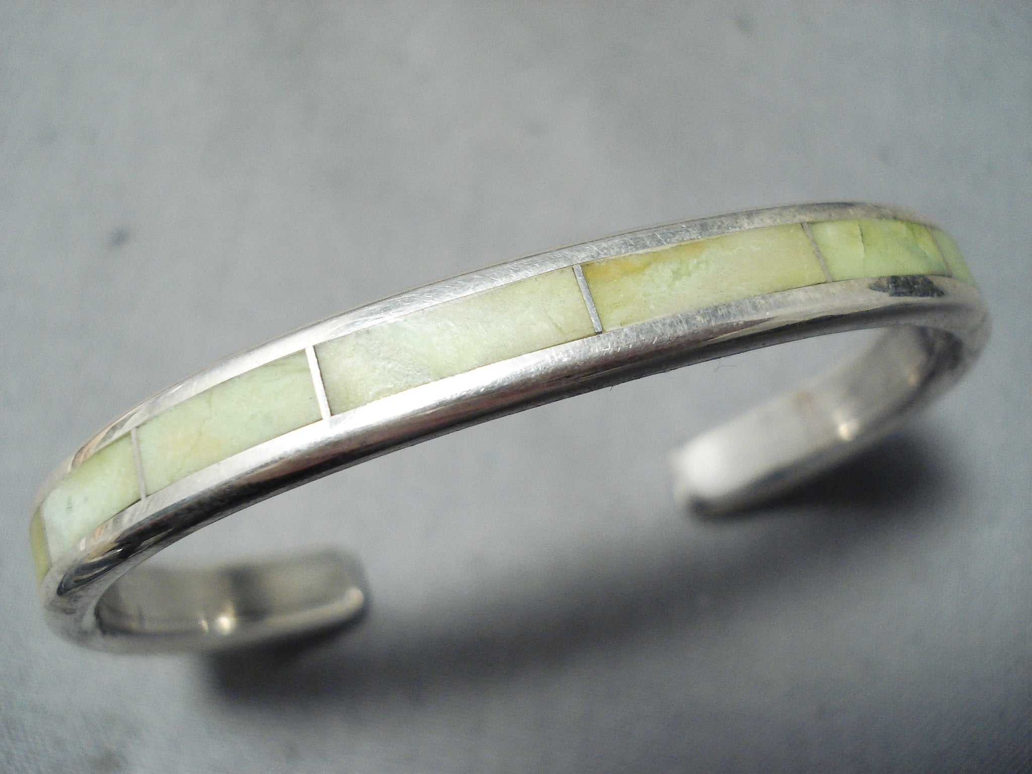Exquisite Zuni Gaspeite Sterling Silver Bracelet Native American