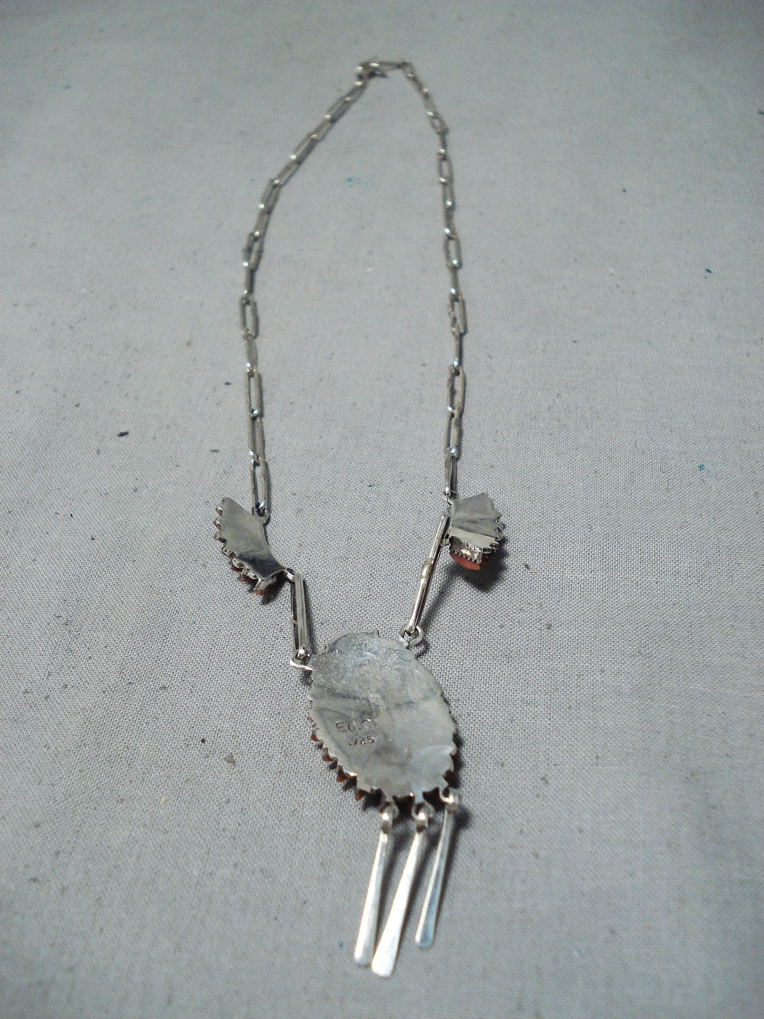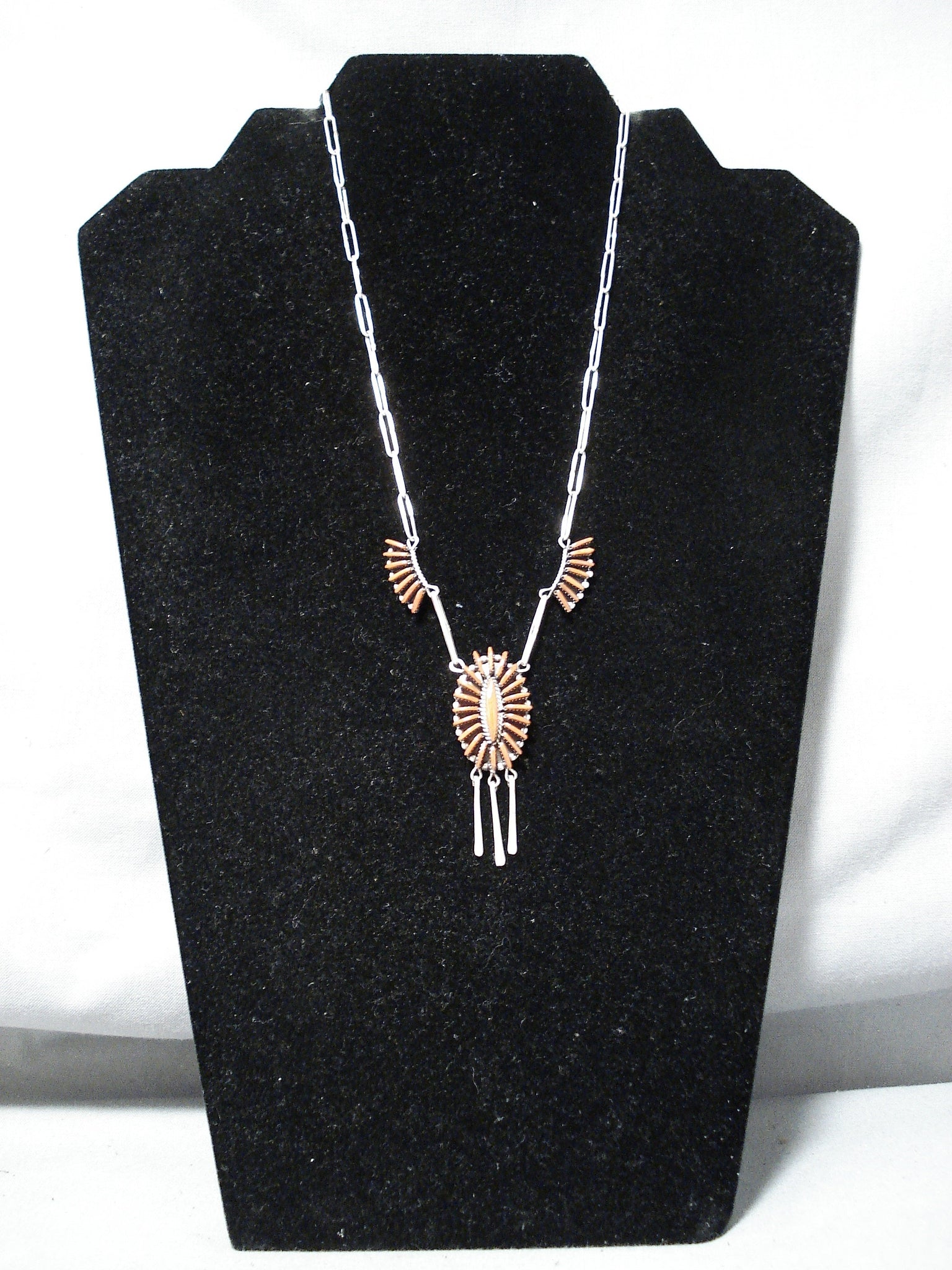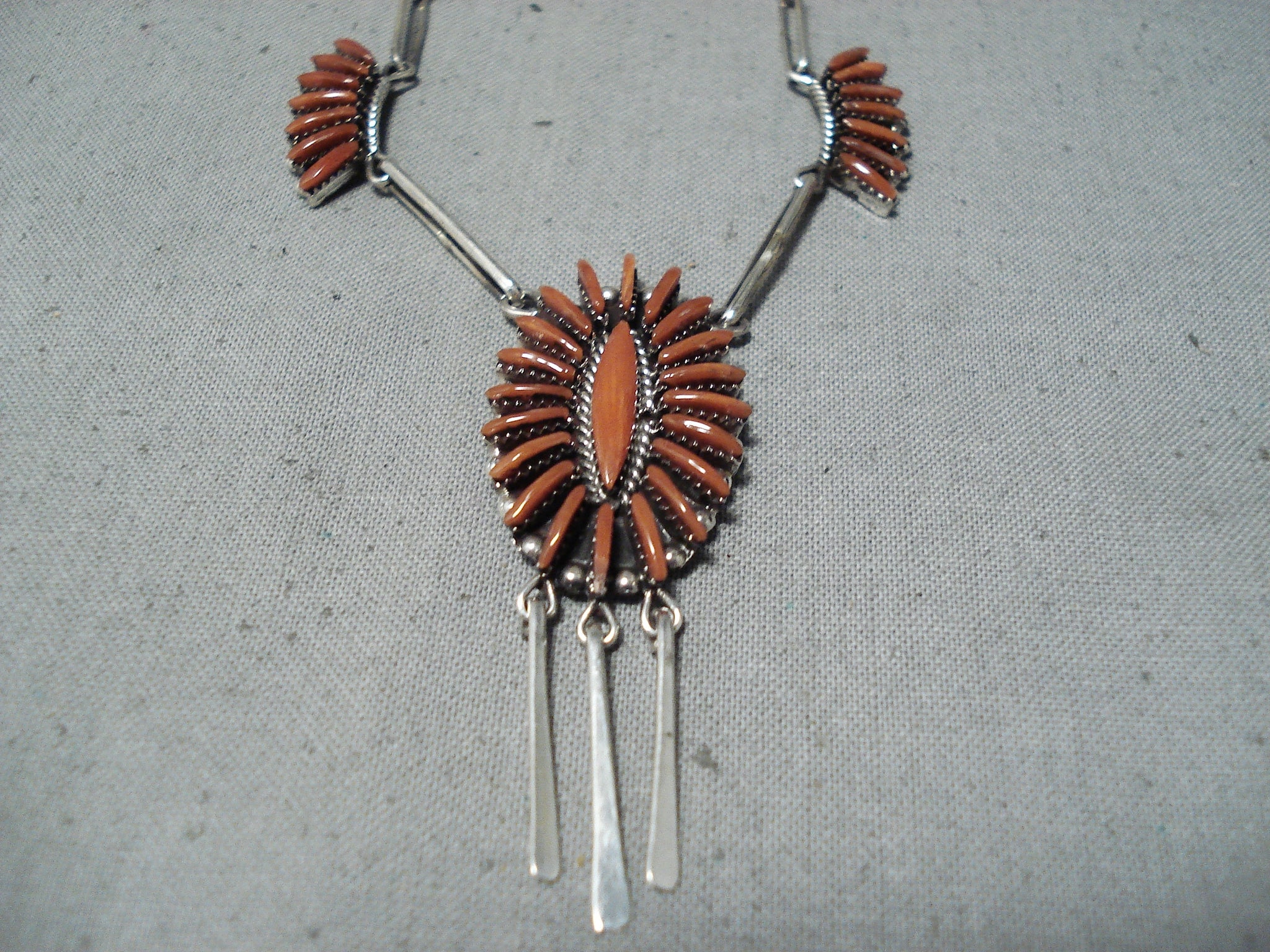 Exquisite Zuni Native American Coral Cluster Sterling Silver Necklace