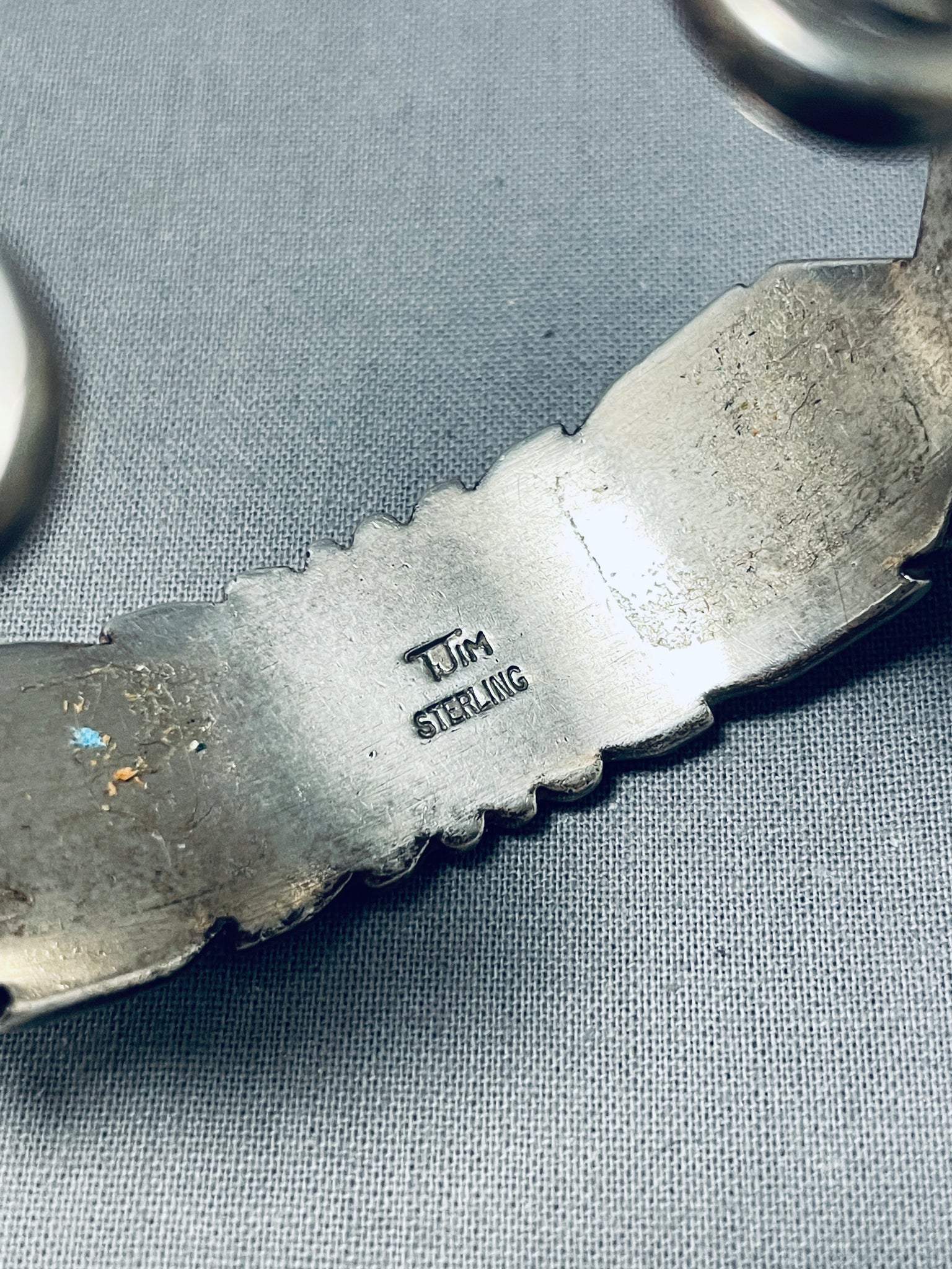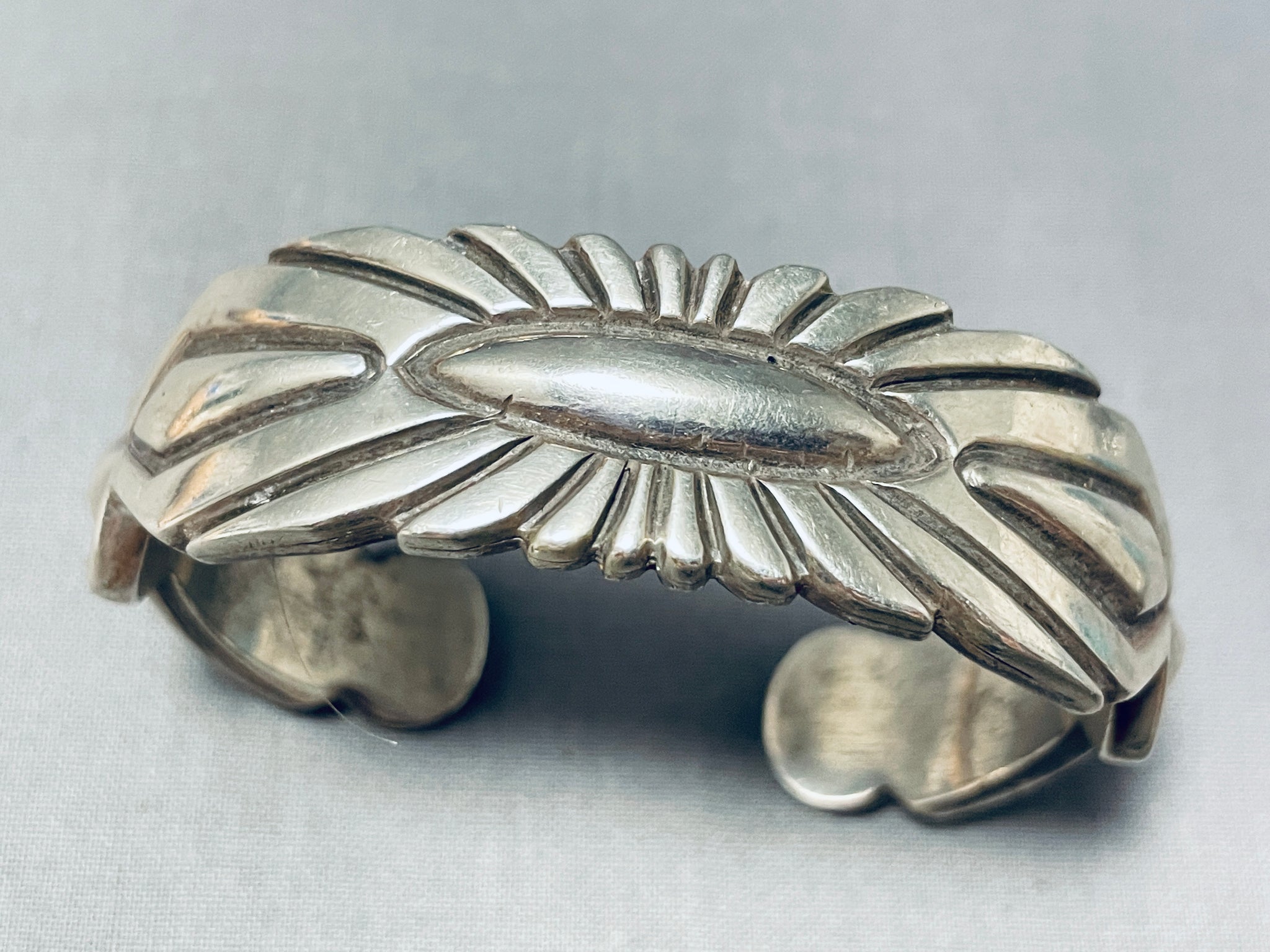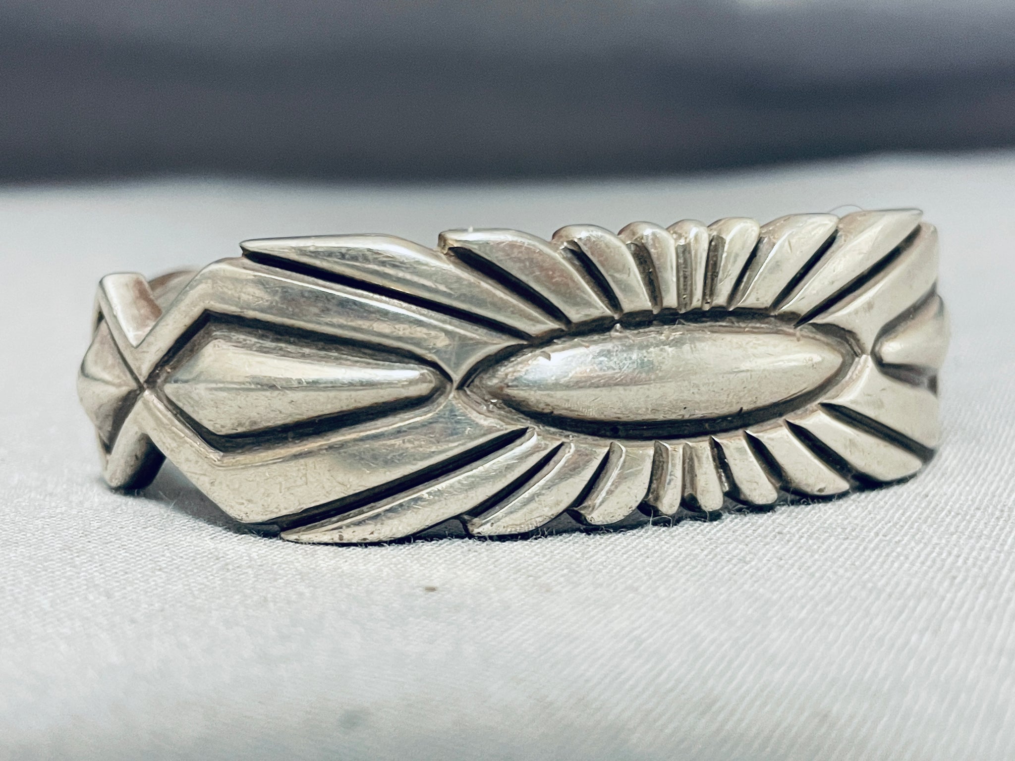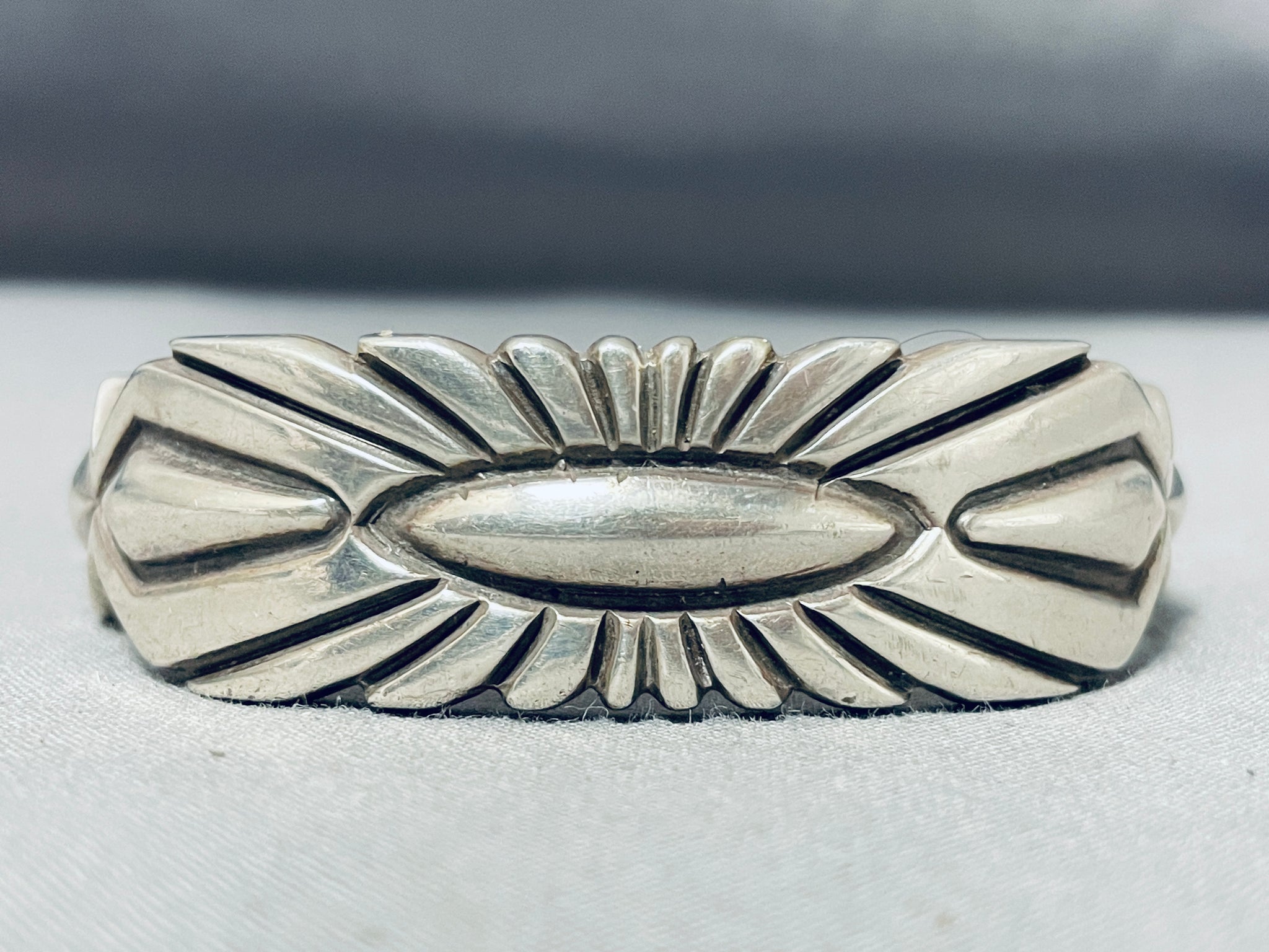 Extra Thick Vintage Native American Navajo Hand Tooled Sterling Silver Bracelet
