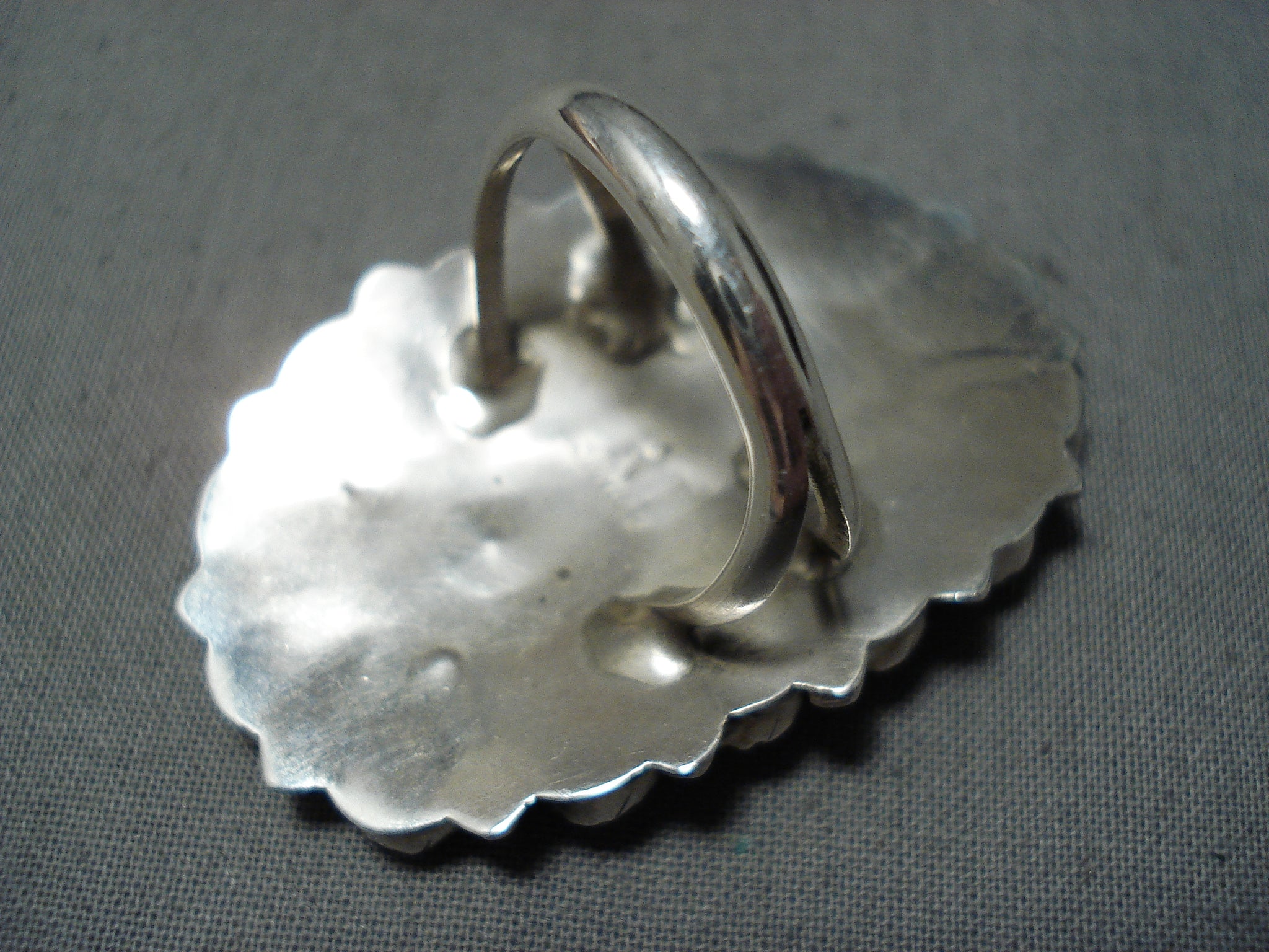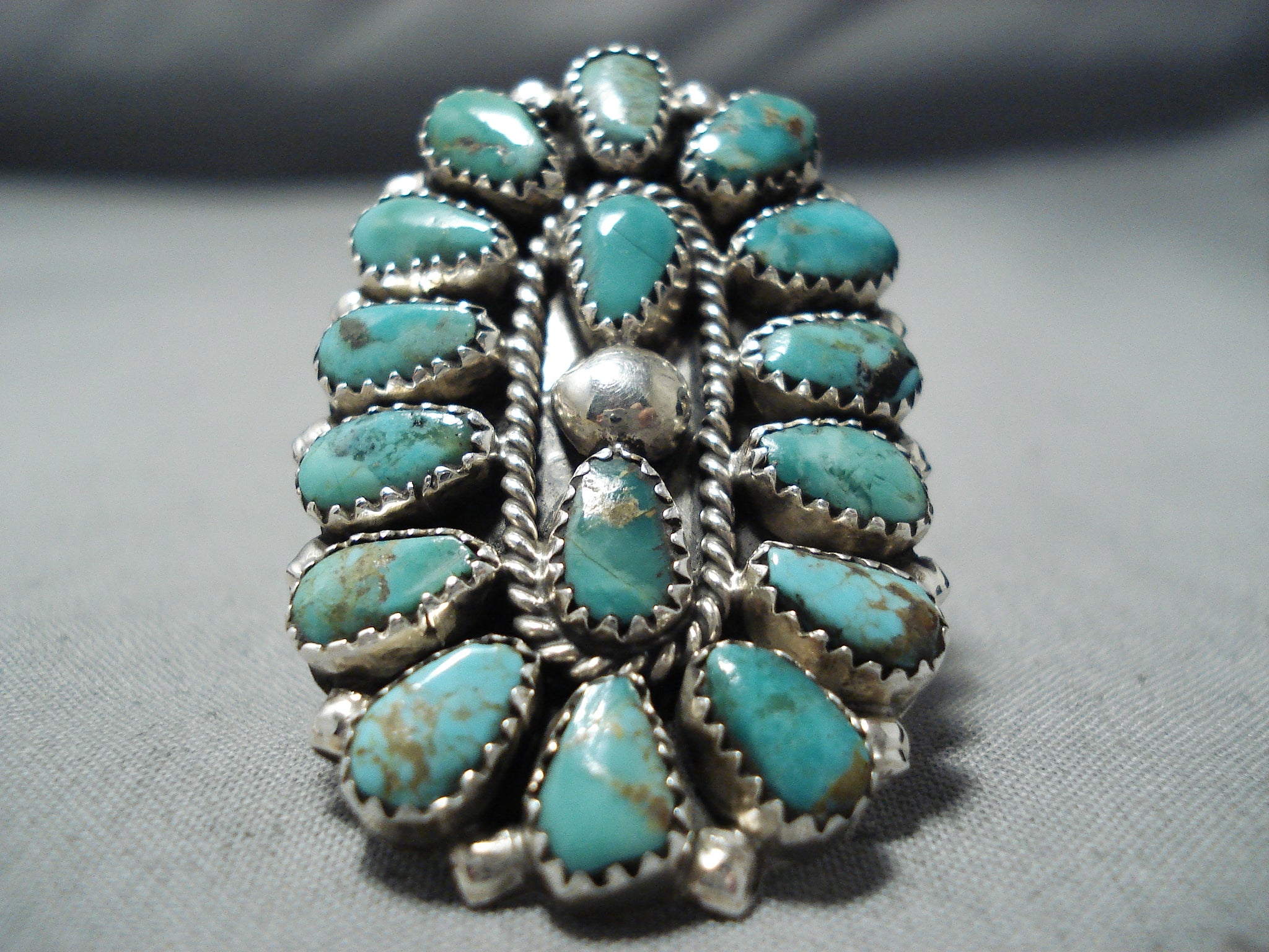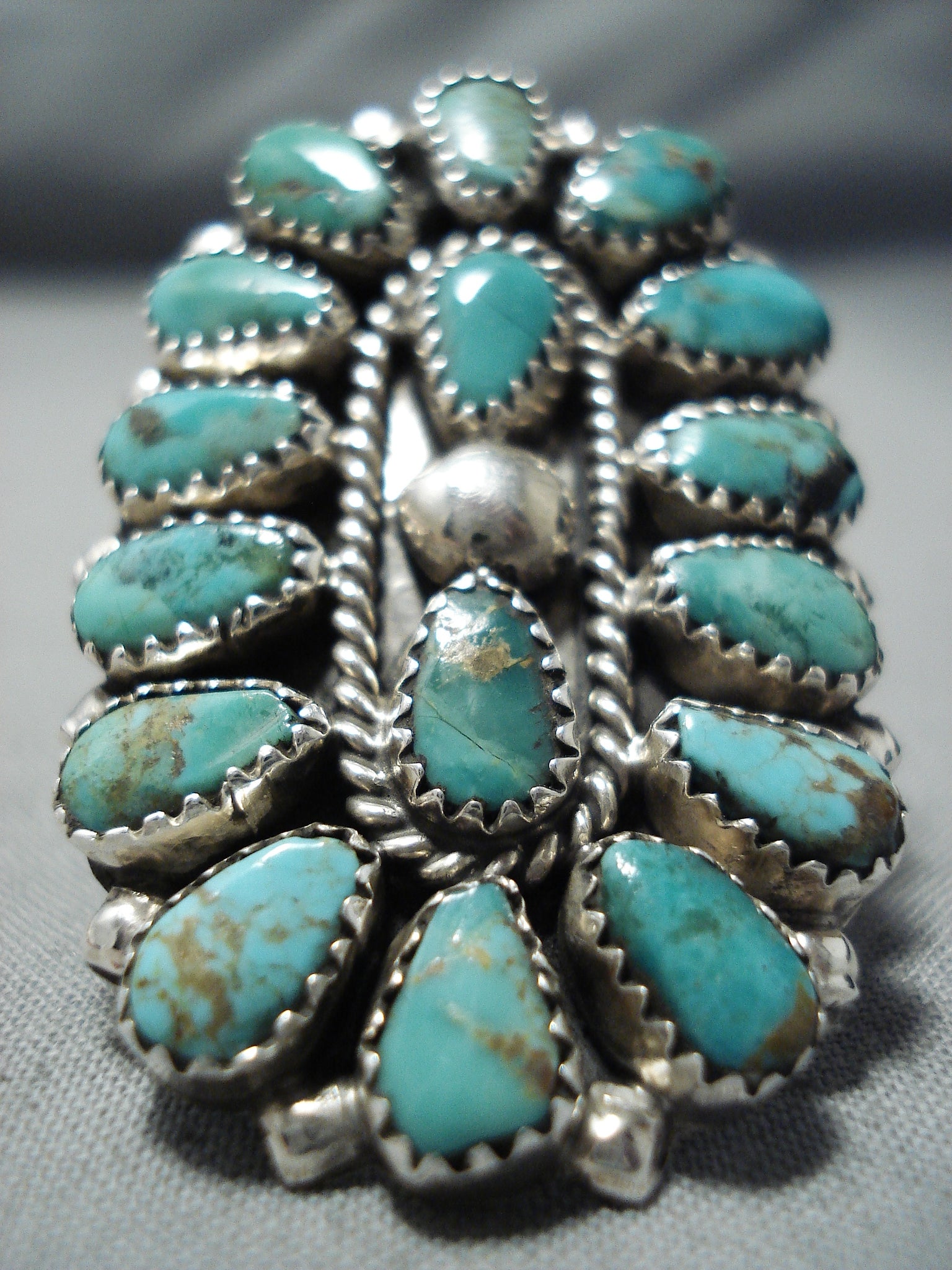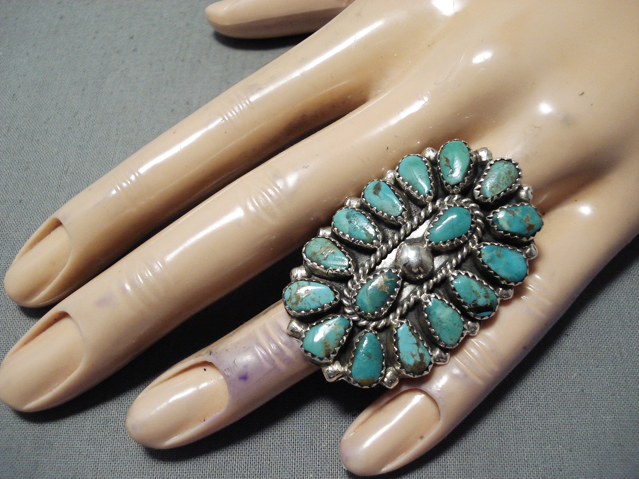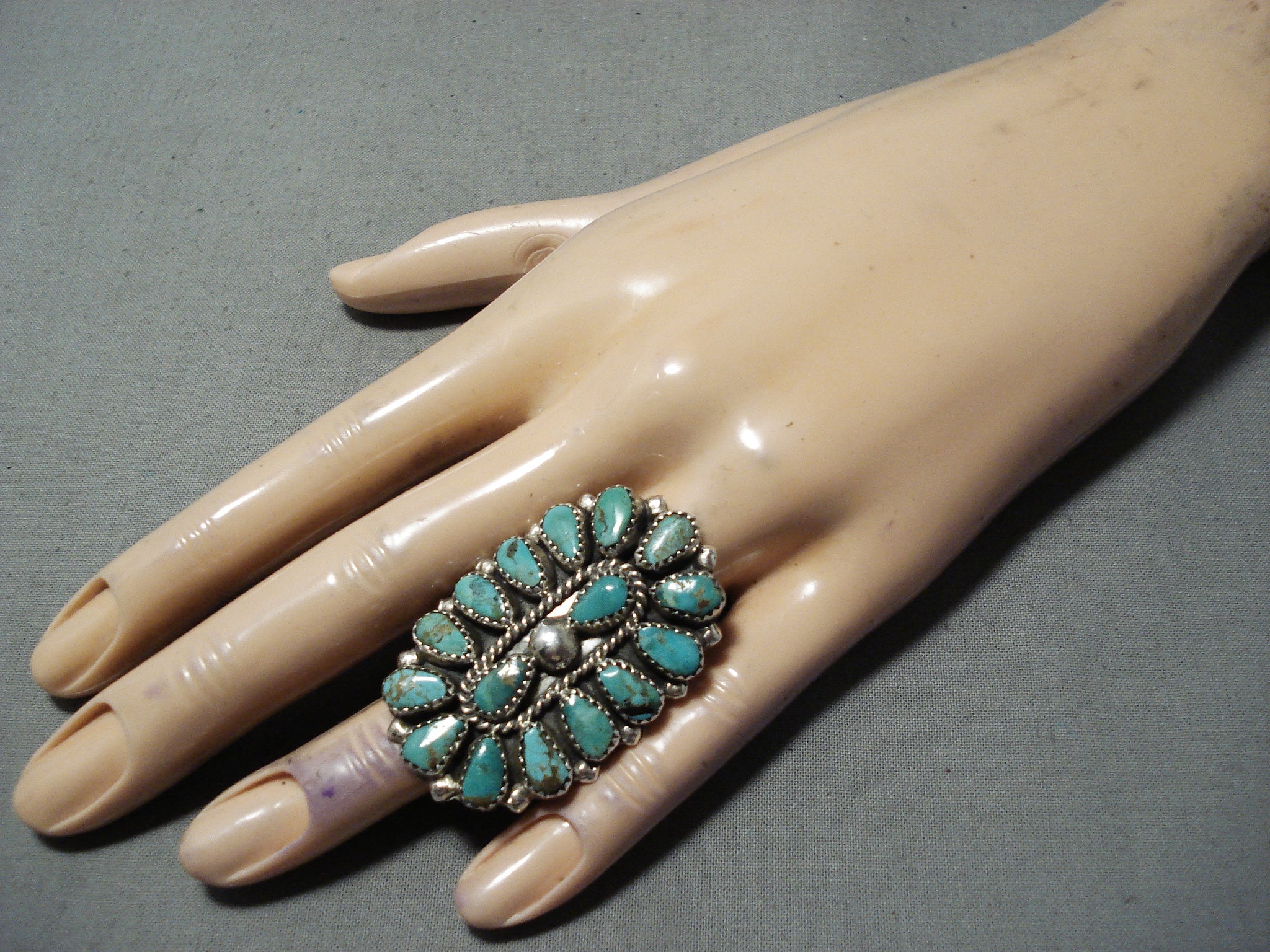 Extraordinary Native American Navajo Green Turquoise Cluster Sterling Silver Ring