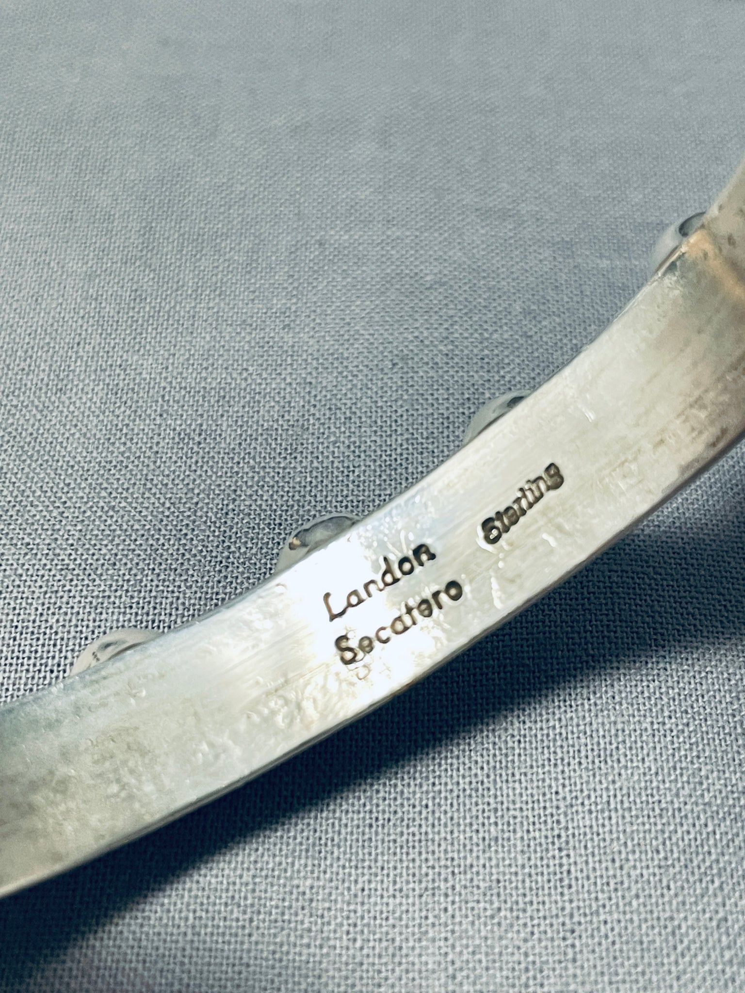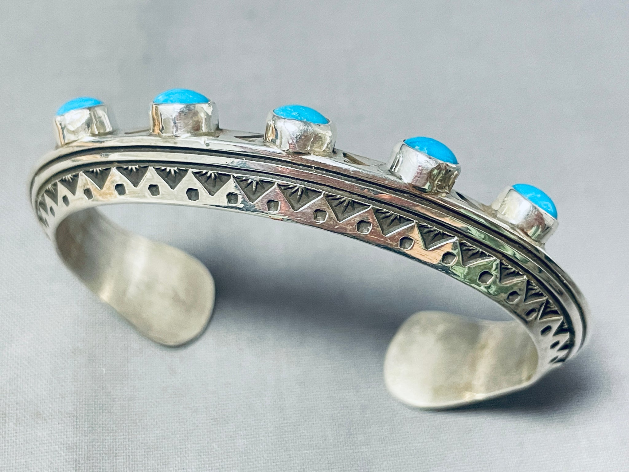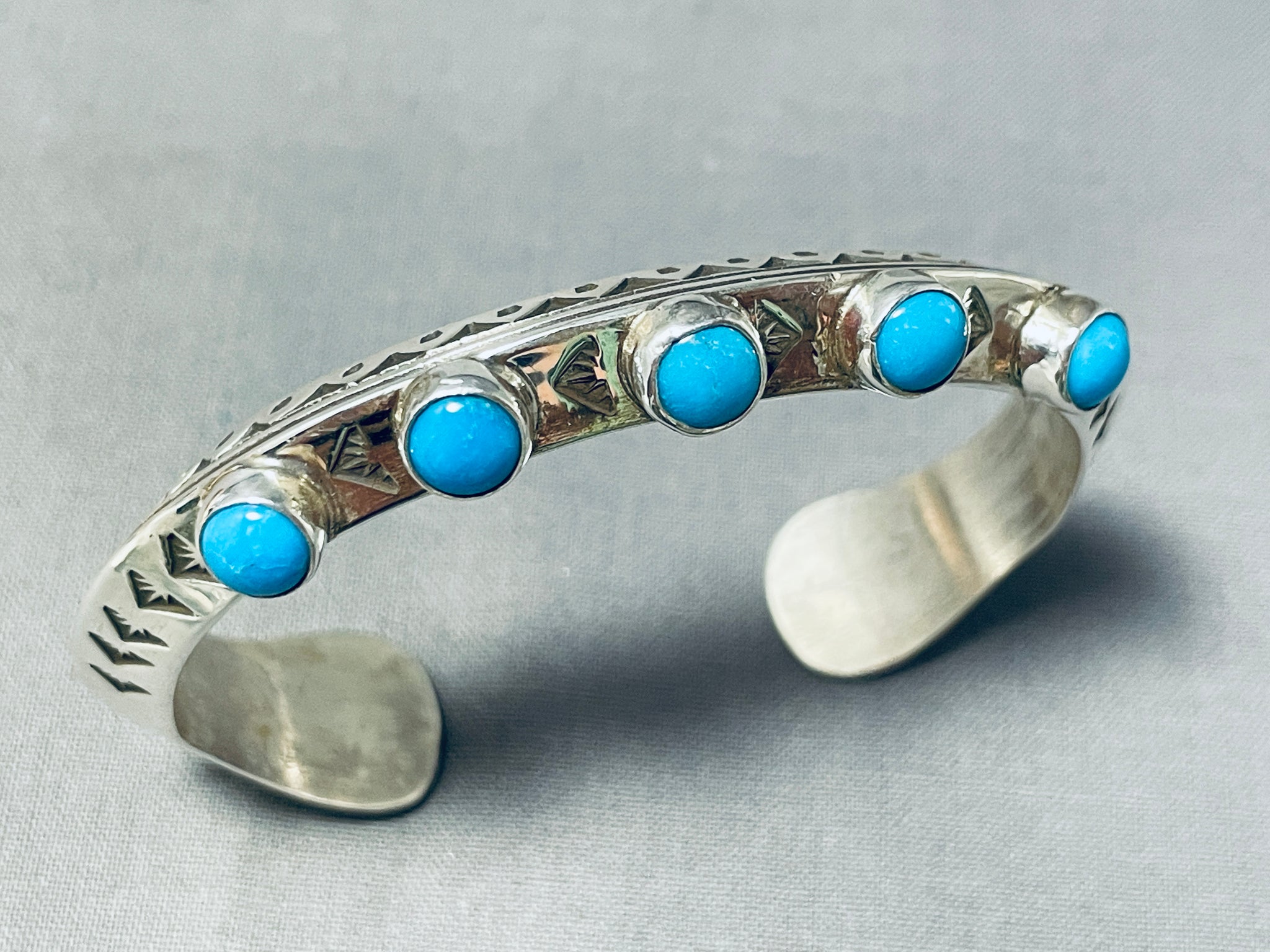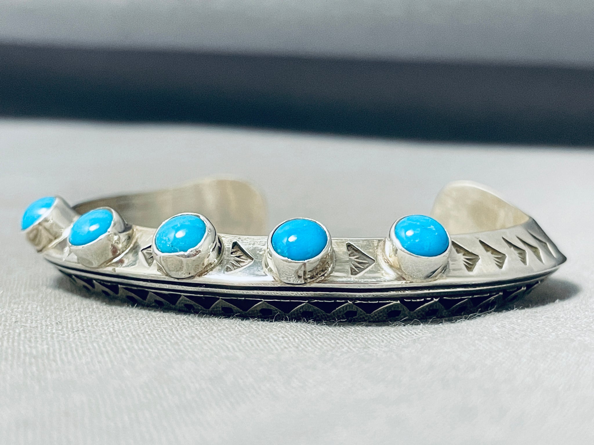 Extraordinary Native American Navajo Signed 5 Sleeping Beauty Turquoise Sterling Silver Bracelet