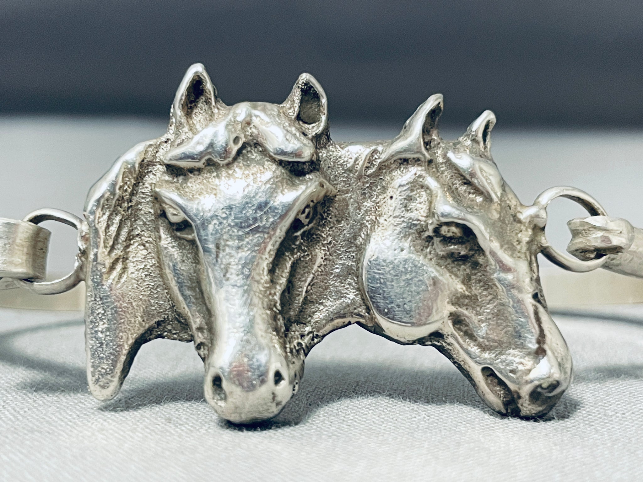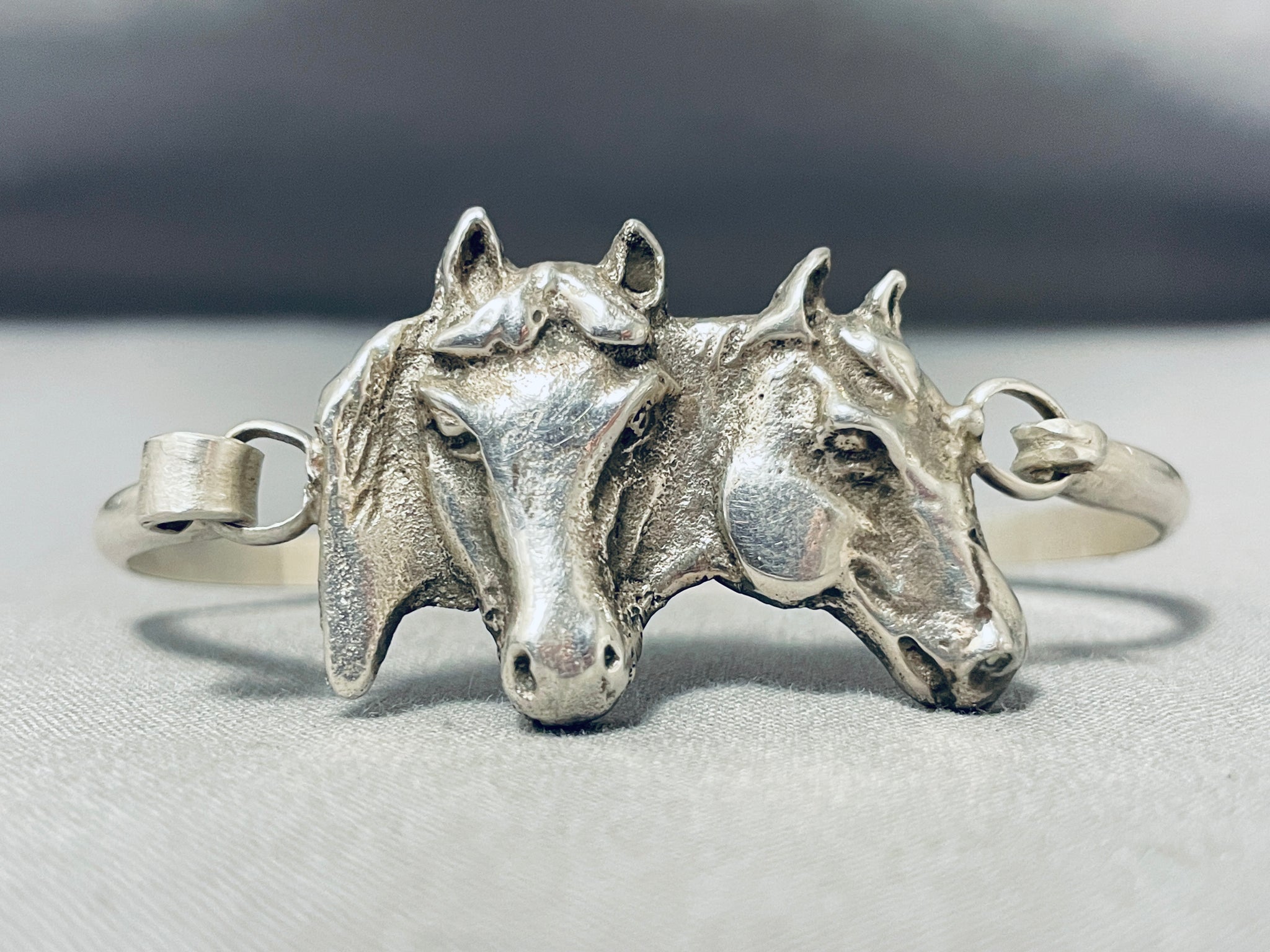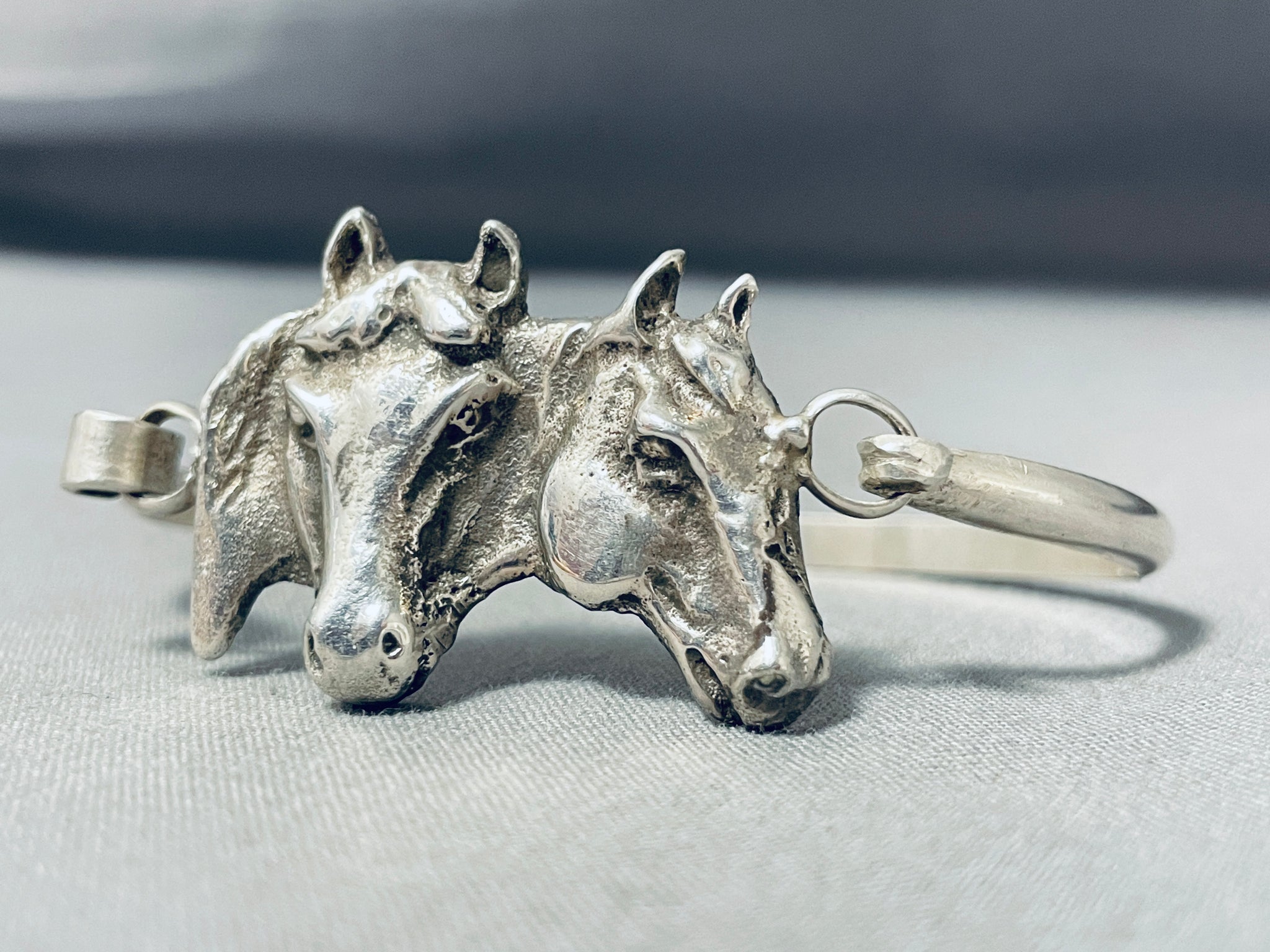 Extraordinary Native American Navajo Signed Sterling Silver Handcarved Horses Bracelet