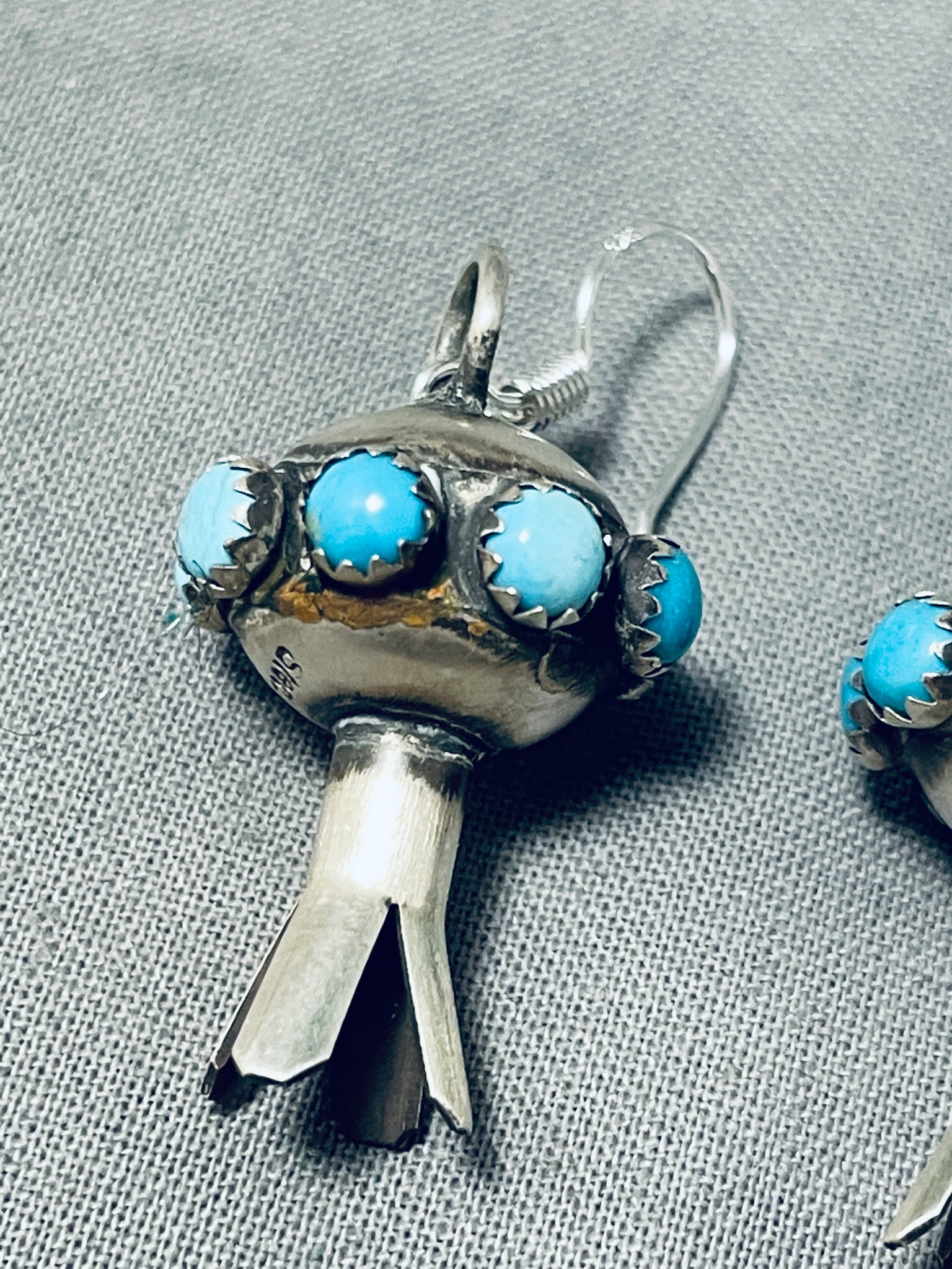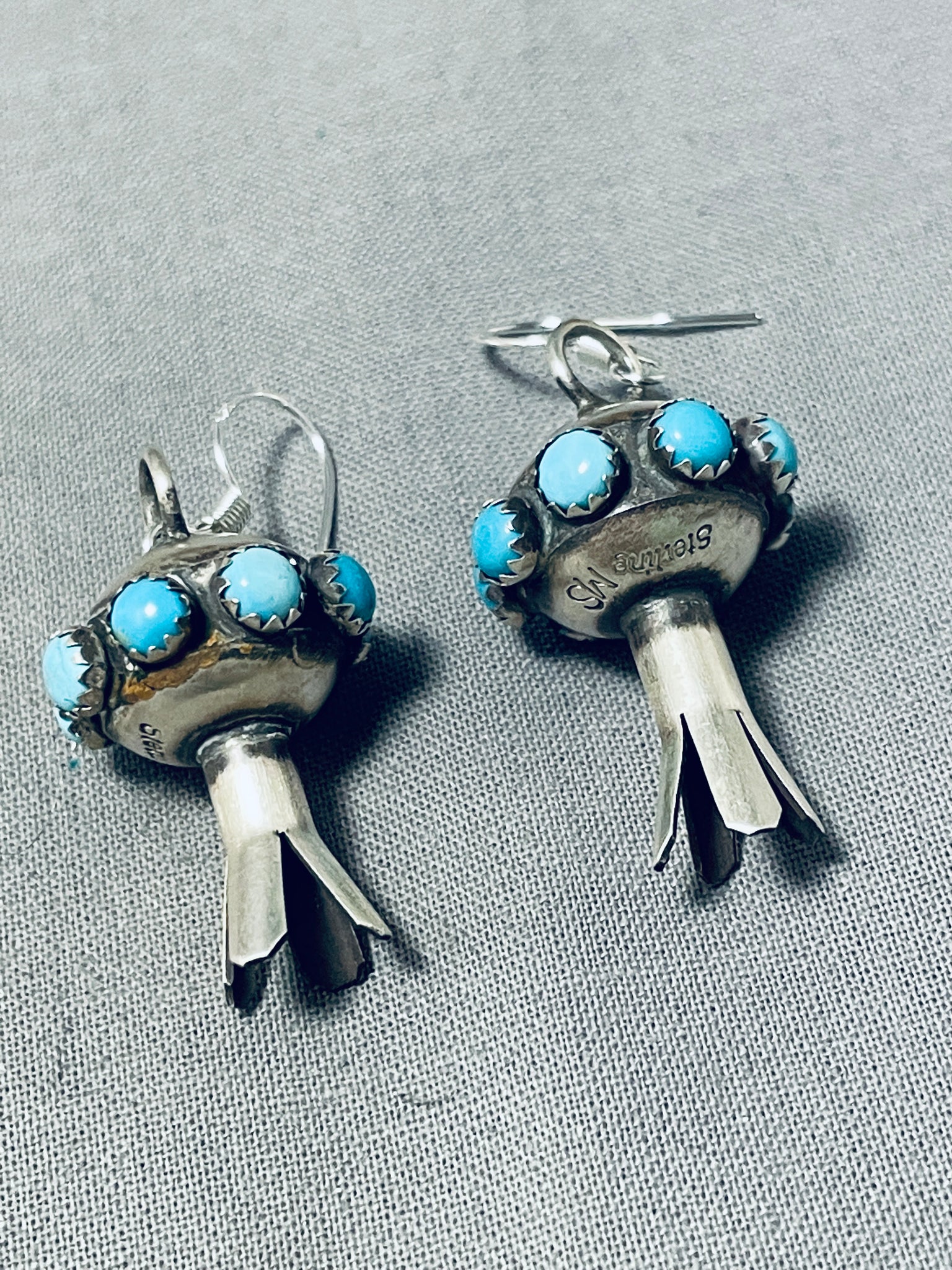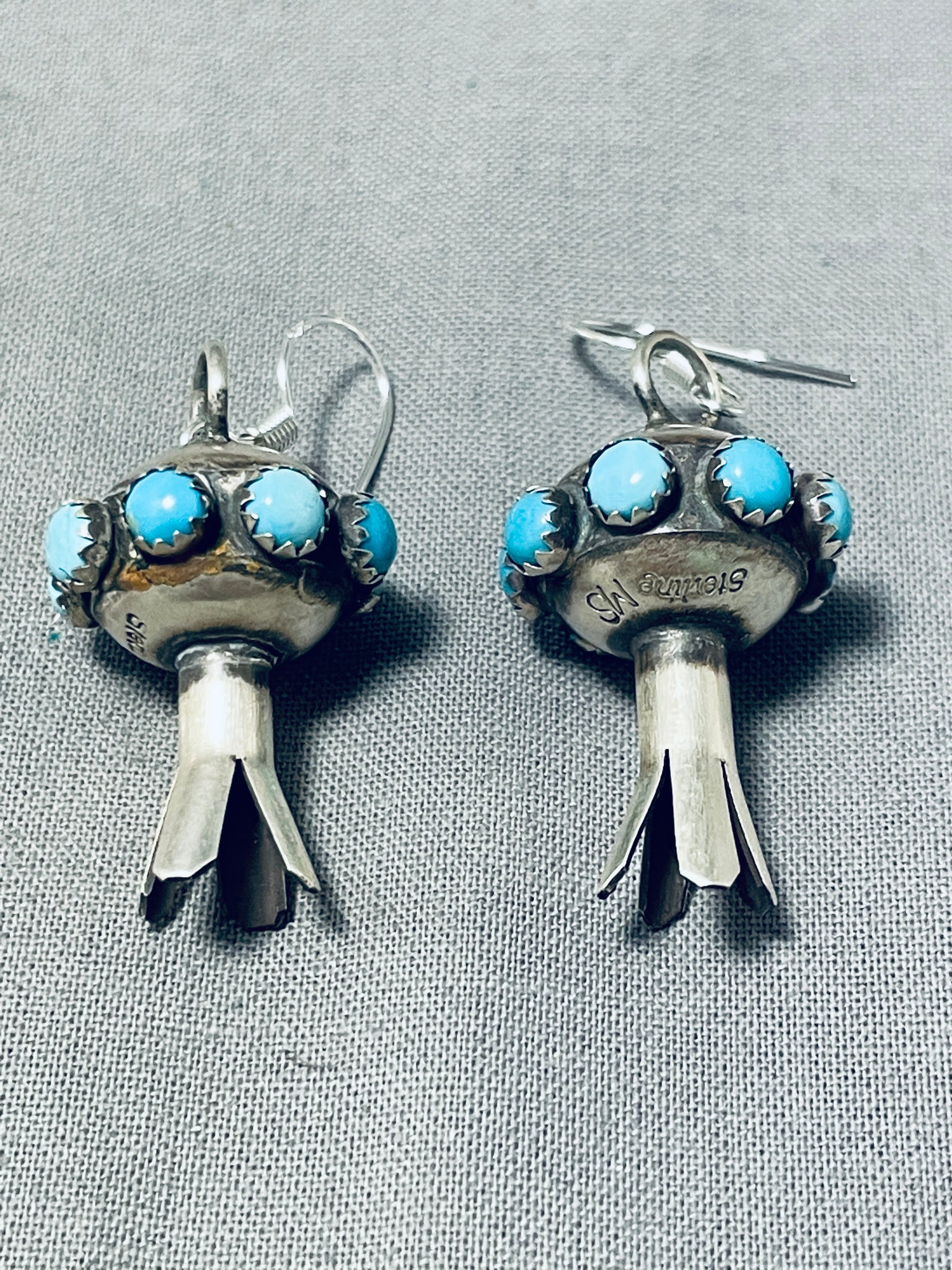 Extraordinary Native American Navajo Sleeping Beauty Sterling Silver Blossom Earrings