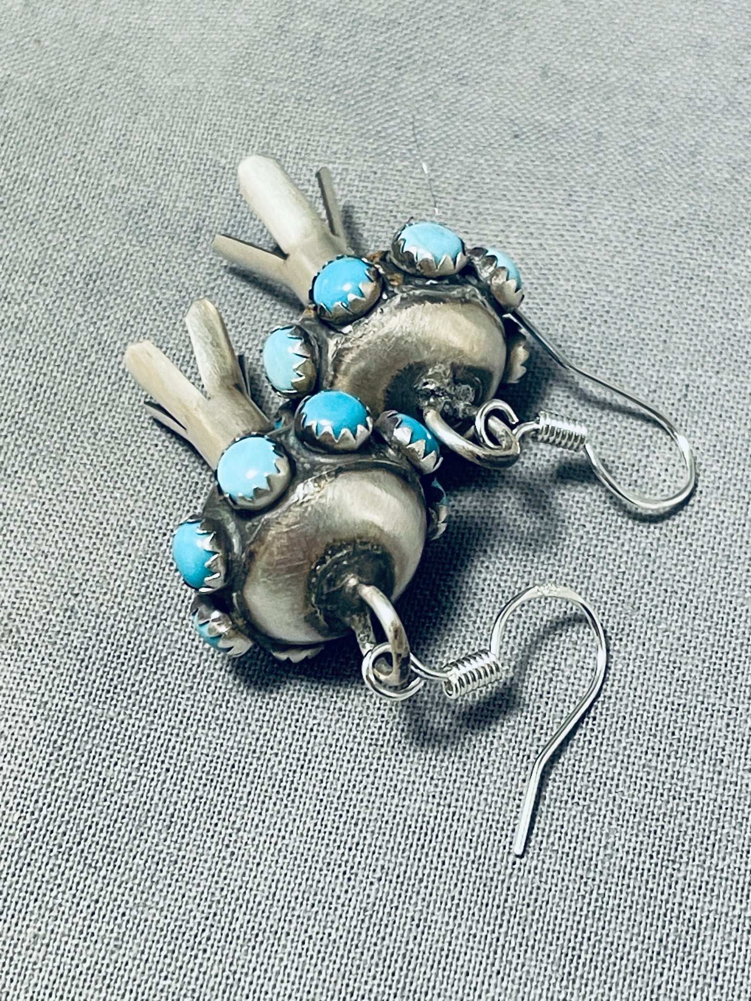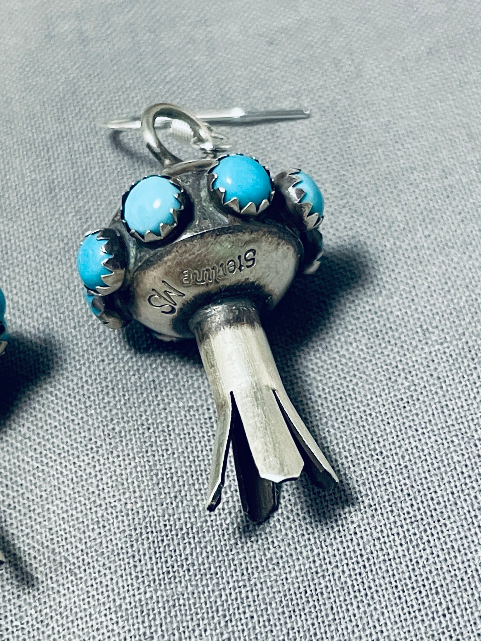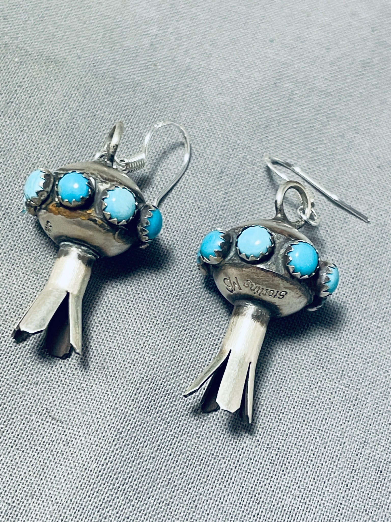 Extraordinary Native American Navajo Sleeping Beauty Sterling Silver Blossom Earrings
