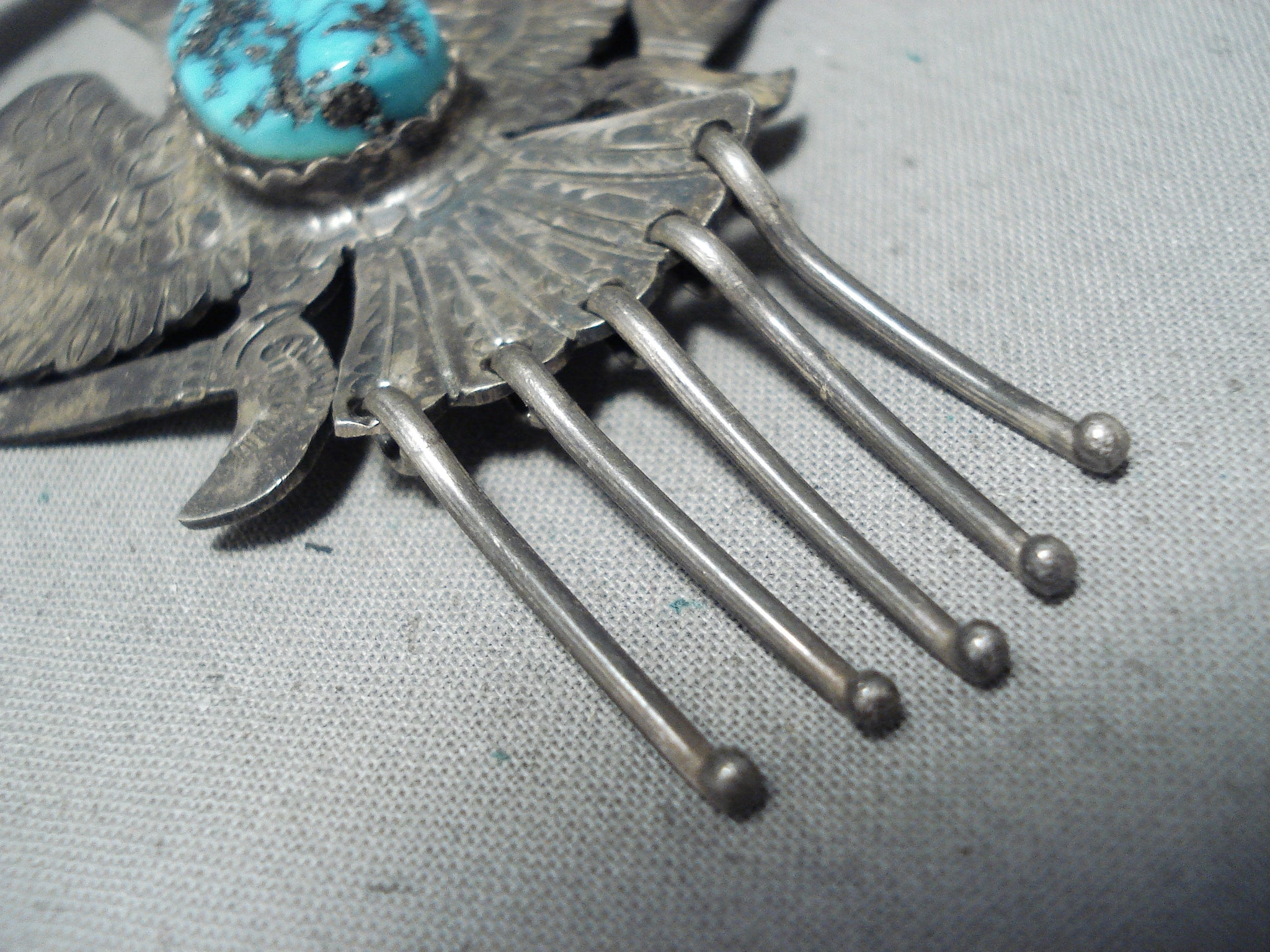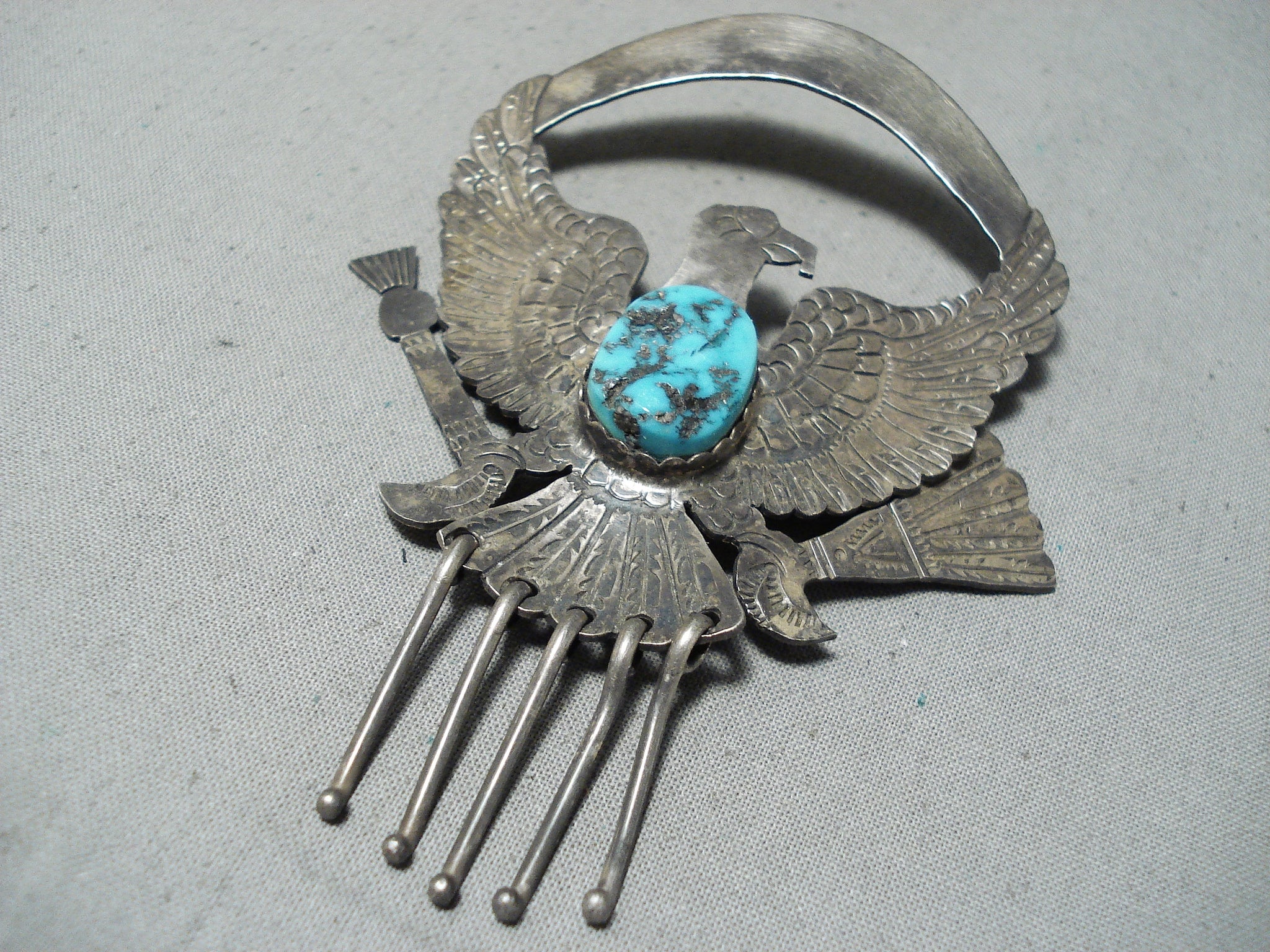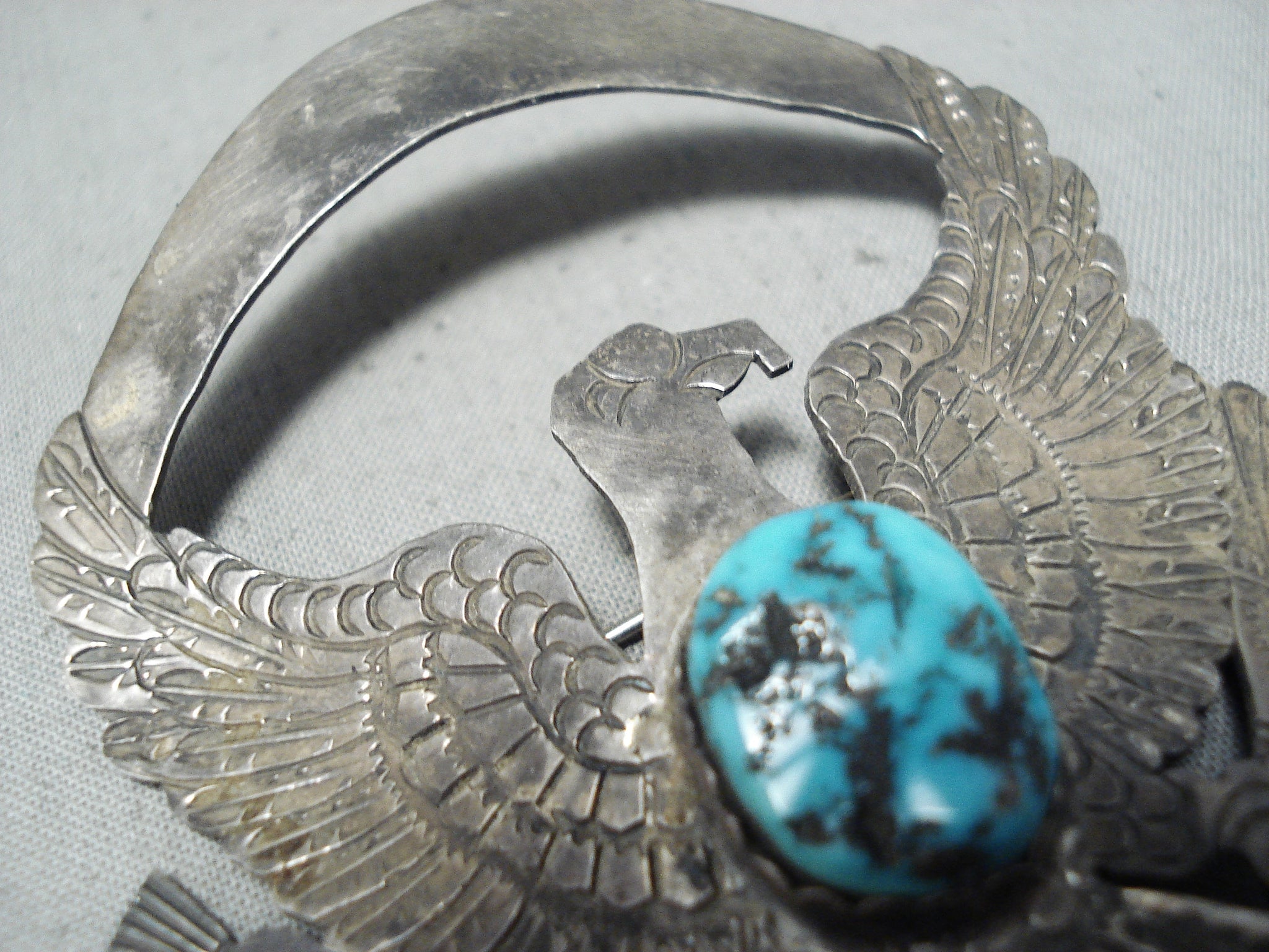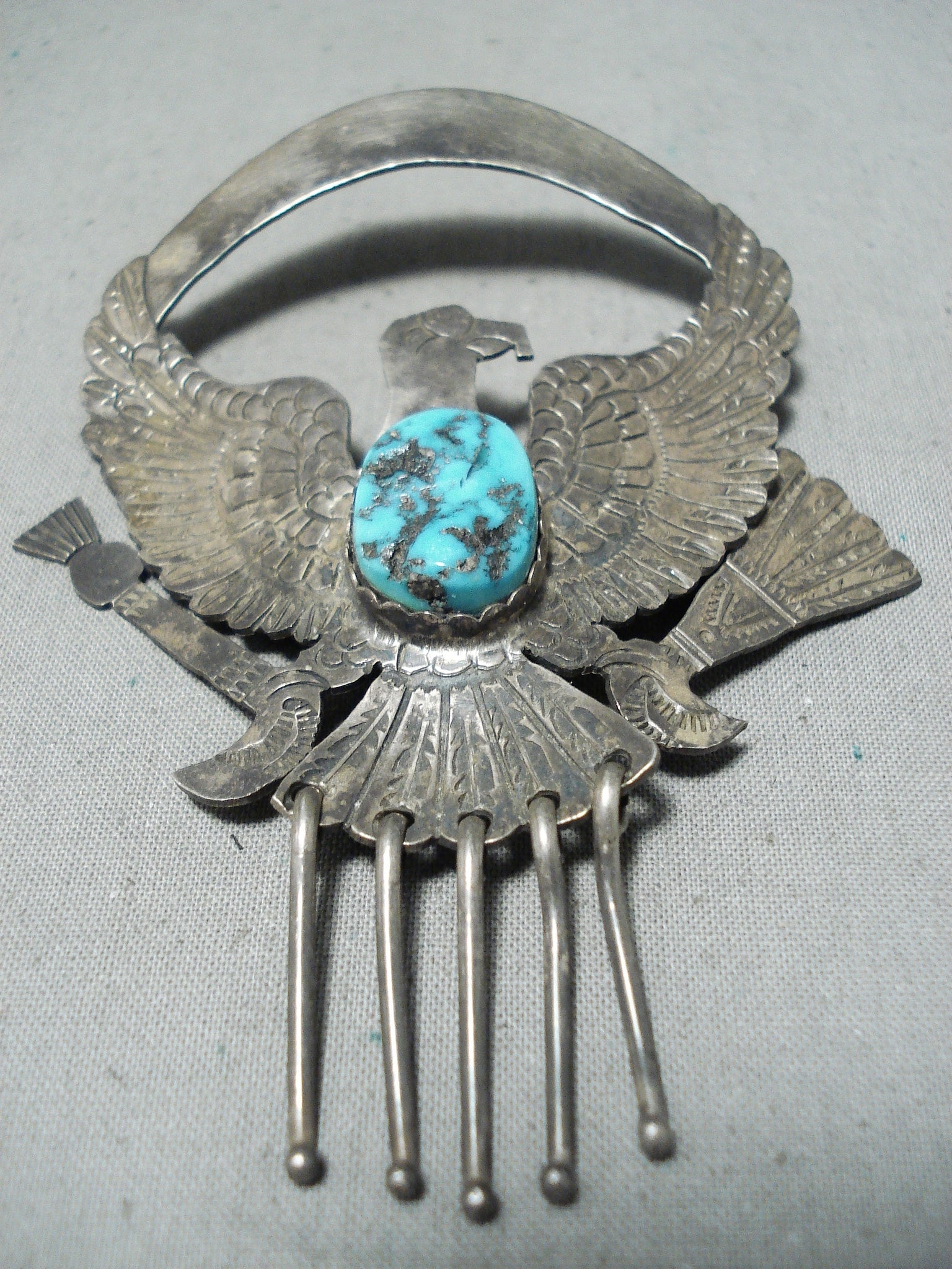 Extraordinary Native American Navajo Sleeping Beauty Turquoise Sterling Silver Eagle Pin