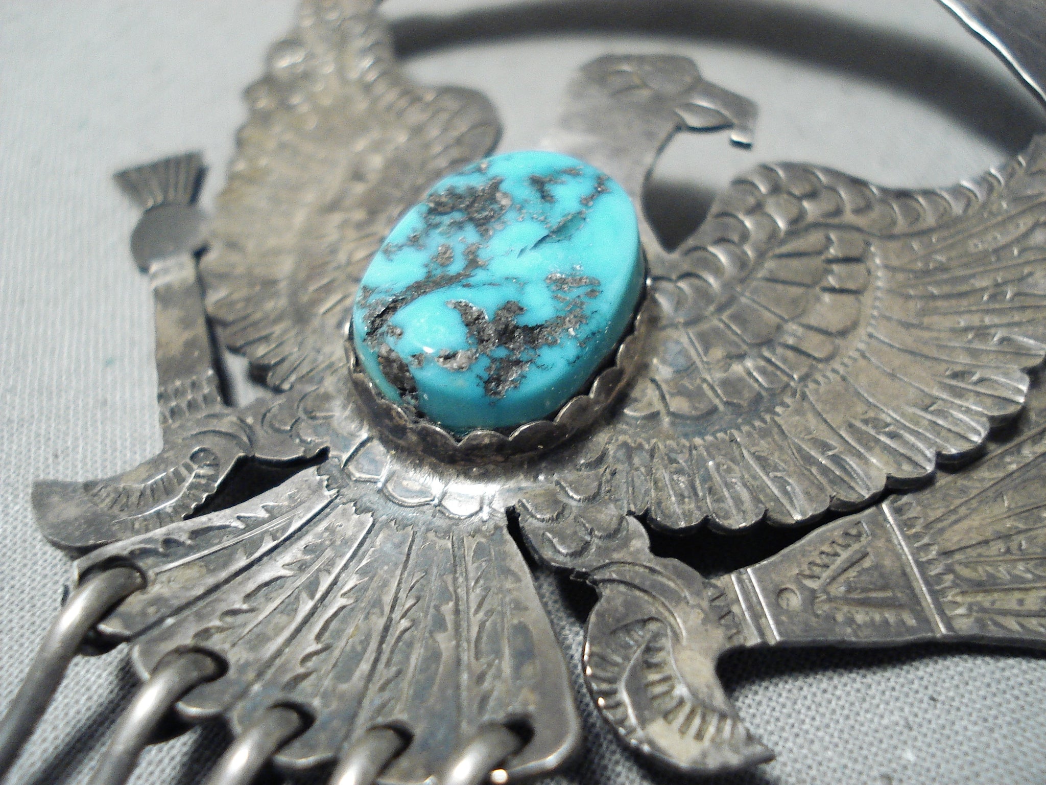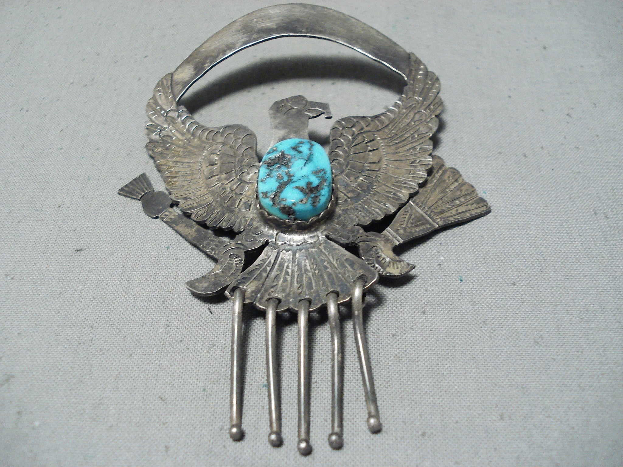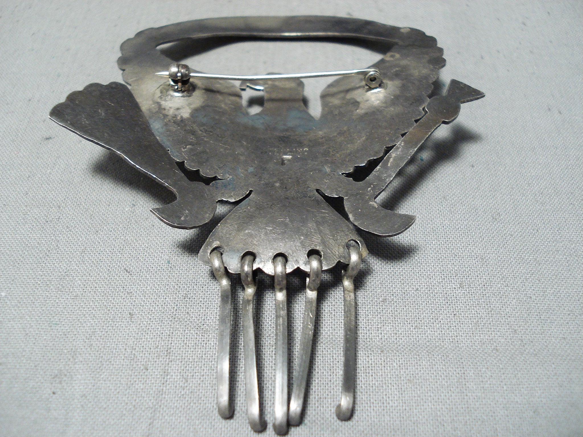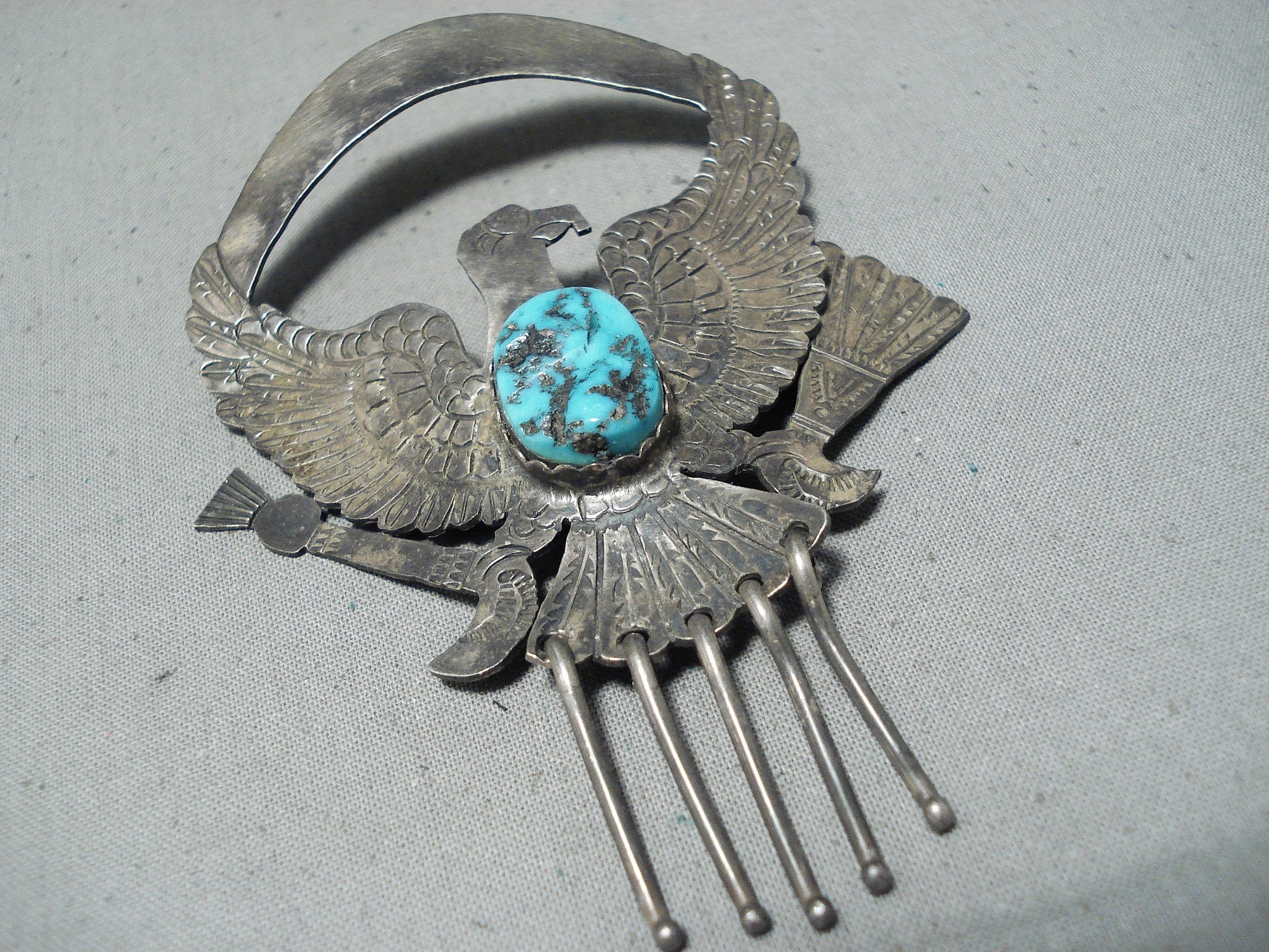 Extraordinary Native American Navajo Sleeping Beauty Turquoise Sterling Silver Eagle Pin