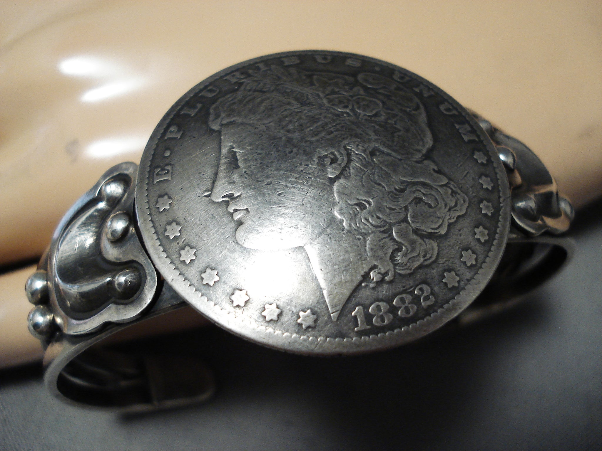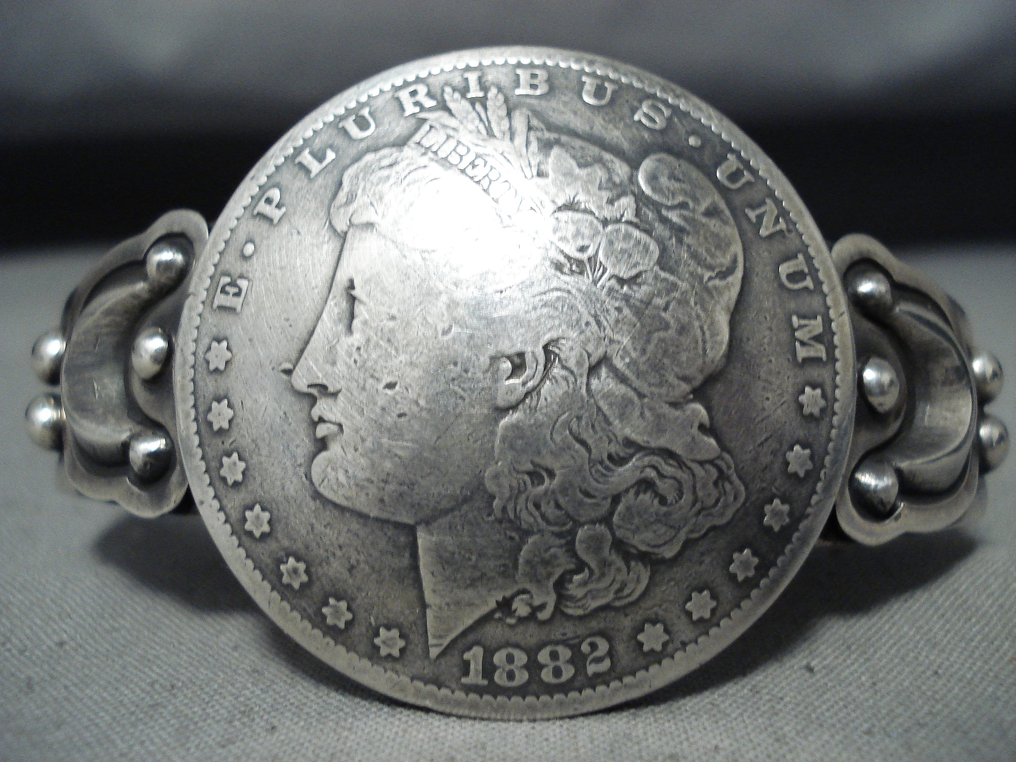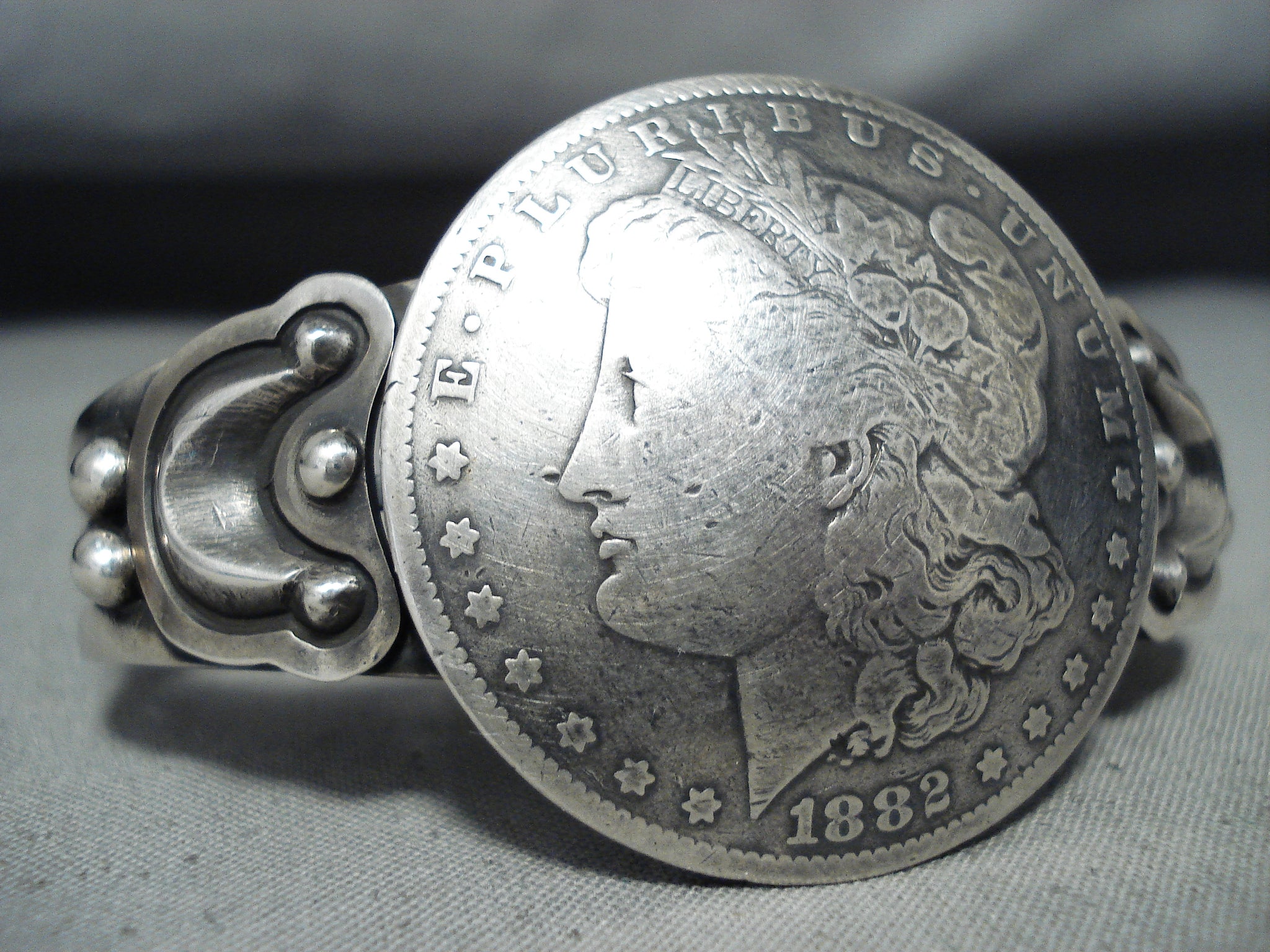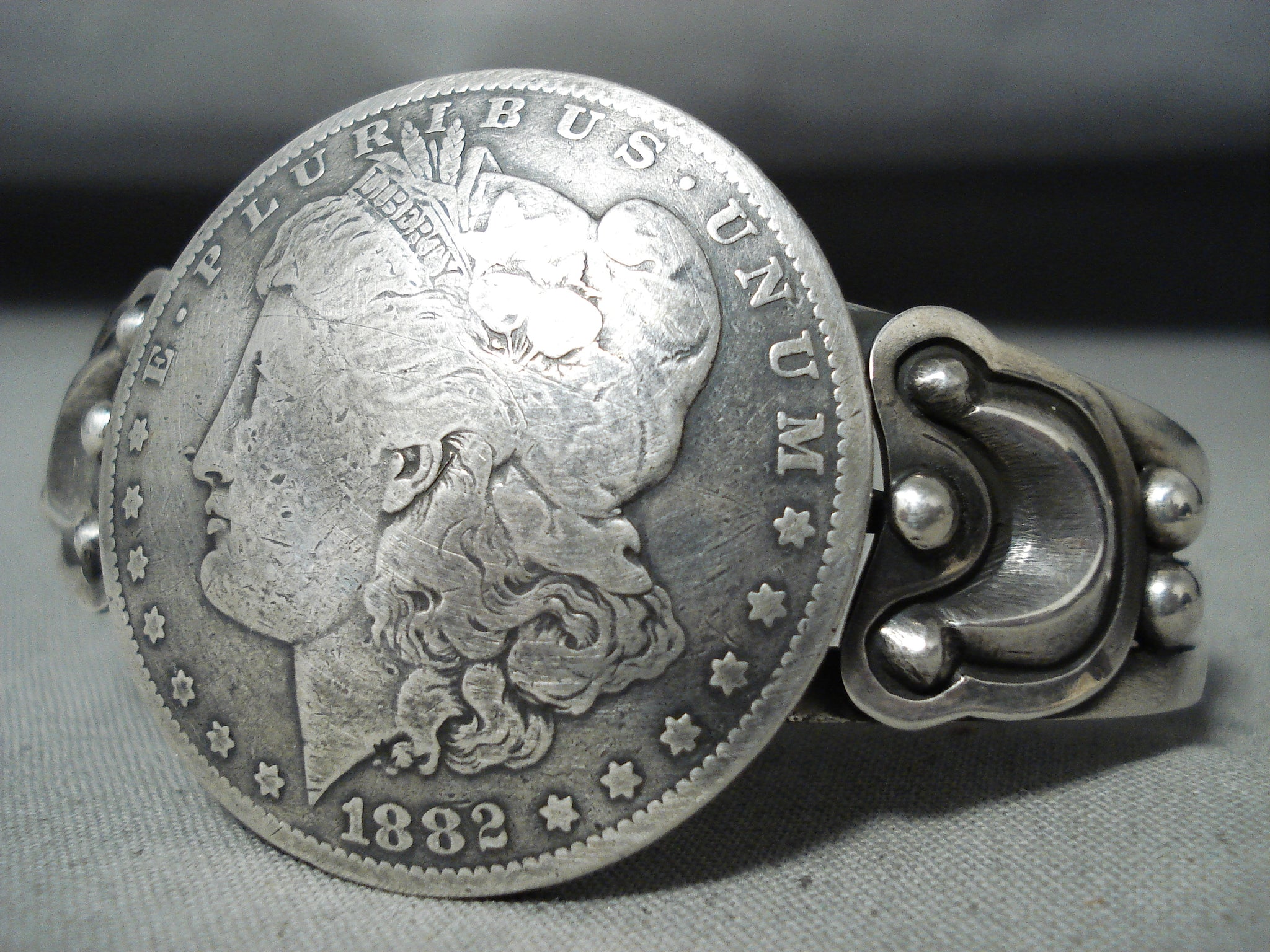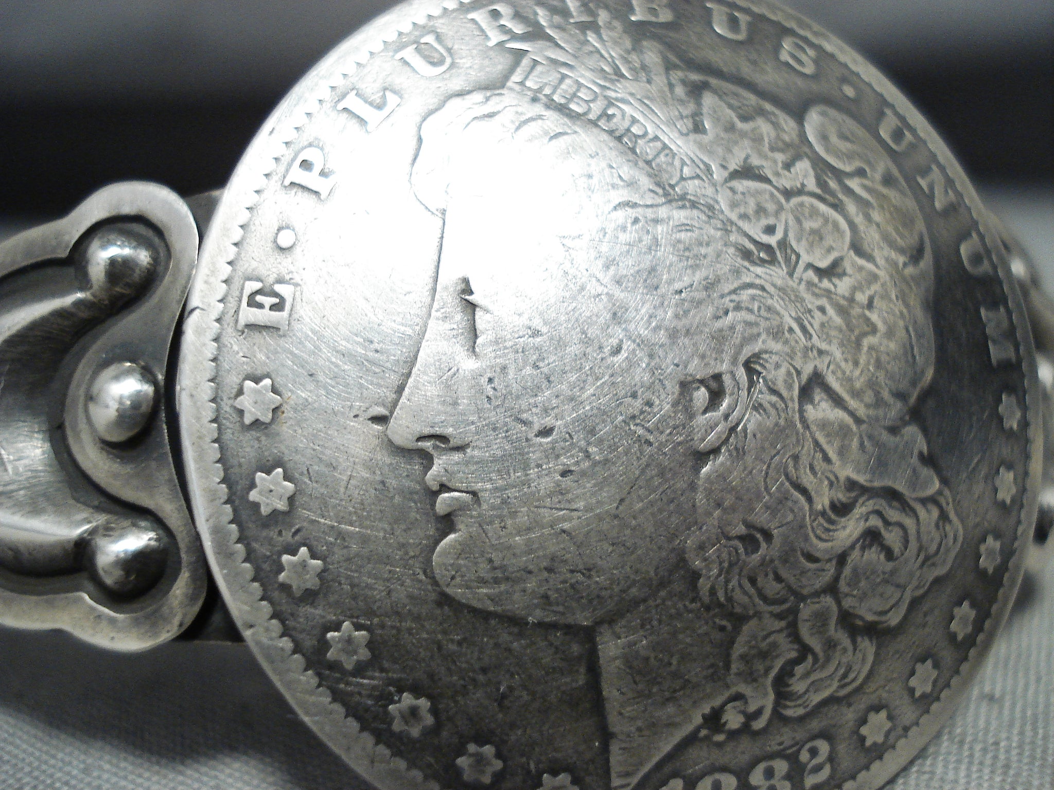 Extraordinary Native American Taos Signed Silver Dollar Bracelet