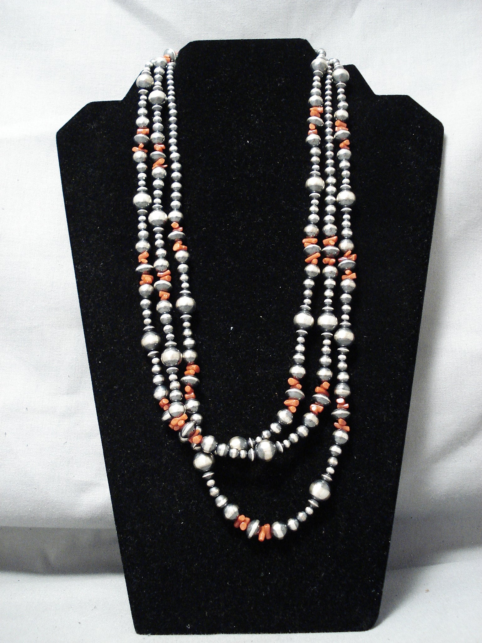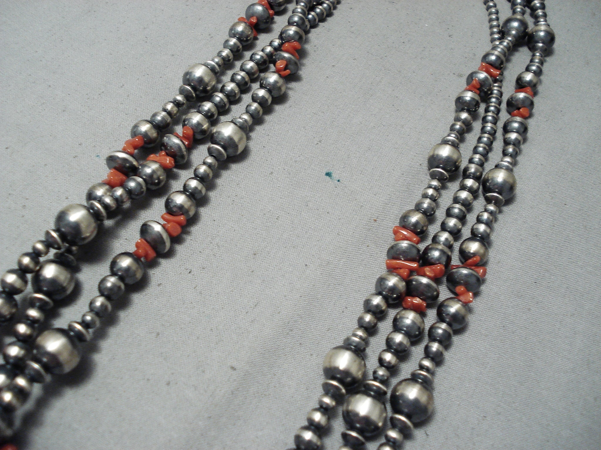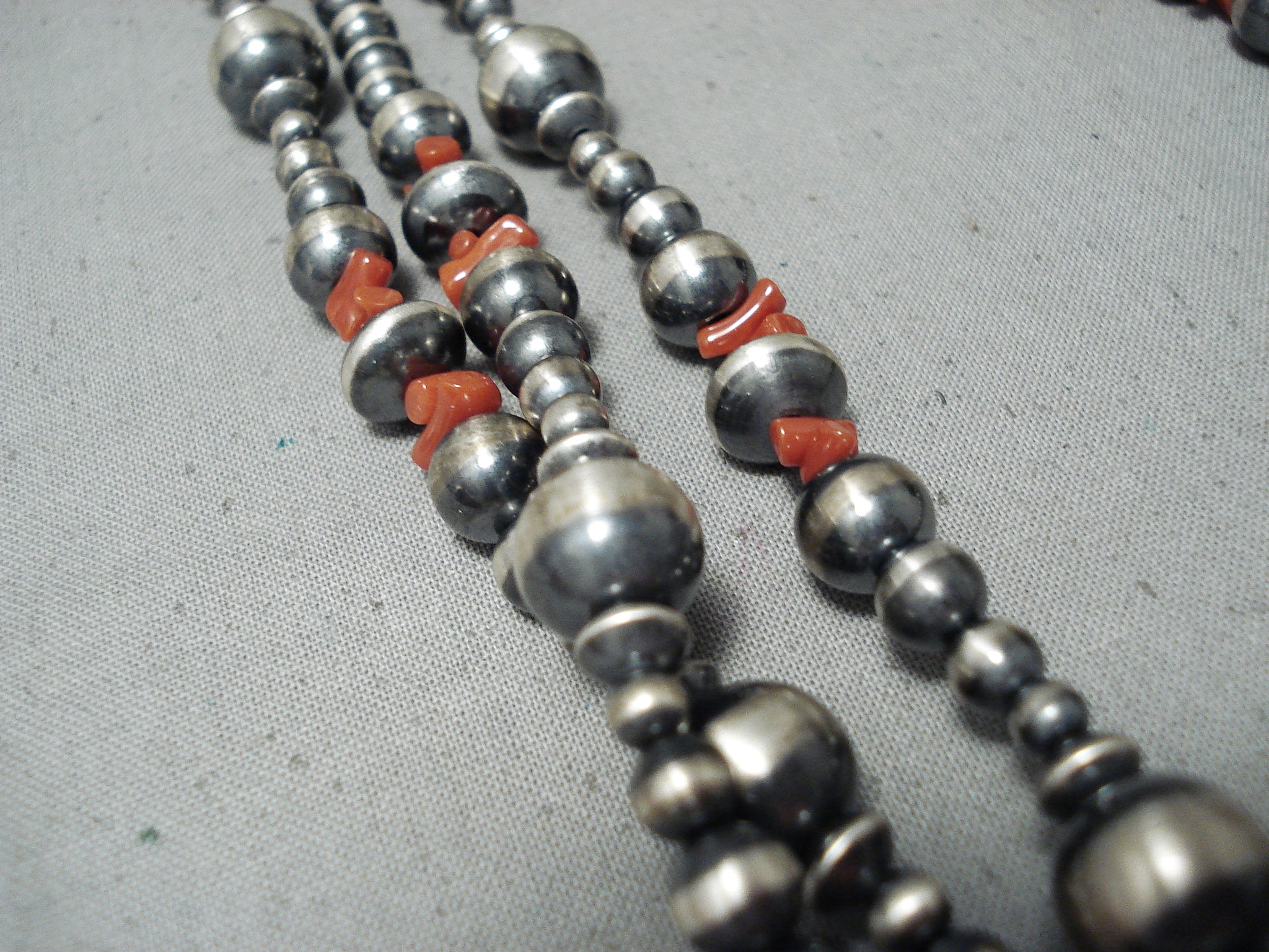 Extraordinary Navajo Coral Sterling Silver Long Necklace Native American