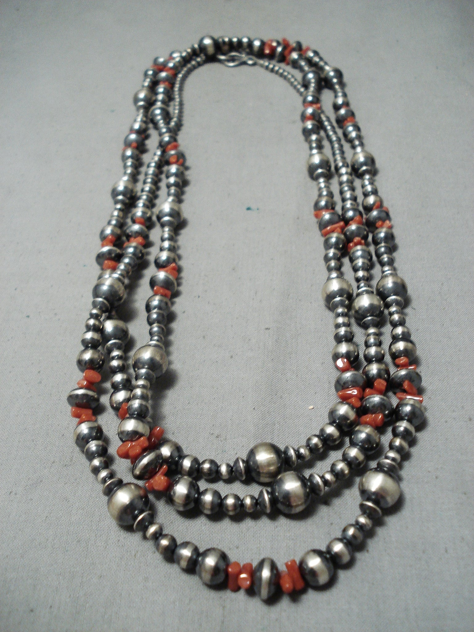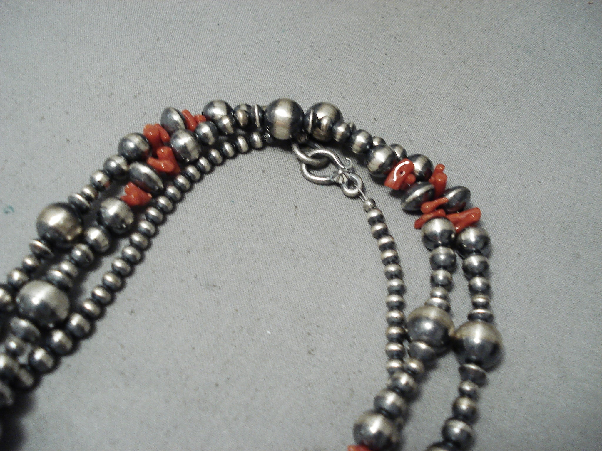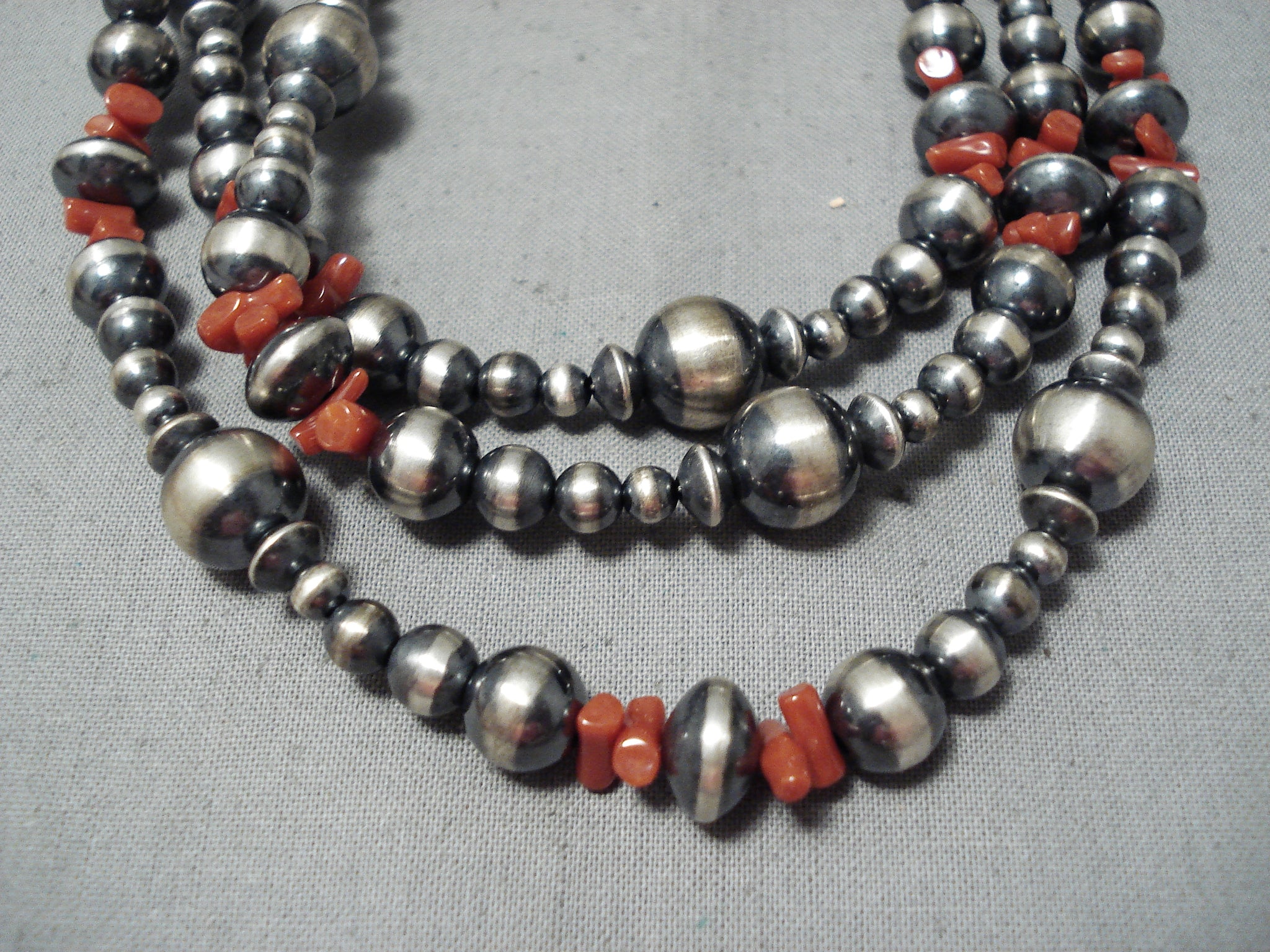 Extraordinary Navajo Coral Sterling Silver Long Necklace Native American
