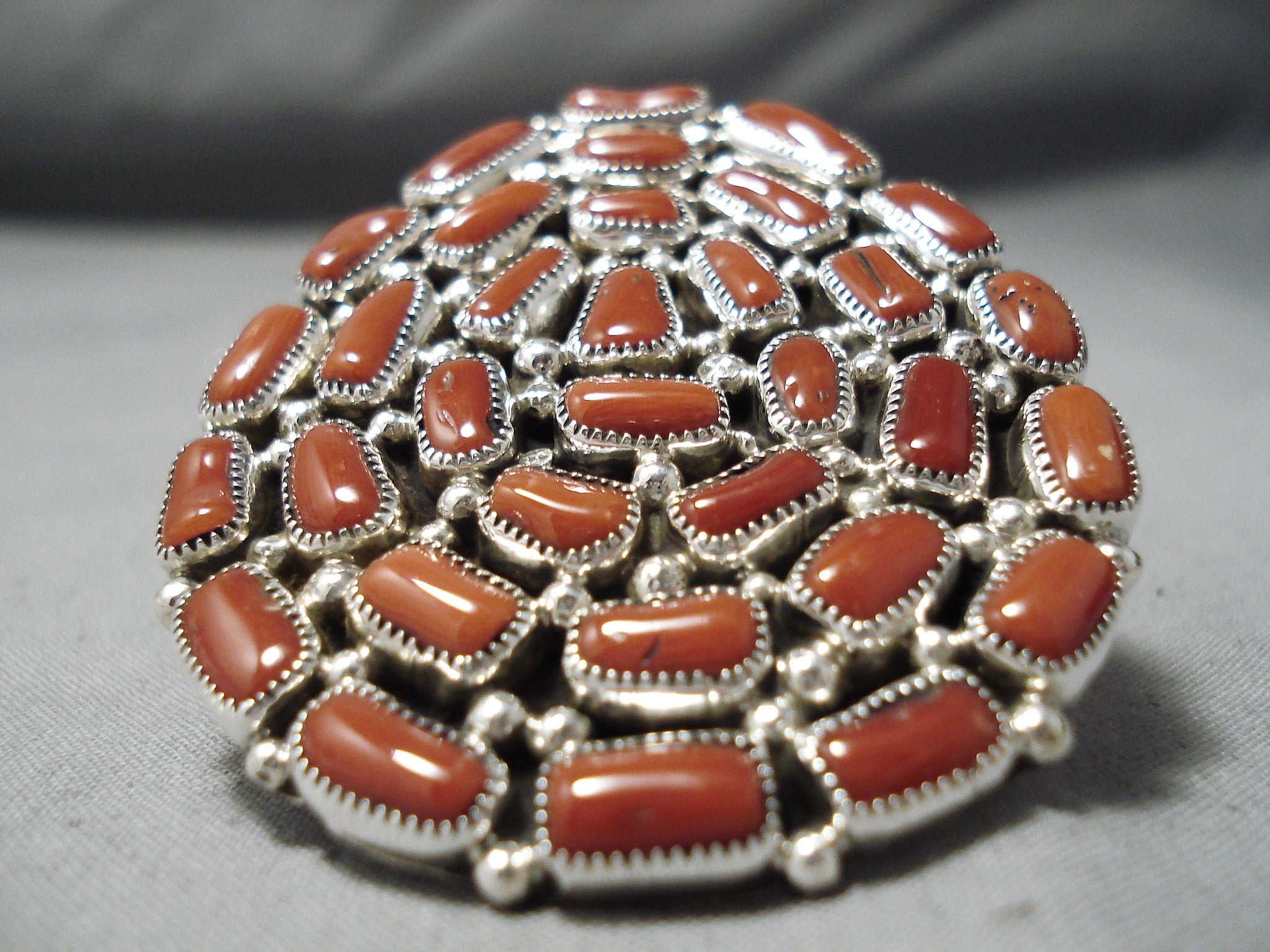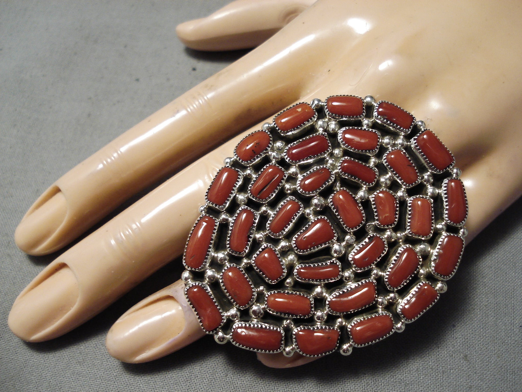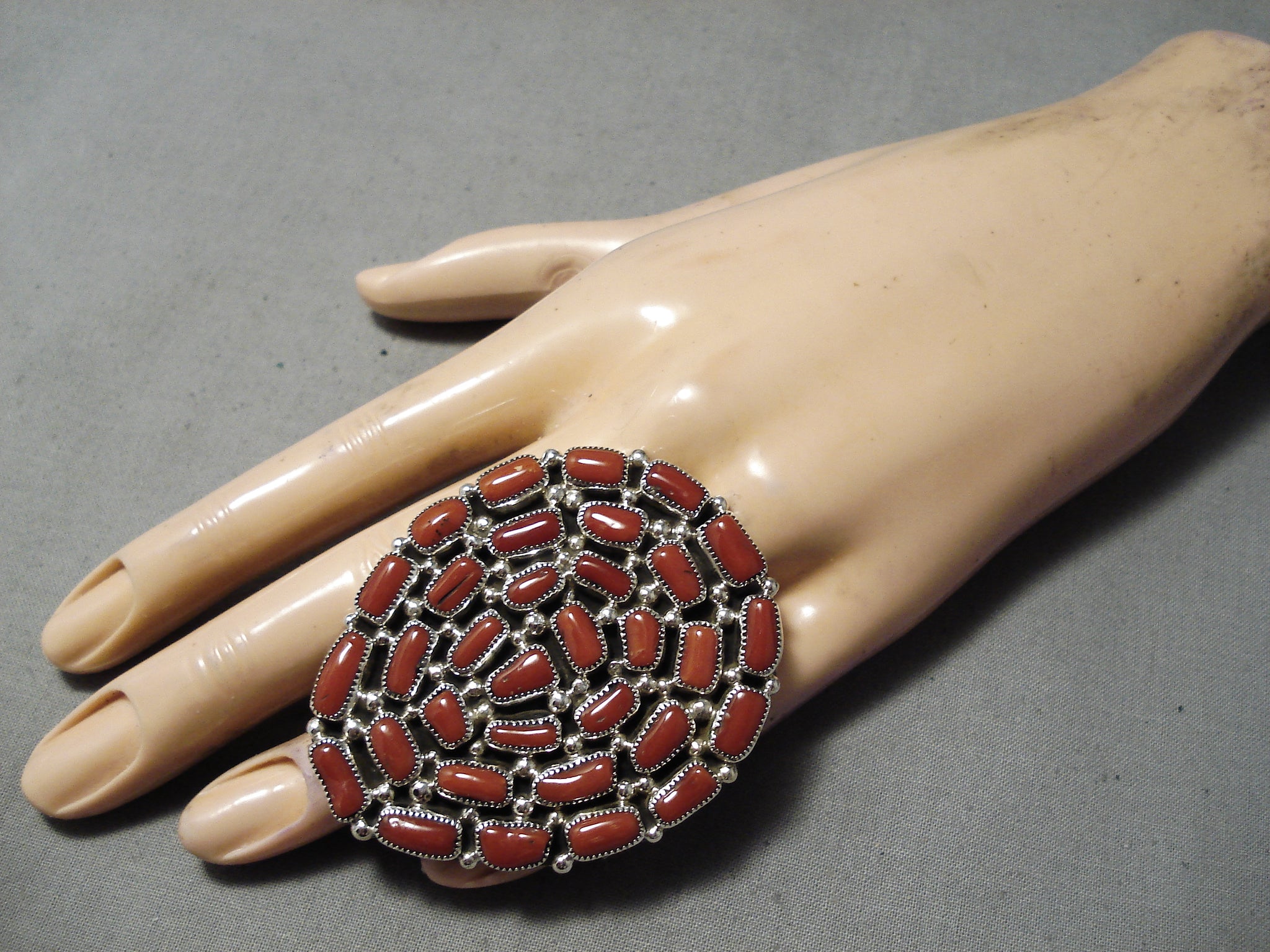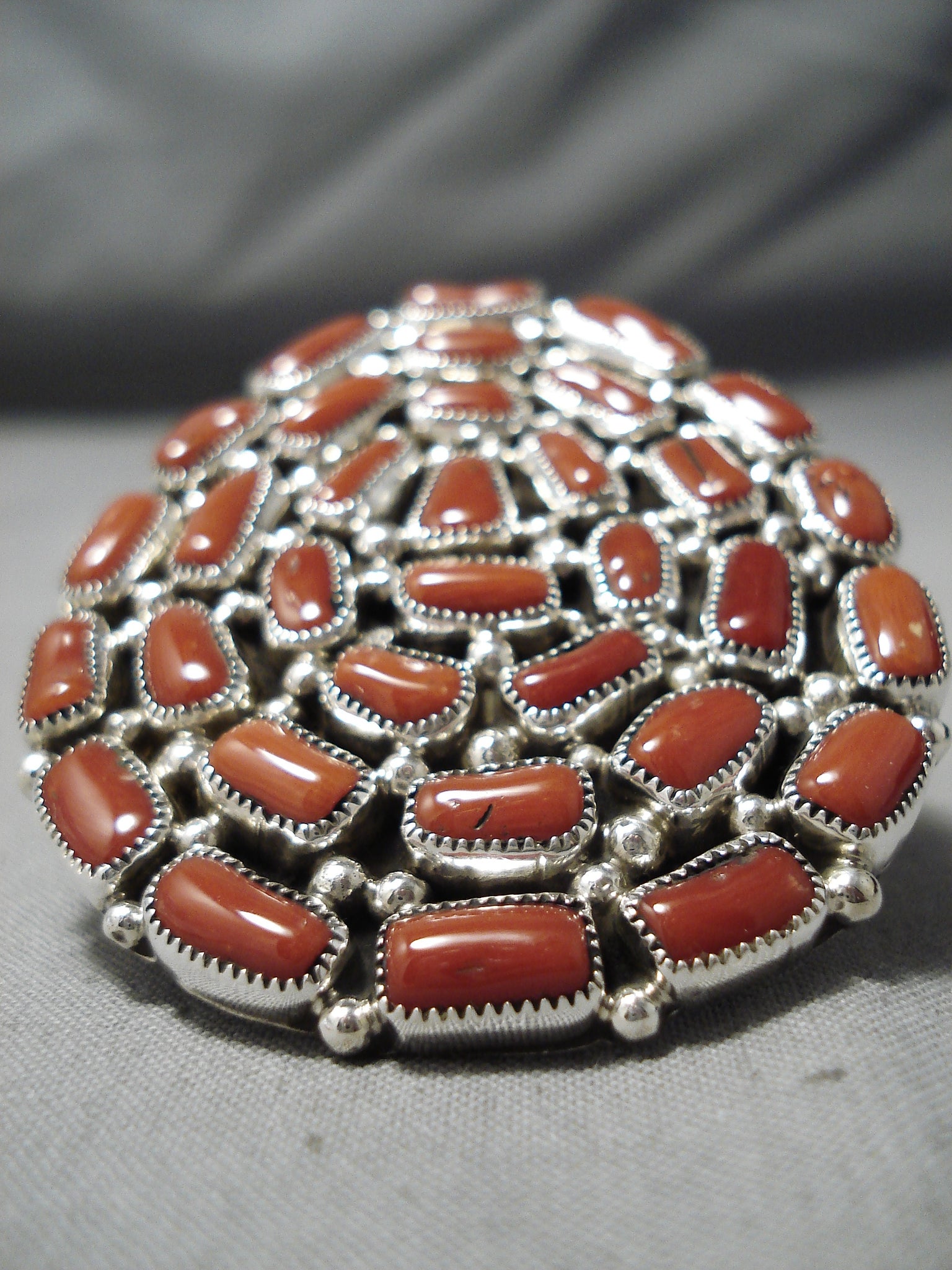 Extraordinary Navajo Coral Sterling Silver Ring Native American