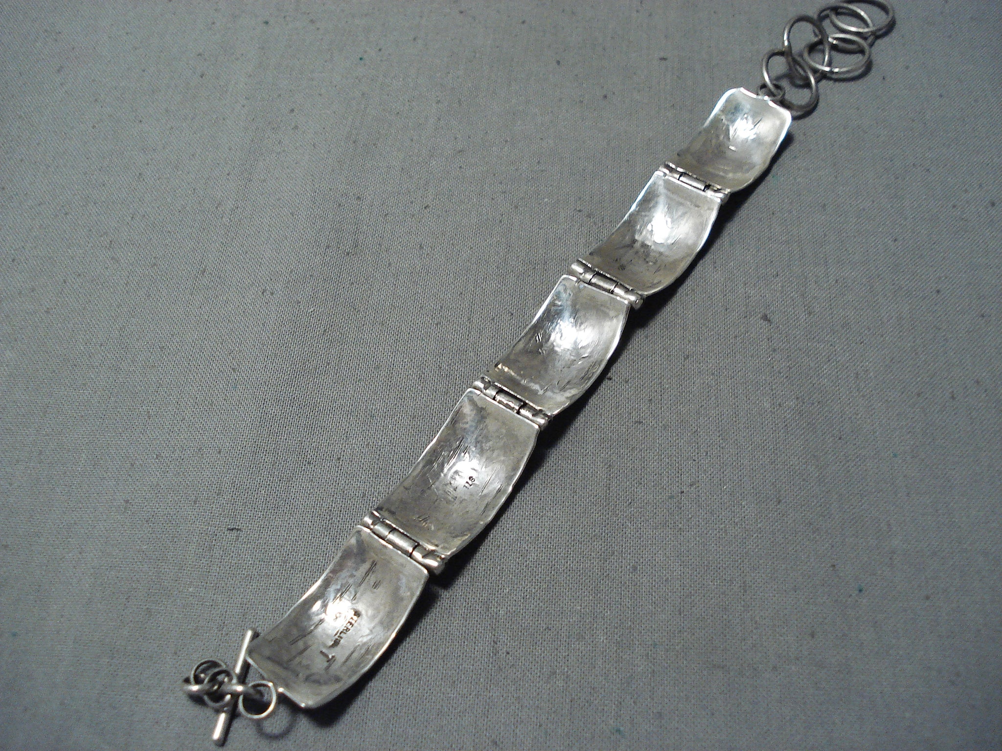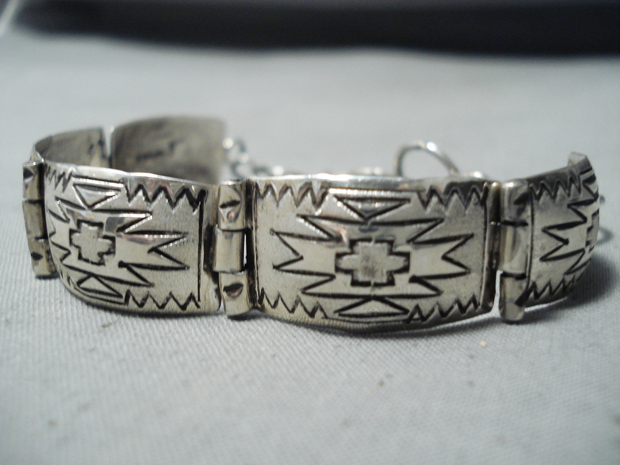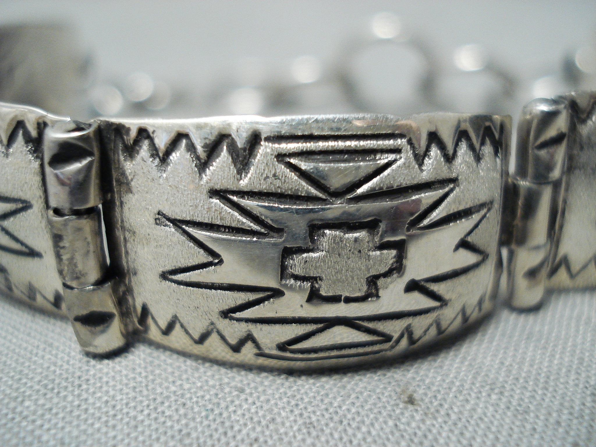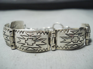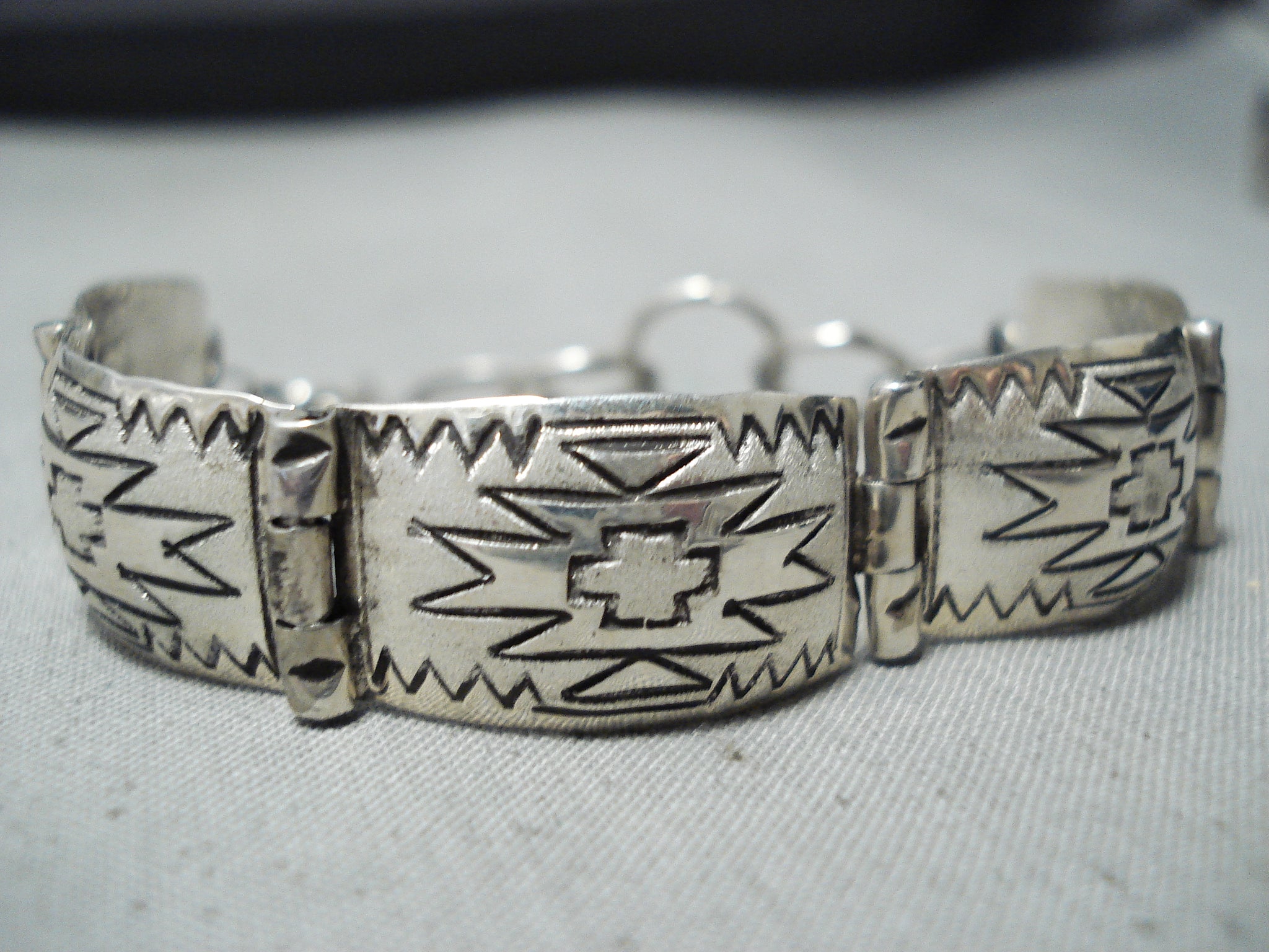 Extraordinary Vintage Native American Navajo Sterling Silver Hinged Bracelet