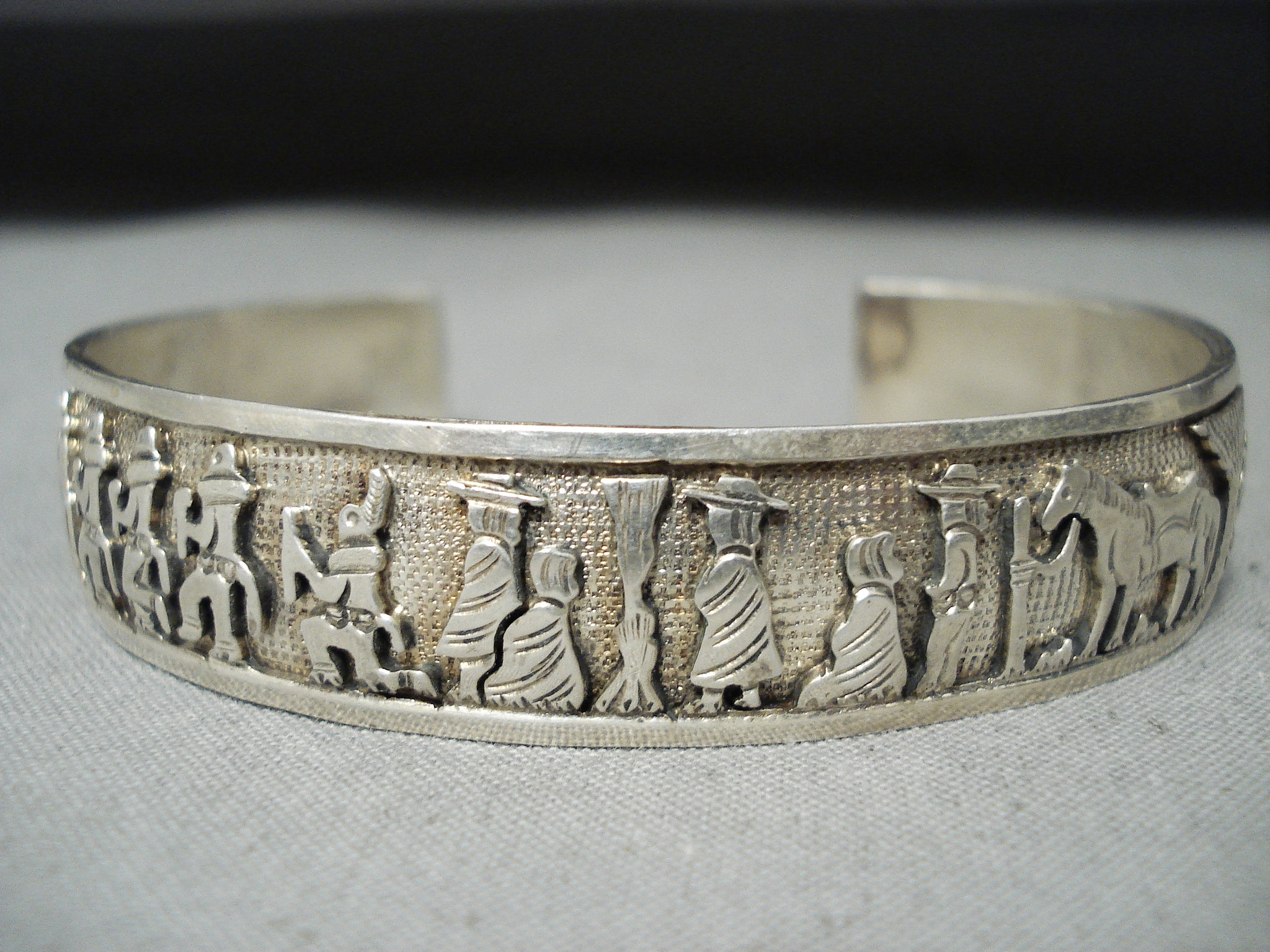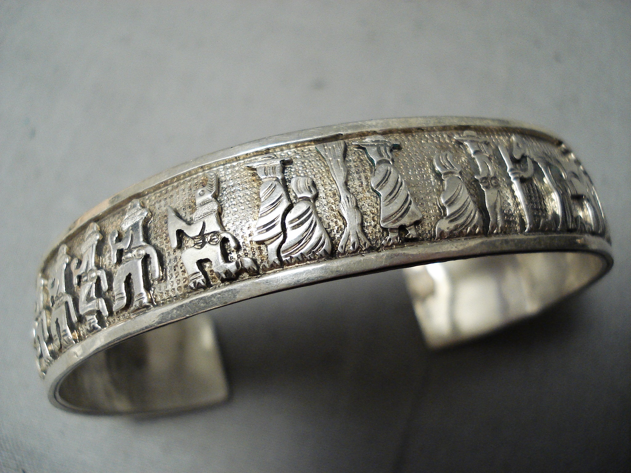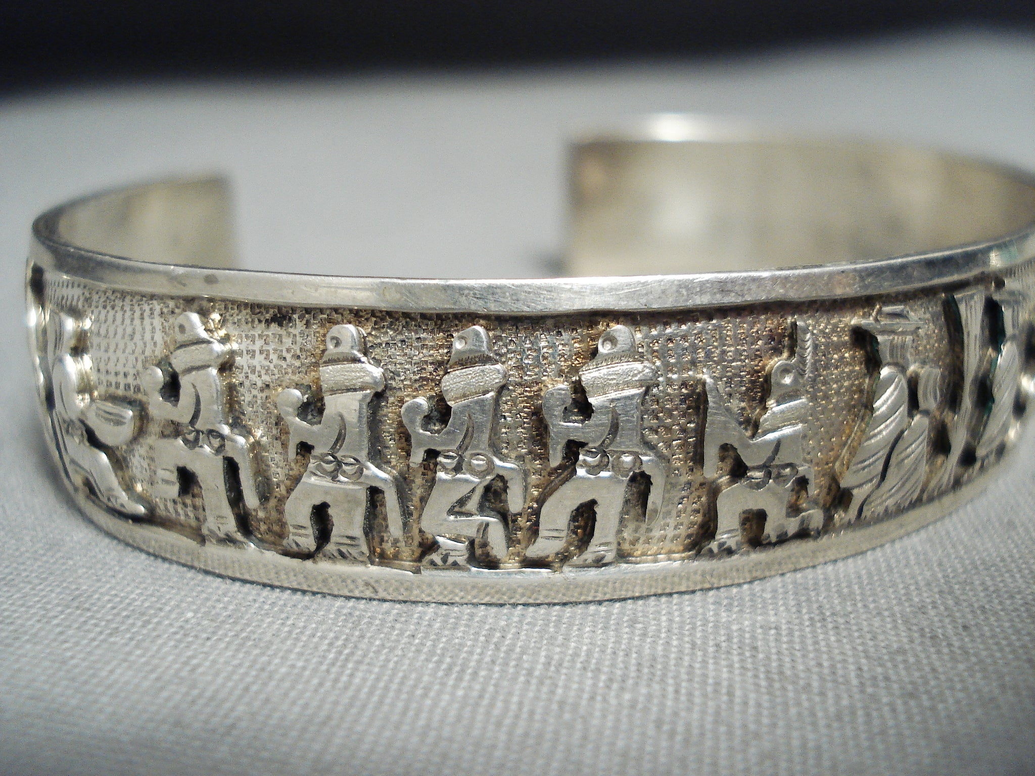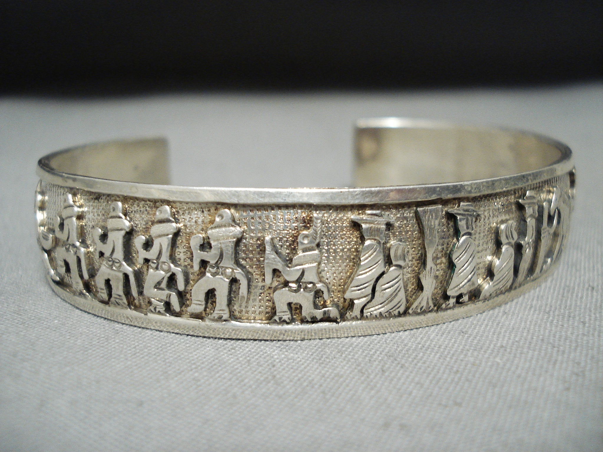 Extraordinary Vintage Native American Navajo Sterling Silver Storyteller Bracelet