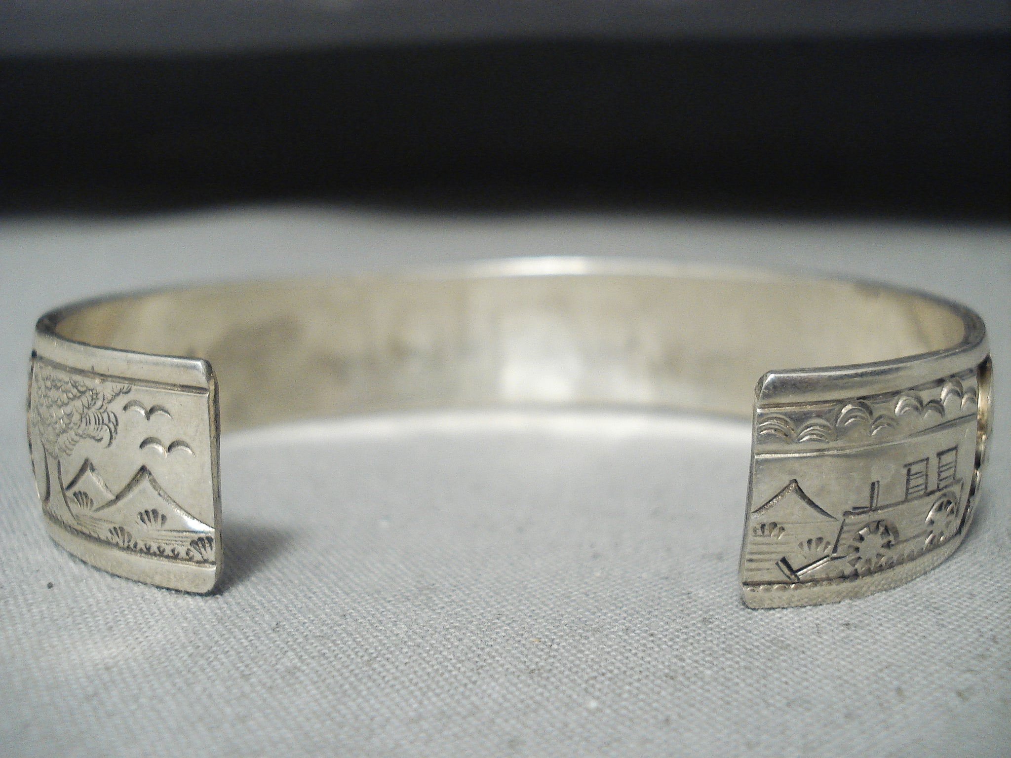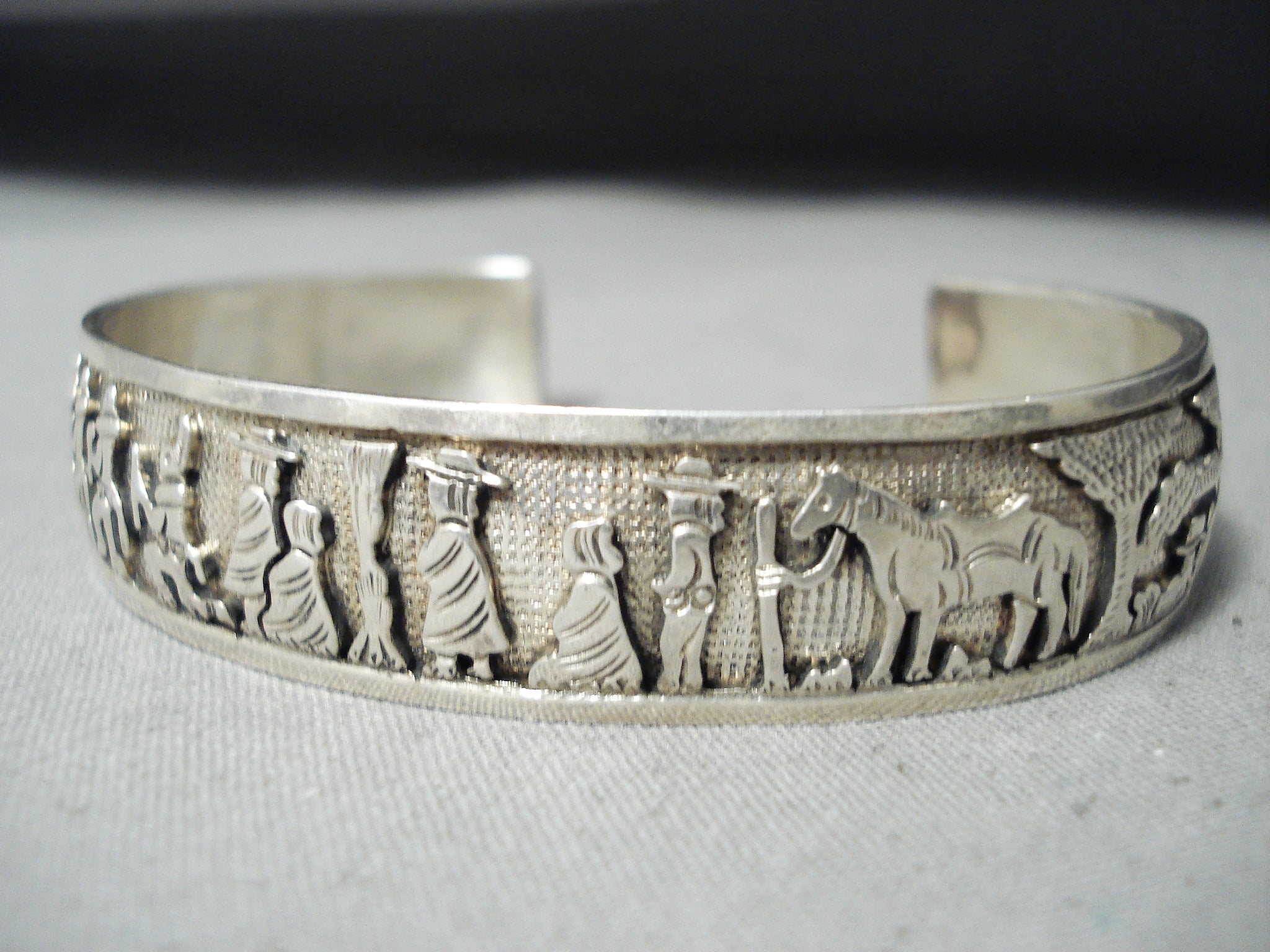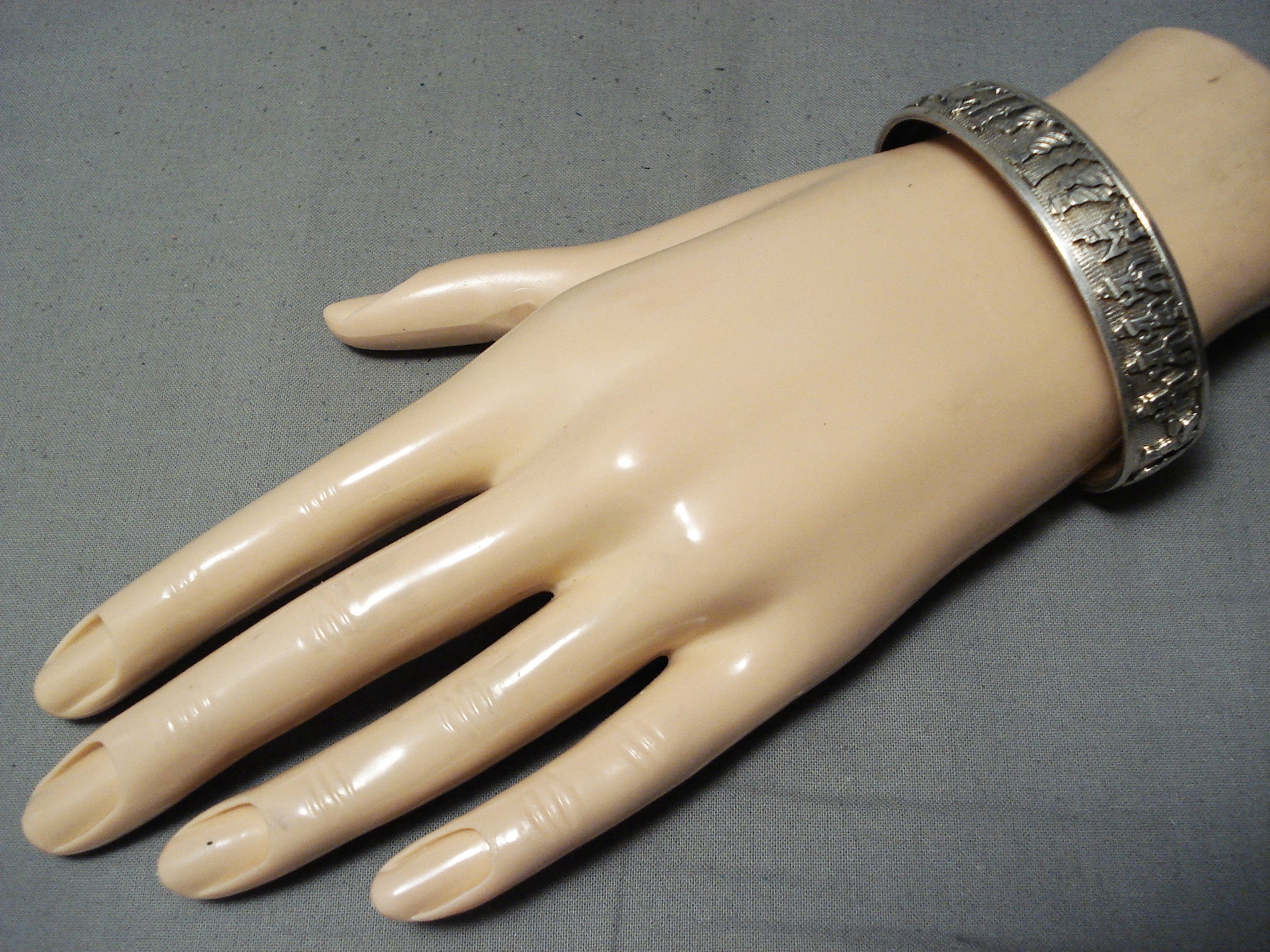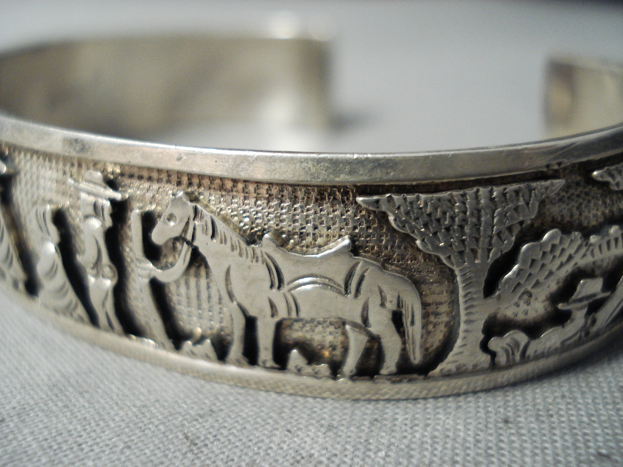 Extraordinary Vintage Native American Navajo Sterling Silver Storyteller Bracelet