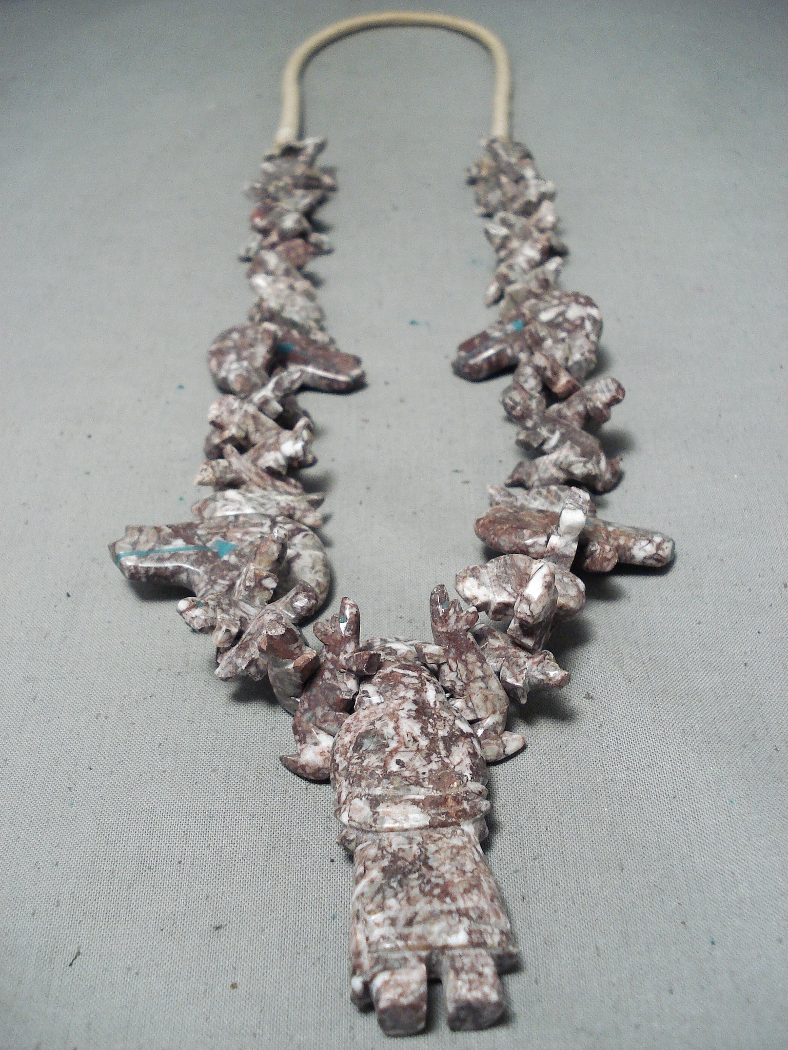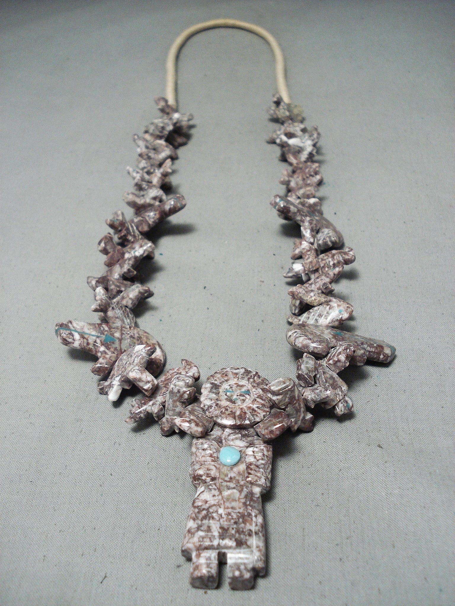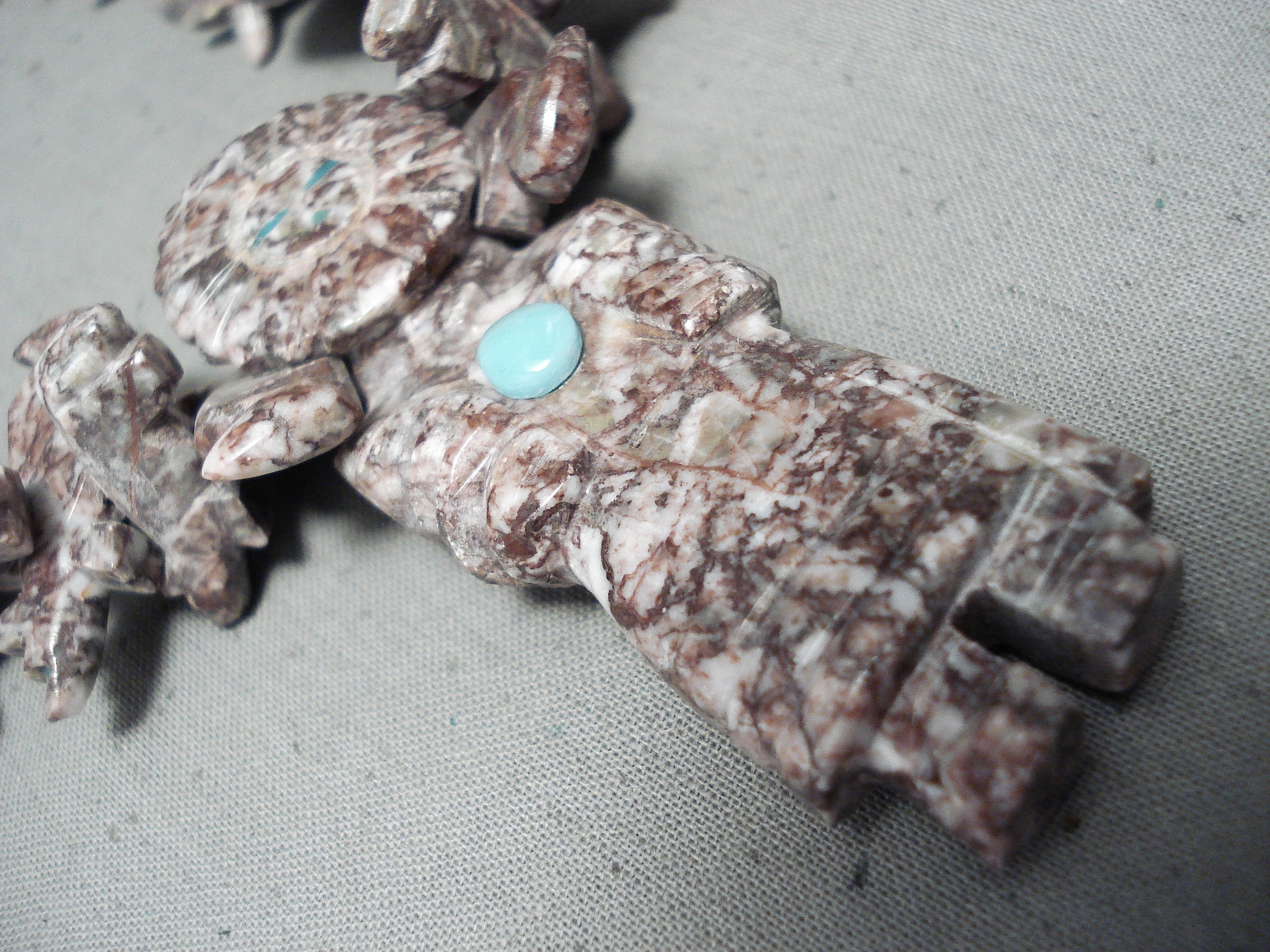 Extraordinary Vintage Native American Navajo Wildhorse Turquoise Fetish Necklace