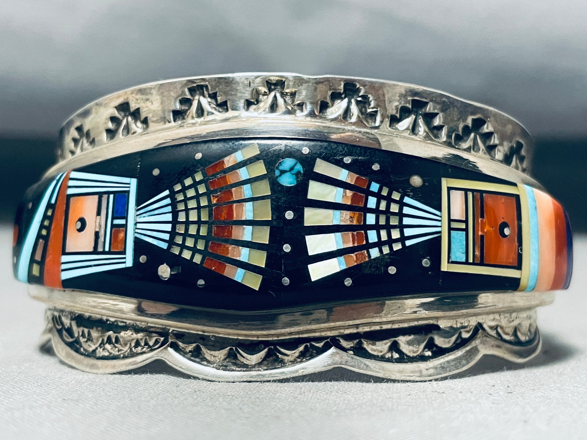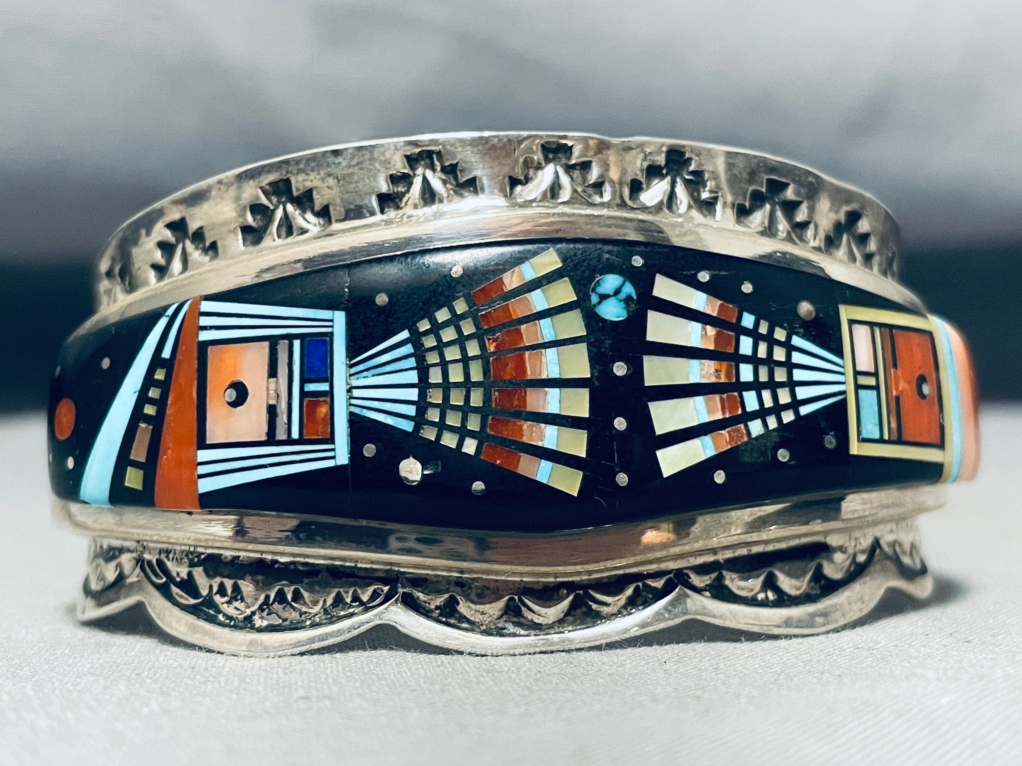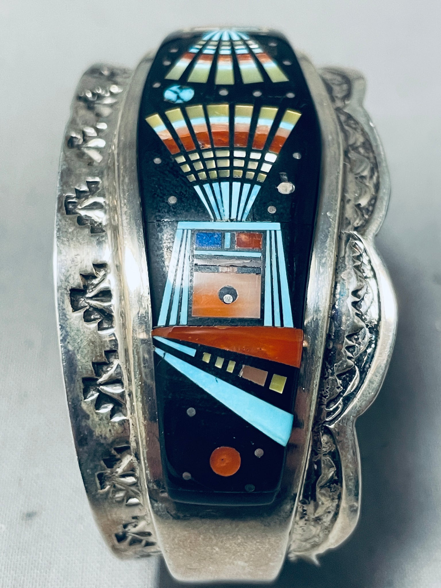 Extreme Detail Space Kachina Vintage Native American Navajo Turquoise Sterling Silver Bracelet