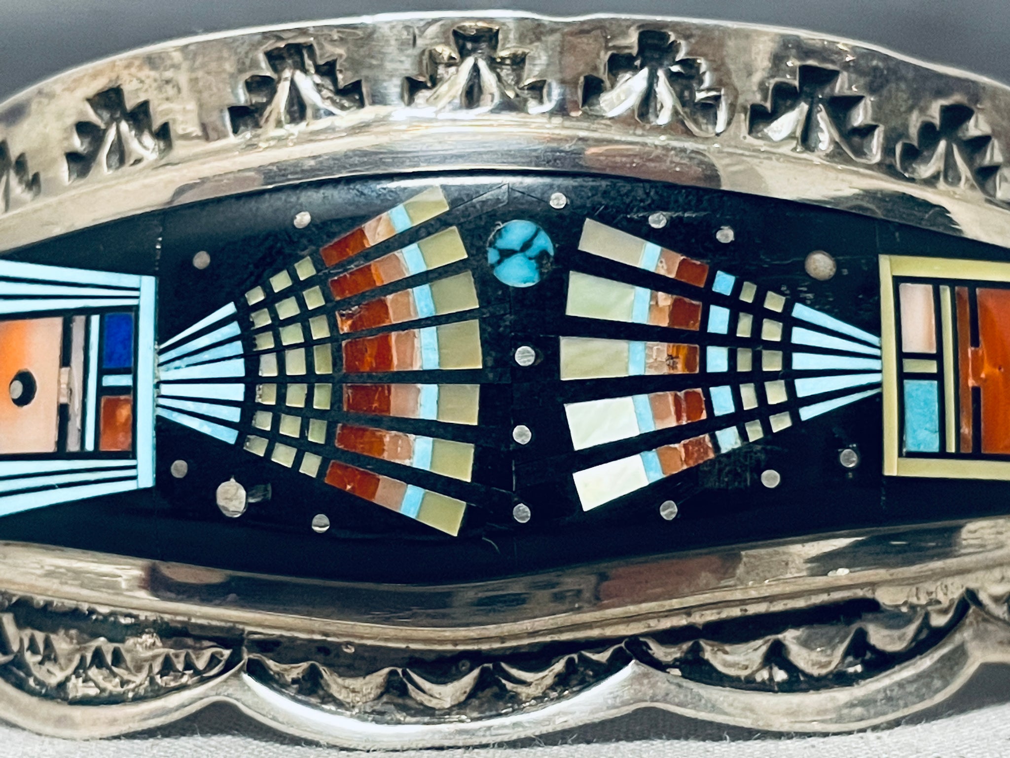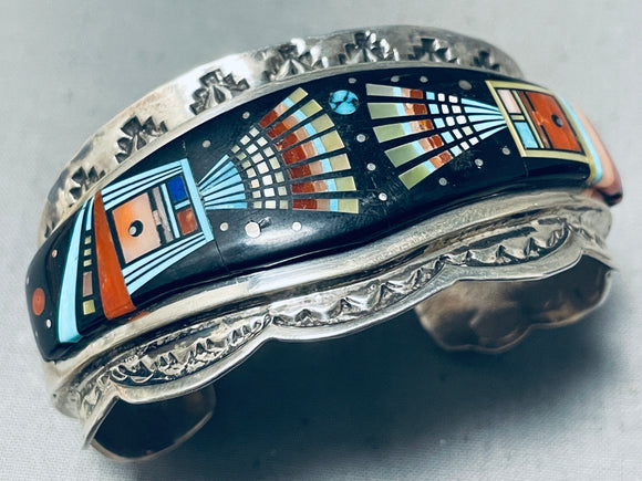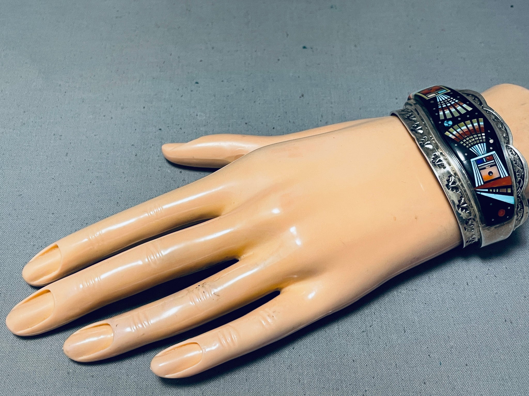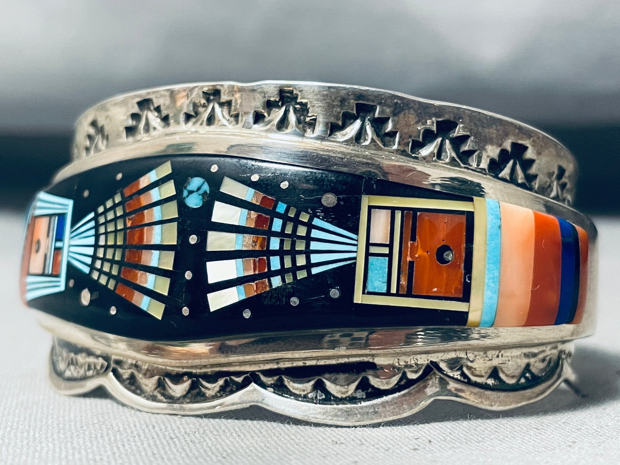 Extreme Detail Space Kachina Vintage Native American Navajo Turquoise Sterling Silver Bracelet