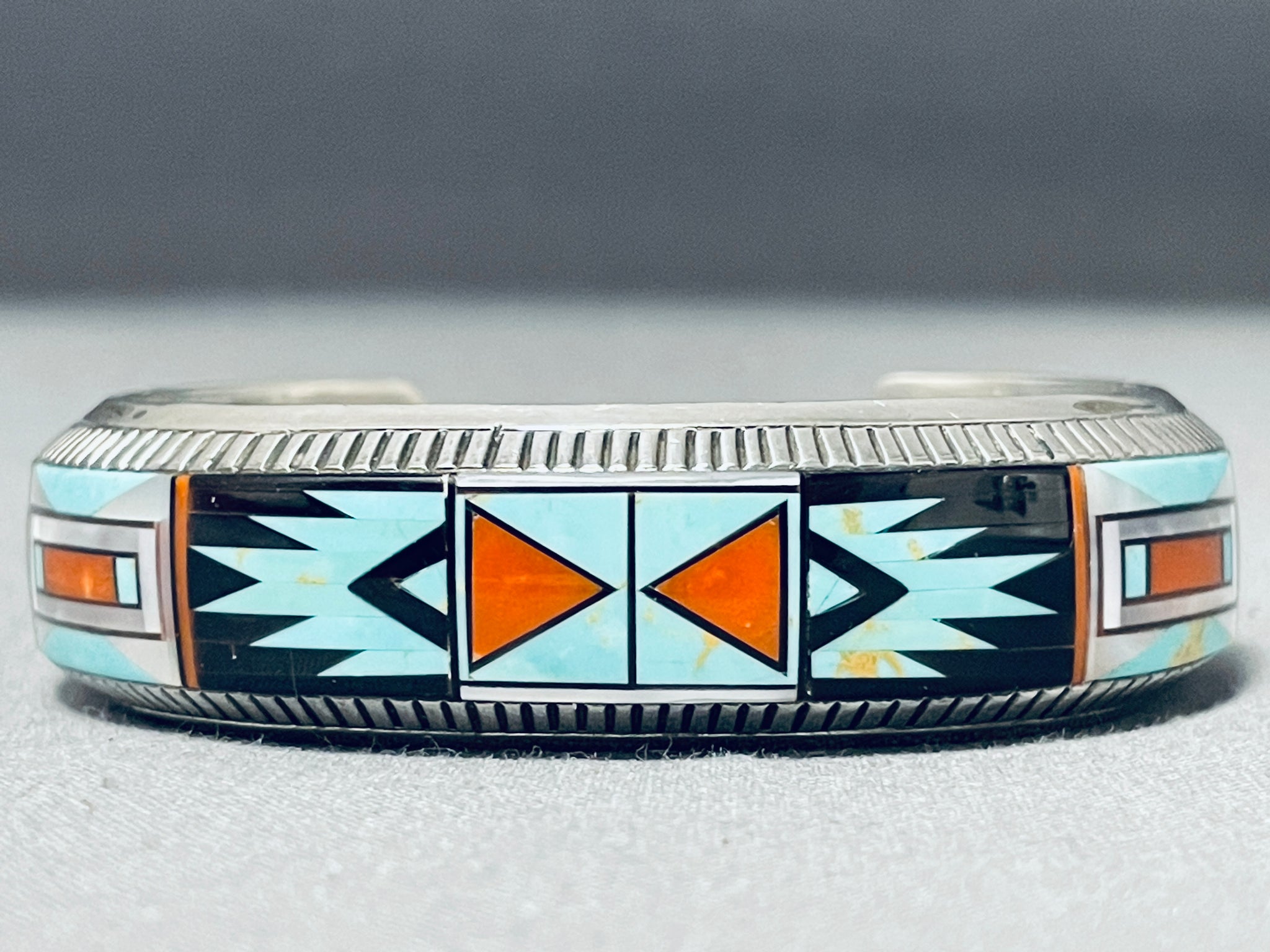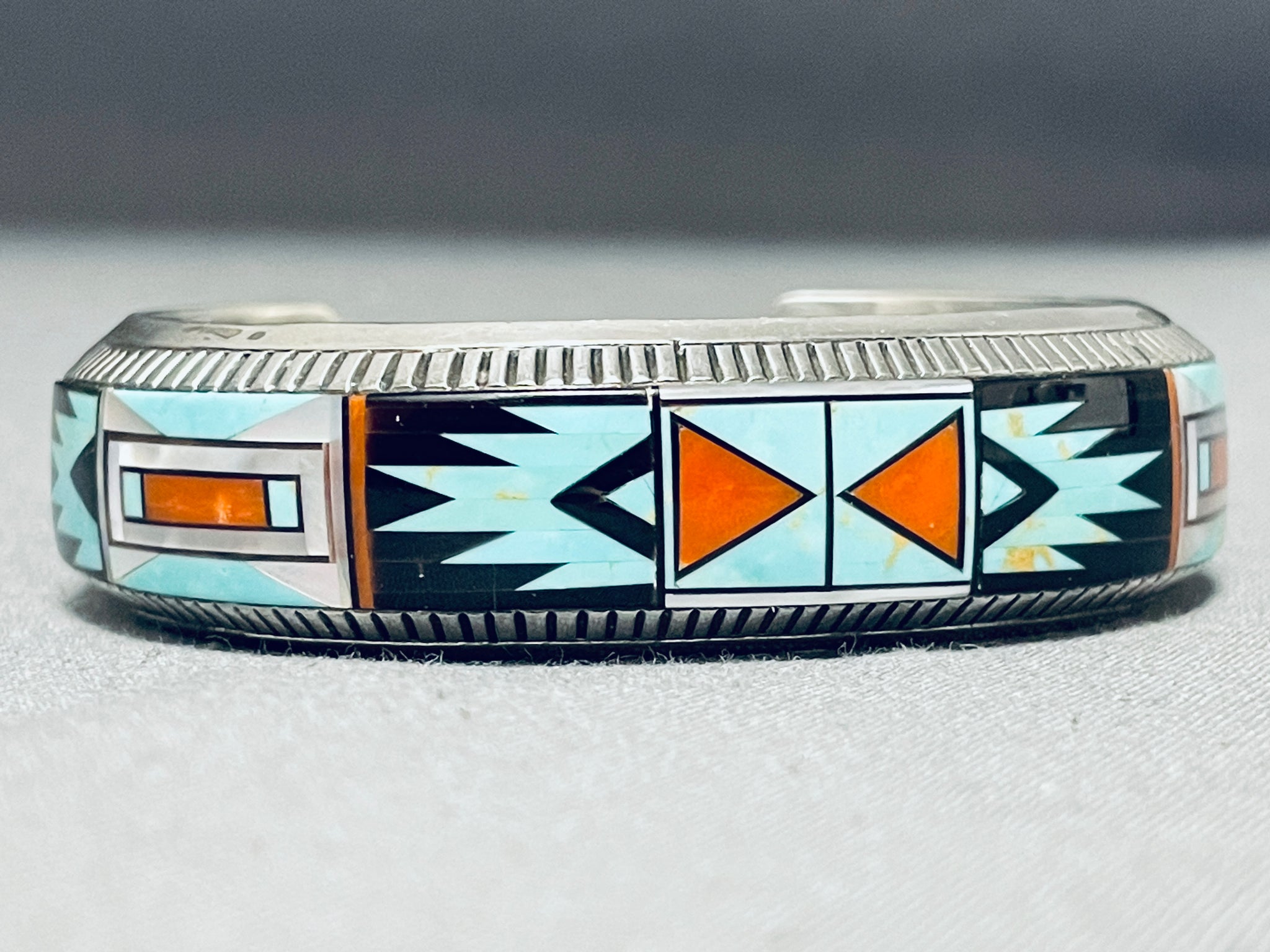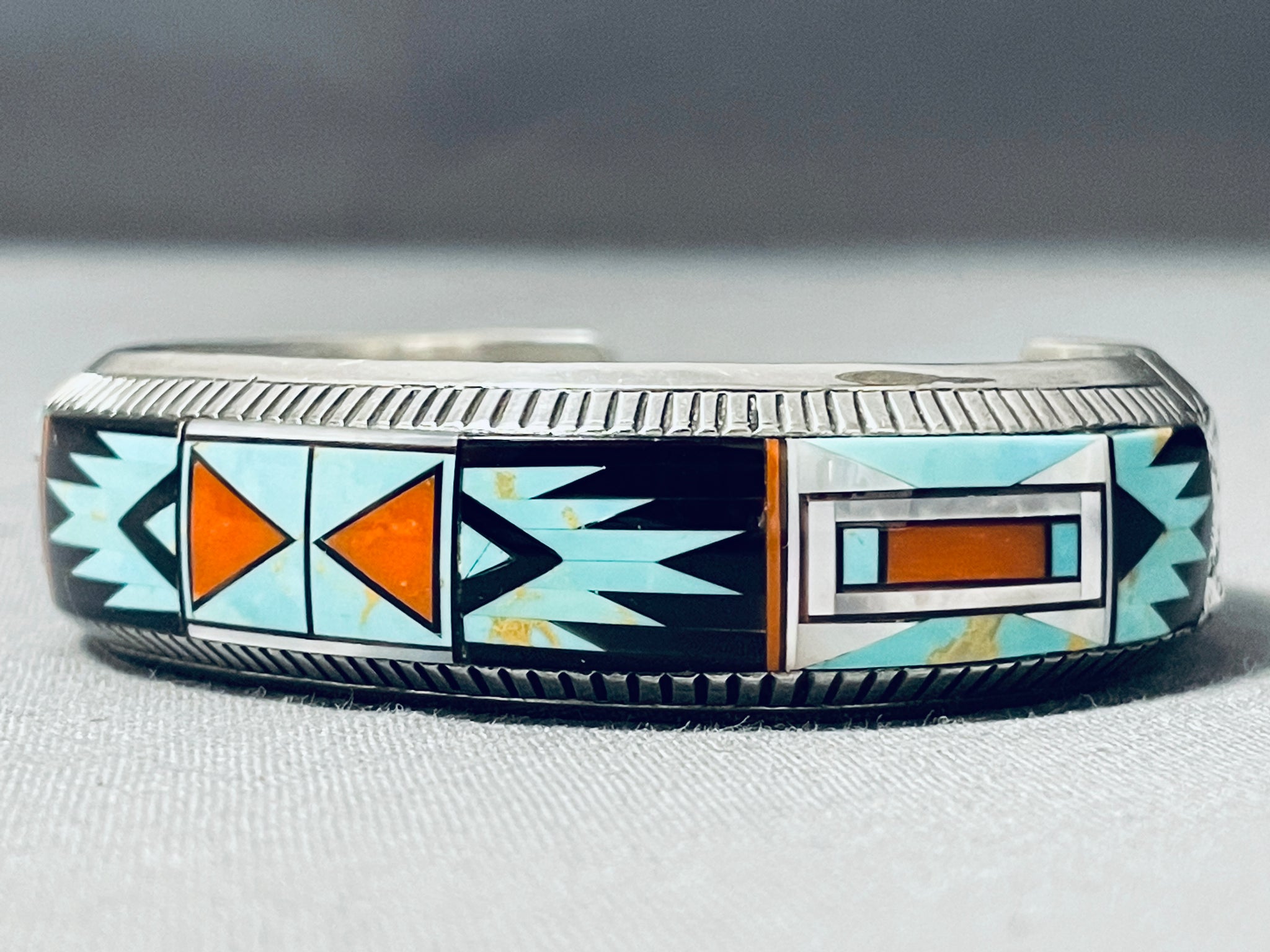 Extreme Intricacy Vintage Native American Navajo Turquoise Sterling Silver Bracelet