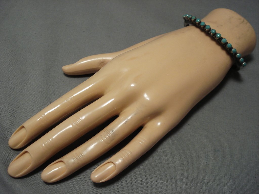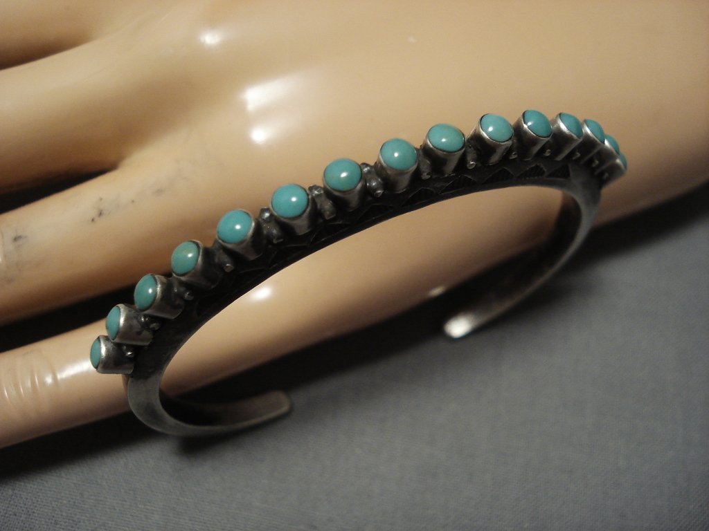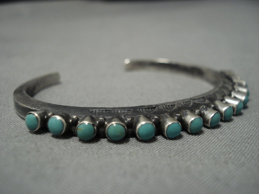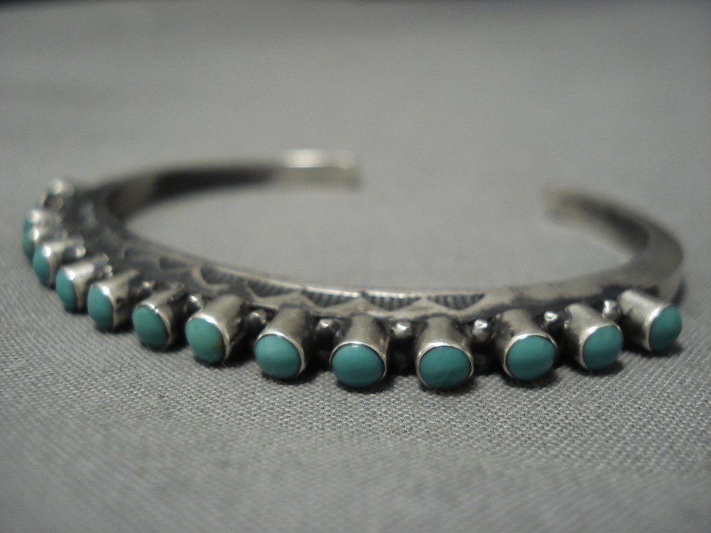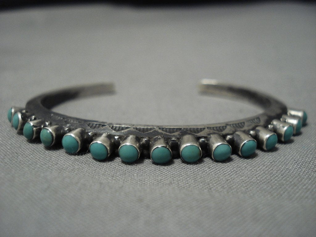 Extreme Protruding Green Turquoise Native American Jewelry Navajo Sterling Silver Bracelet