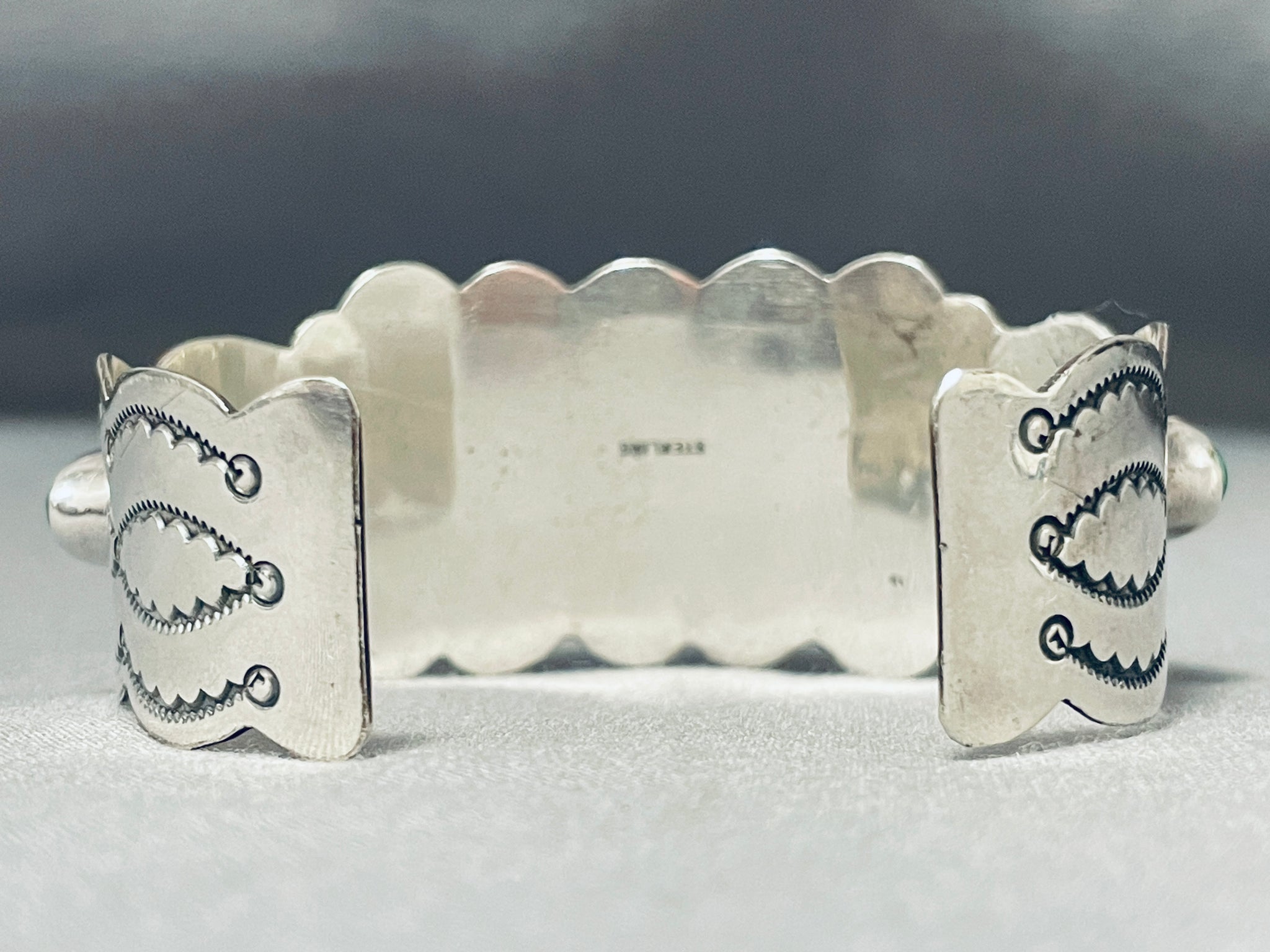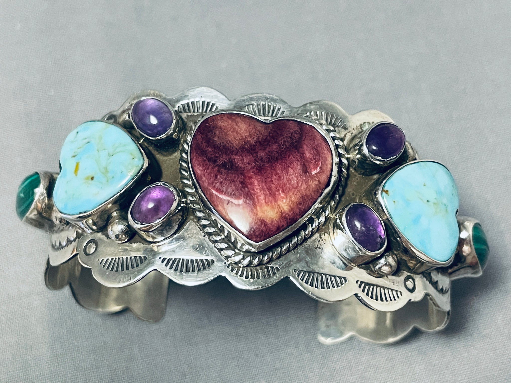 Extremely Unique Heart Vintage Native American Navajo Turquoise Sterling Silver Bracelet