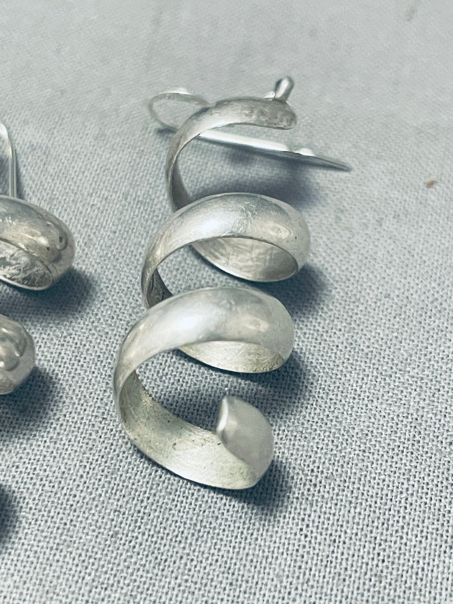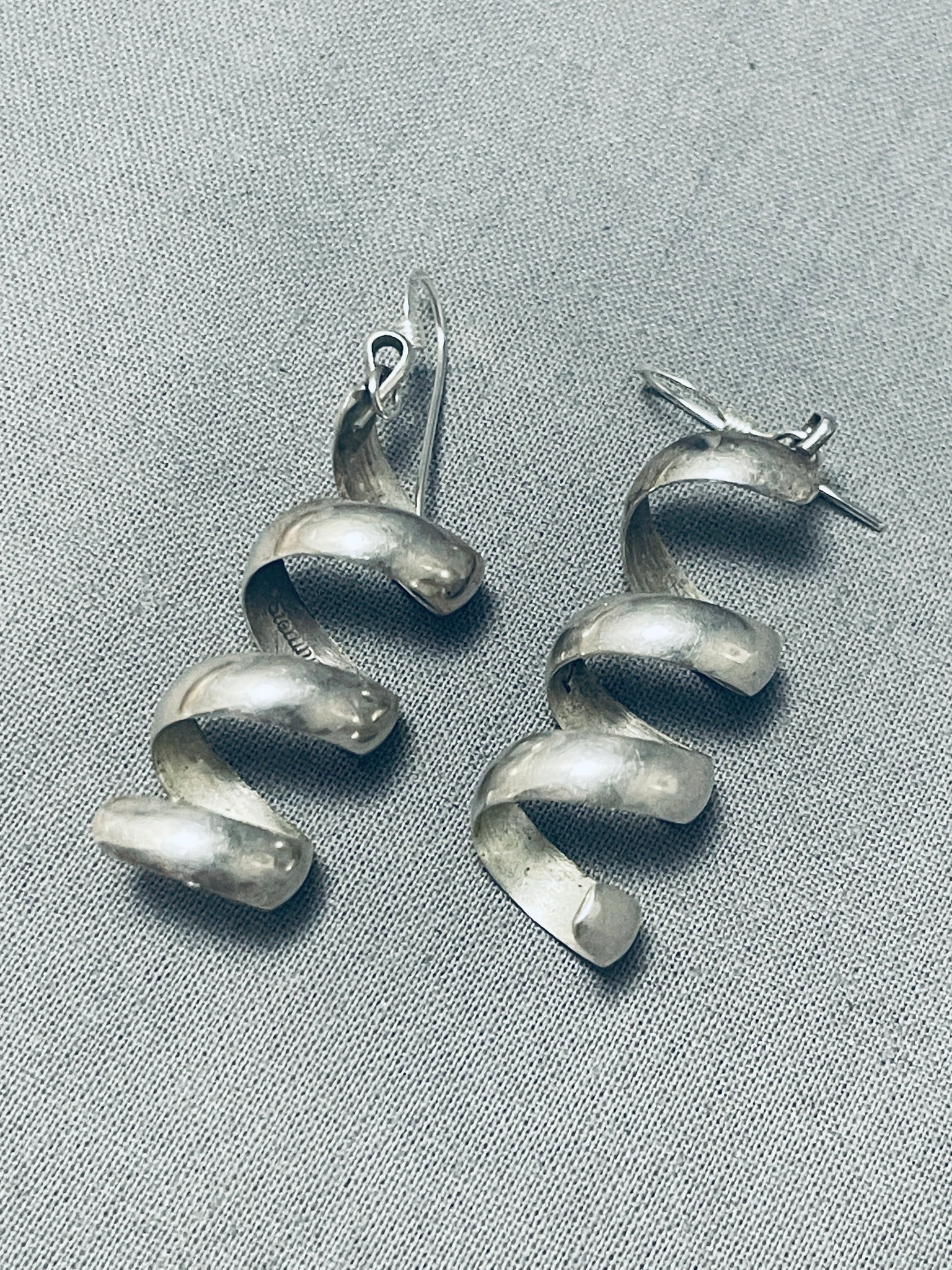 Eye-catching Handmade Spiral Native American Navajo Sterling Silver Corkscrew Earrings
