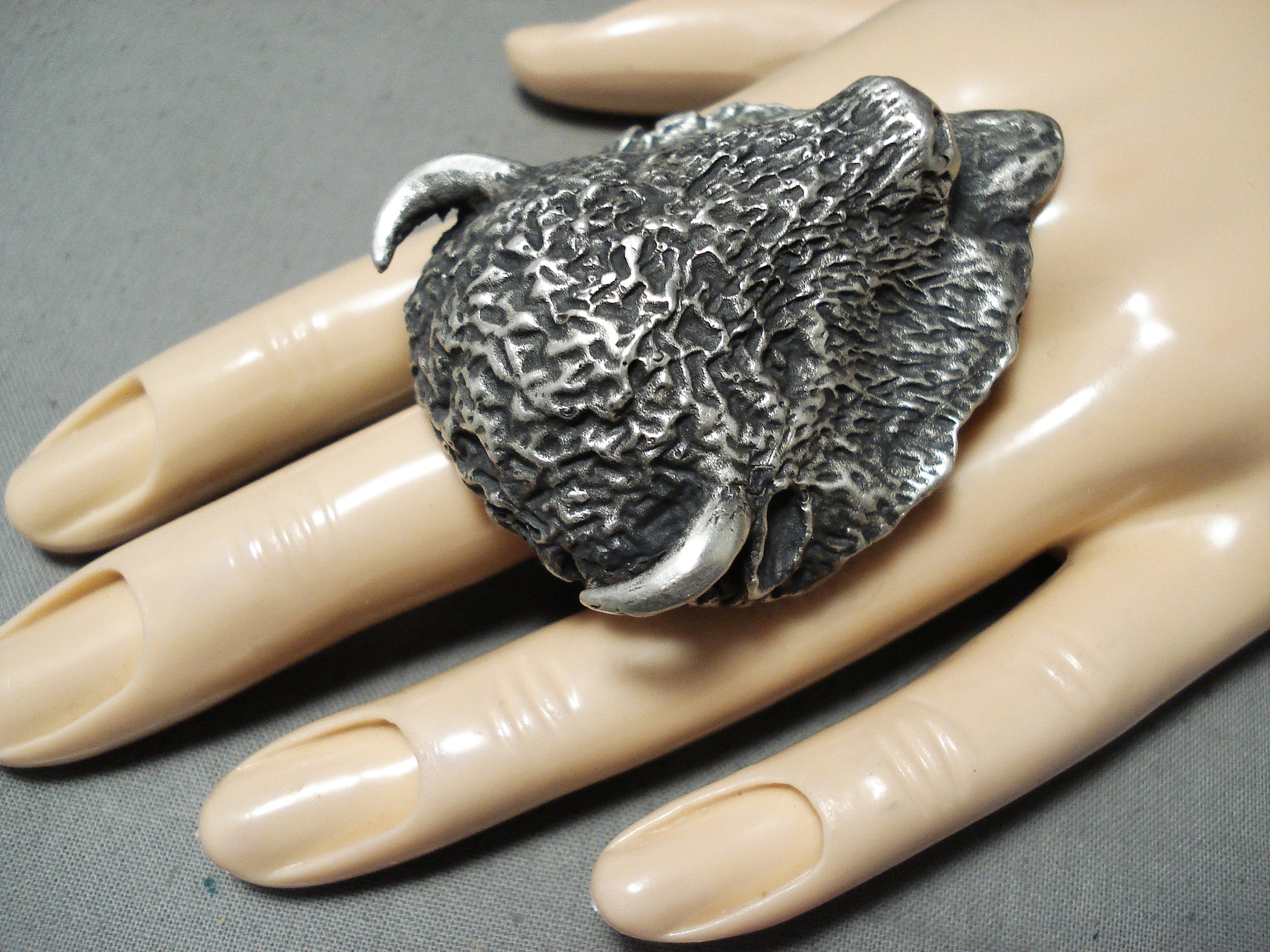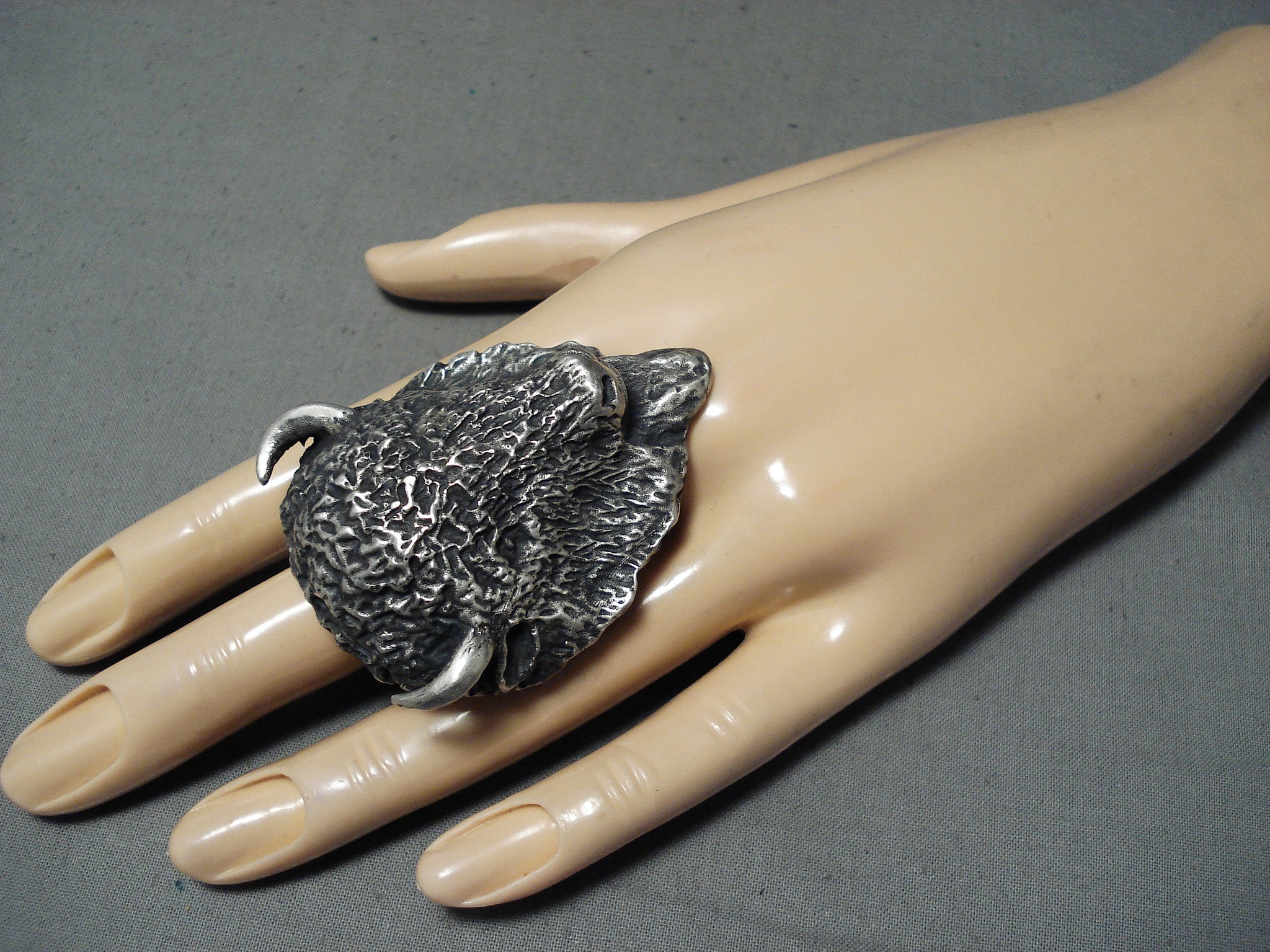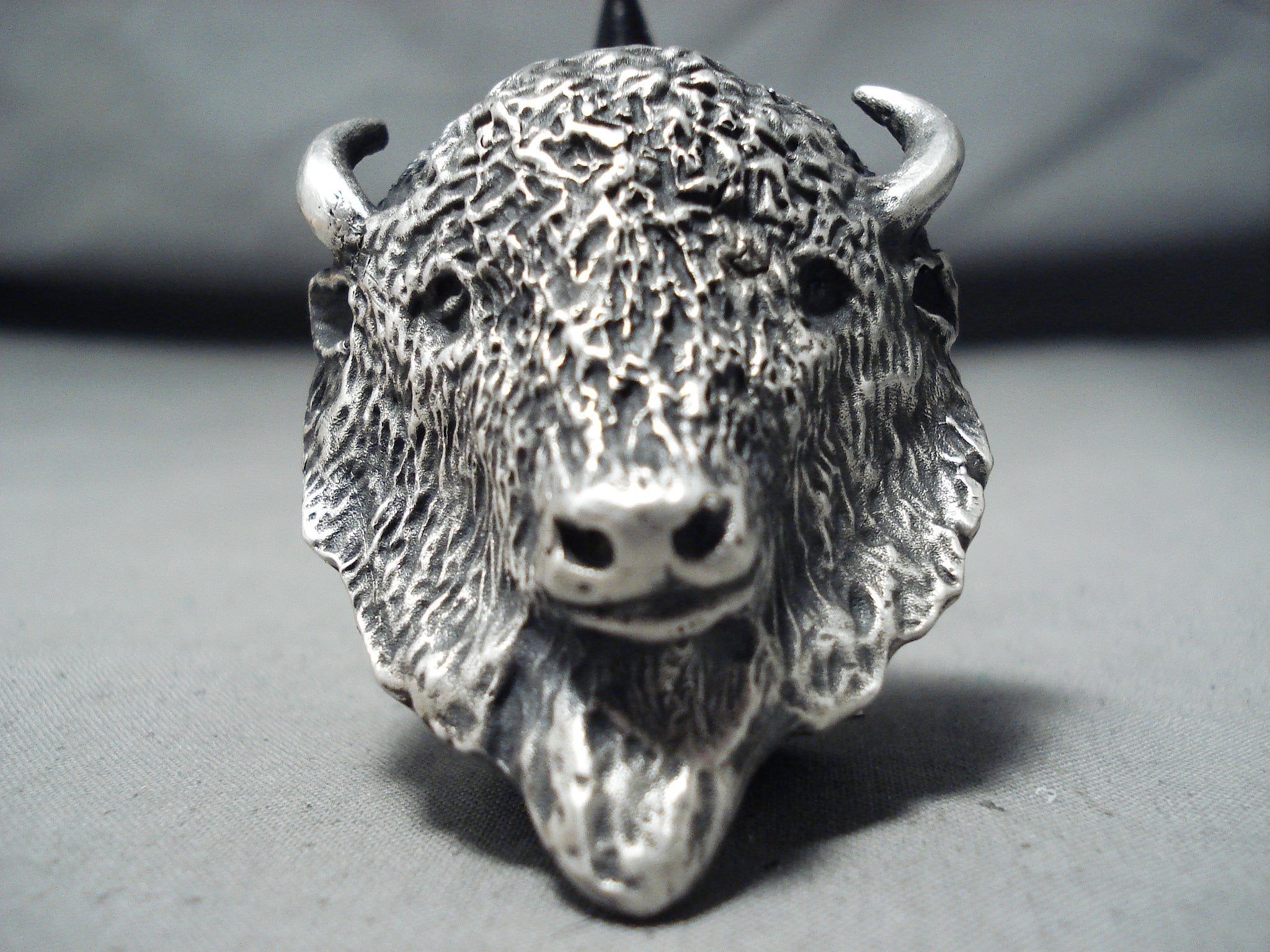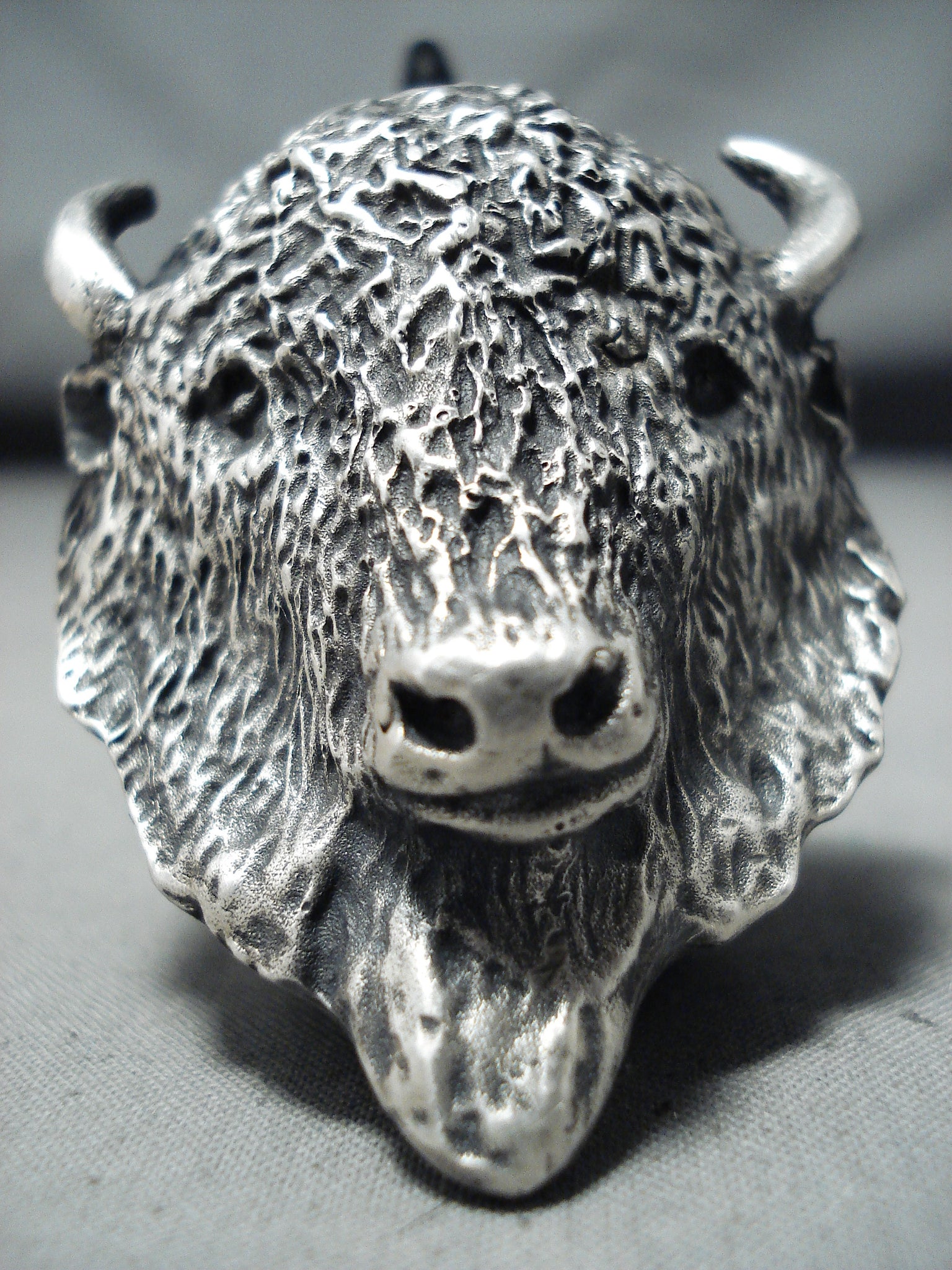Eye-catching Native American Navajo Buffalo Head Head Sterling Silver Ring