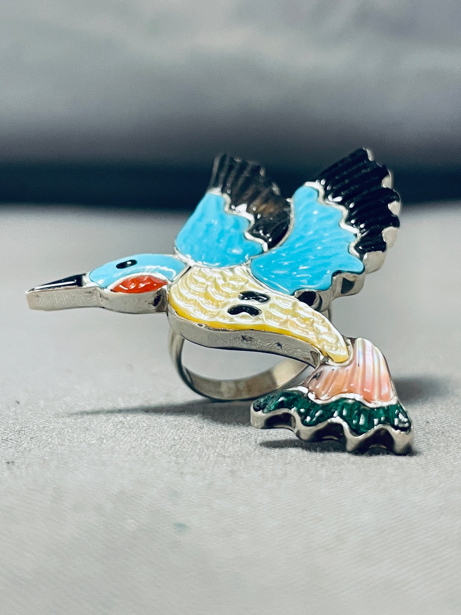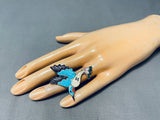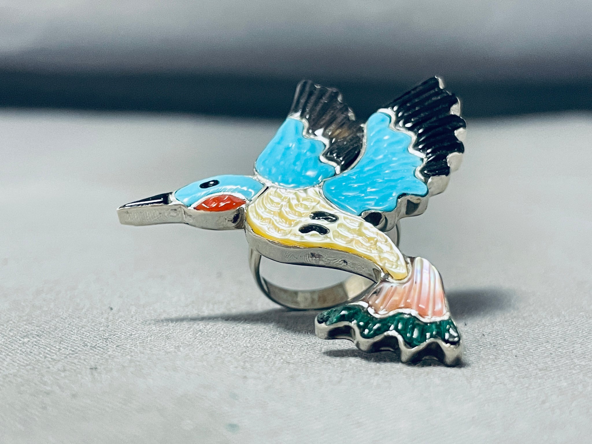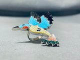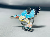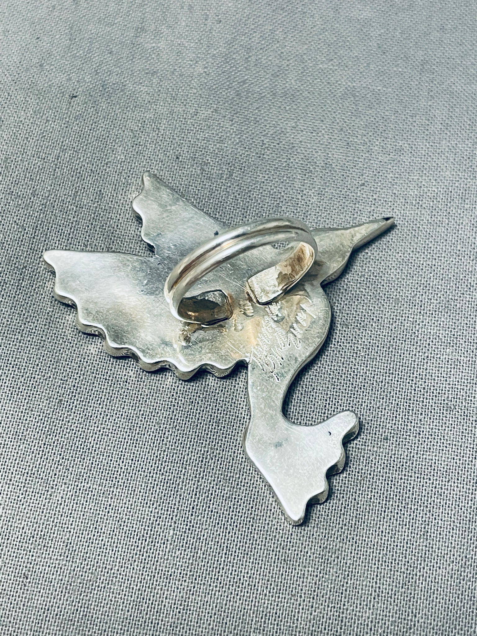 Eye Catching Native American Zuni Turquoise Sterling Silver Hummingbird Ring