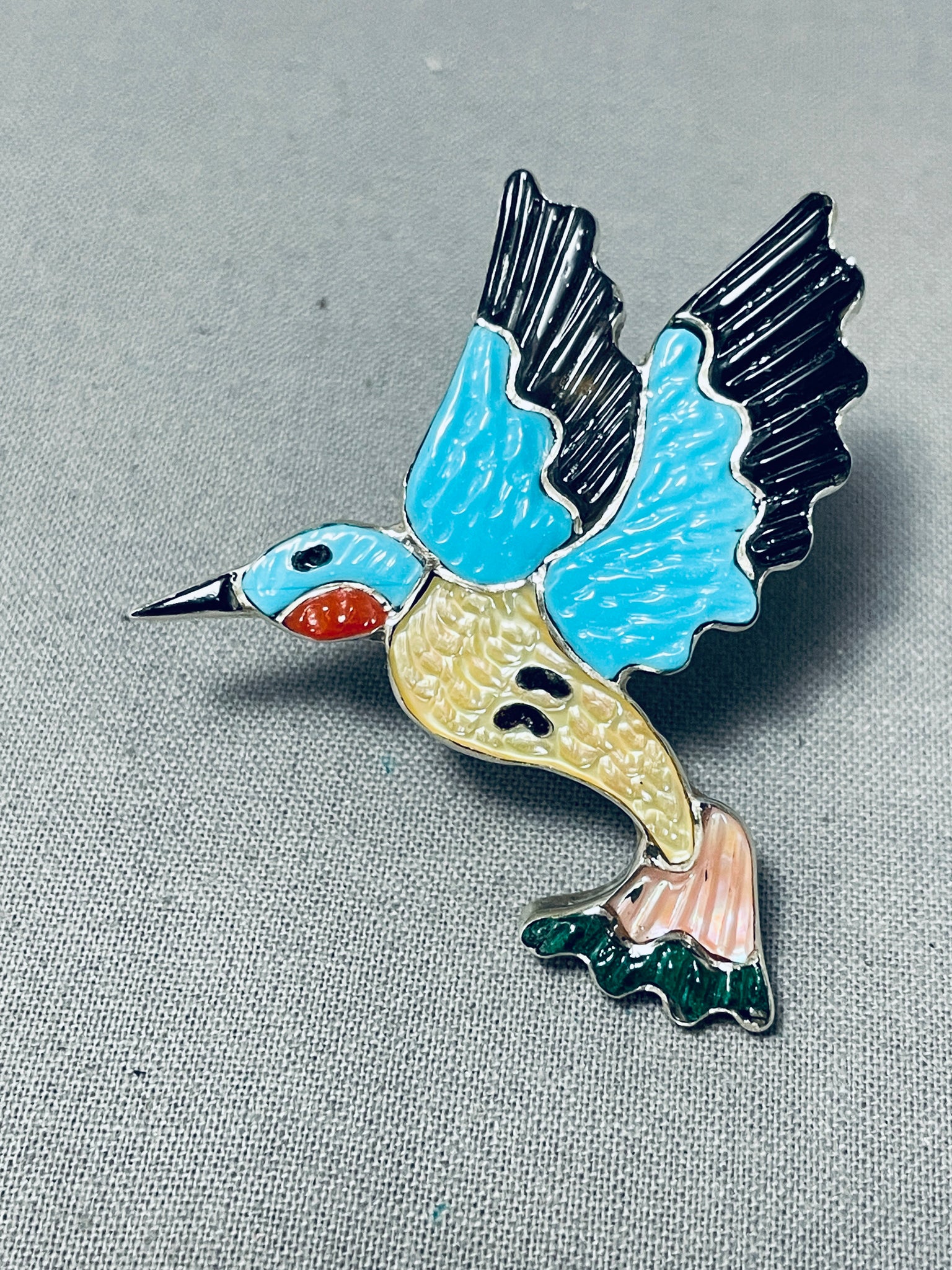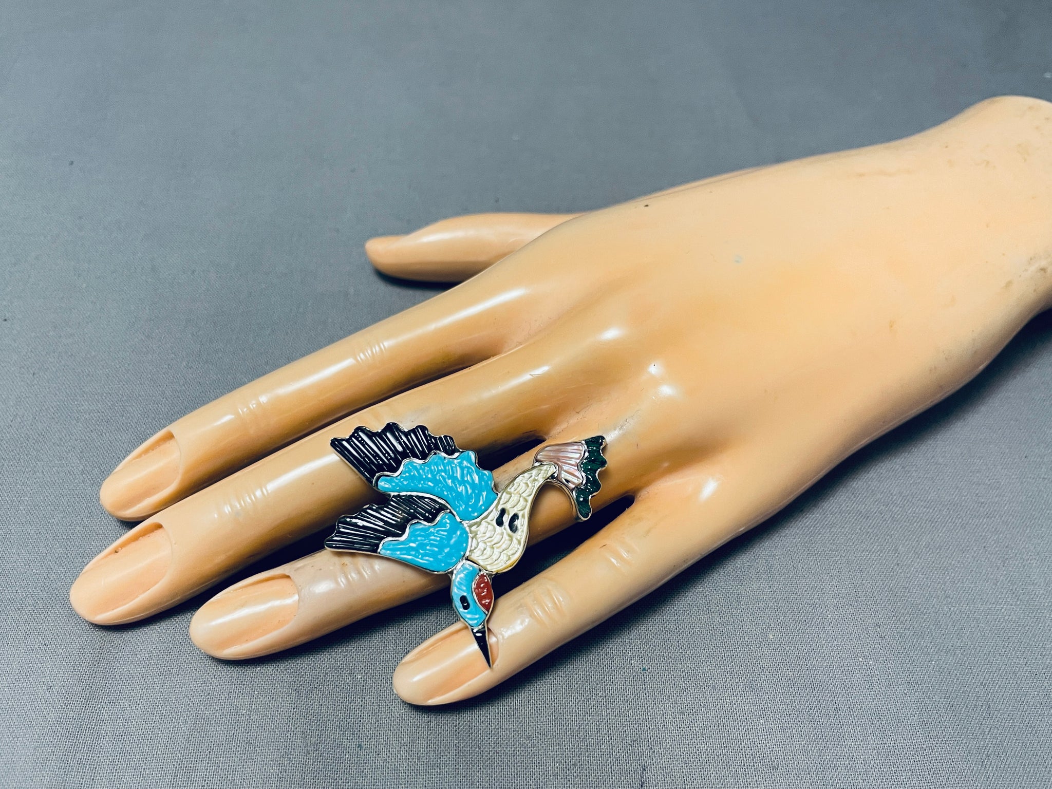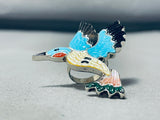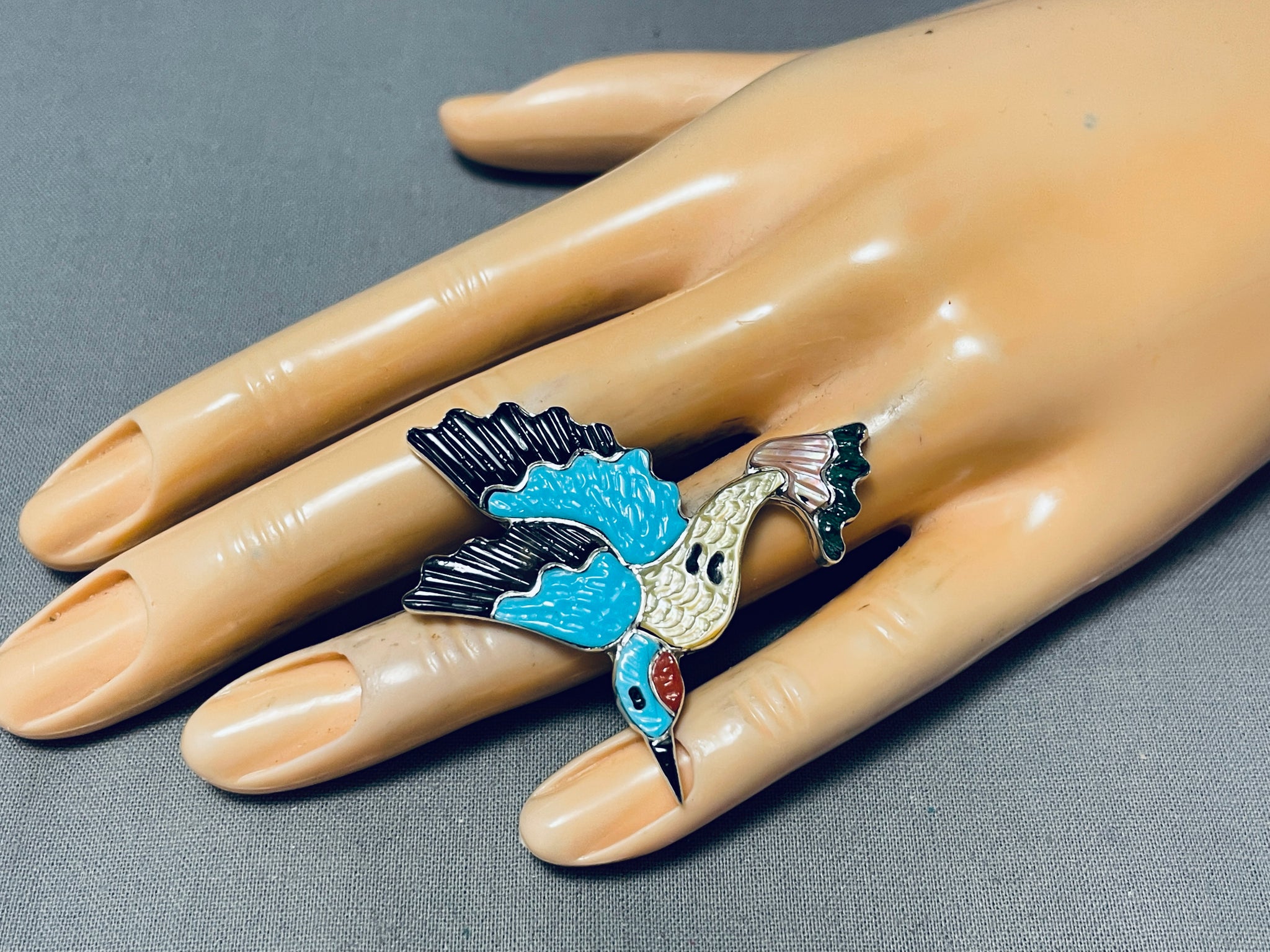 Eye Catching Native American Zuni Turquoise Sterling Silver Hummingbird Ring